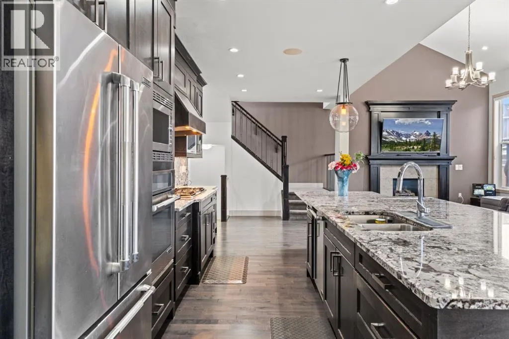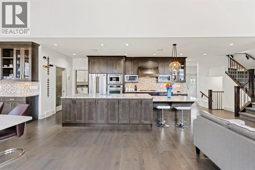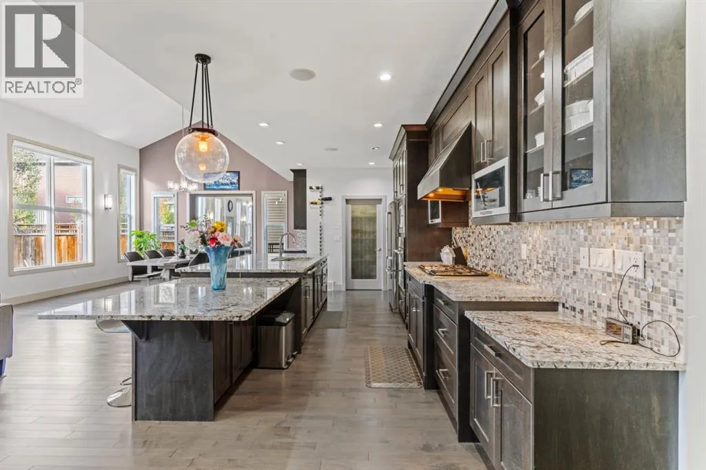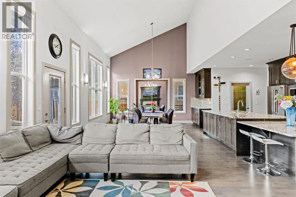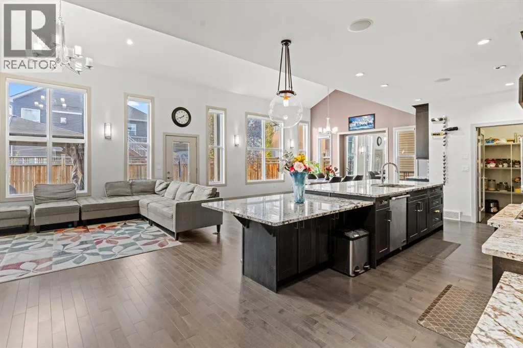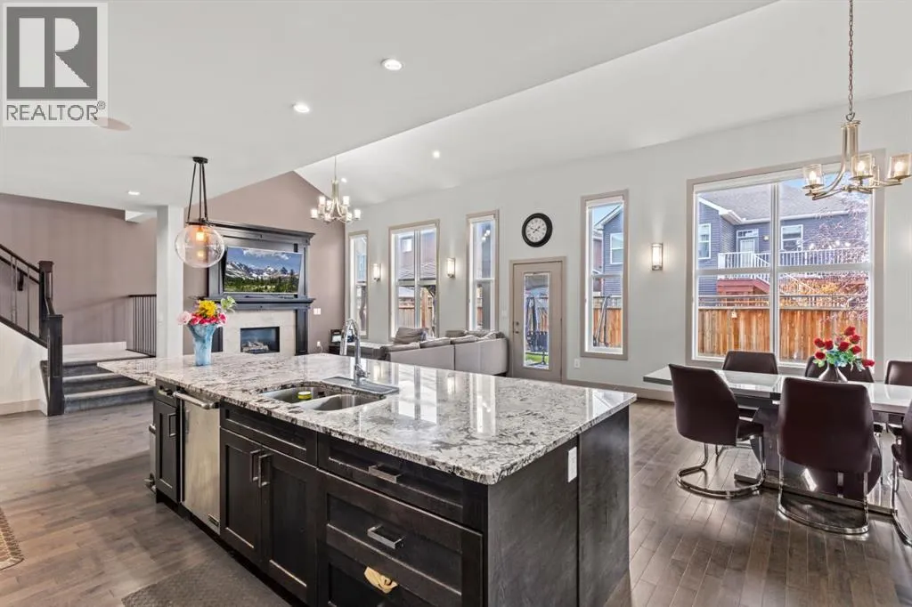 Discover this exceptional two-story residence in the highly sought-after community of Kinniburgh, Chestermere. It showcases 3,960 sq ft of beautifully finished living space designed for modern family living with a touch of sophistication.Step through the grand entrance into an inviting main level featuring vaulted ceilings, a stunning open-to-below living room, and large windows that fill the home with an abundance of natural light. The open-concept layout flows effortlessly, creating an ideal setting for both entertaining and everyday comfort.A versatile main-floor office provides a quiet space to work from home or can easily serve as a sixth bedroom for guests or multi-generational living.Upstairs, youâll find four spacious bedrooms, including a luxurious primary suite complete with a spa-inspired ensuite, soaker tub, dual vanities, and a walk-in closet.The fully developed basement adds another layer of flexibility, offering a fifth bedroom, a full bathroom, and open space ready for your vision â whether thatâs a home theatre, wet bar, gym, or entertainment lounge.Enjoy the outdoors in your large, landscaped backyard, which features a beautiful gazebo. This space is perfect for hosting or relaxing with family.Ideally located close to Chestermere Lake, top-rated schools, shopping, parks, and pathways, this home combines luxury, location, and lifestyle in one remarkable package.Experience elevated living in one of Chestermereâs premier communities. Welcome home to Kinniburgh! (id:27476)