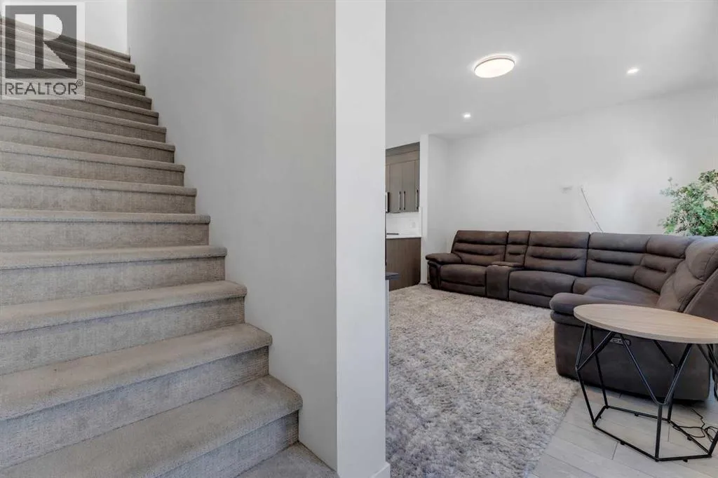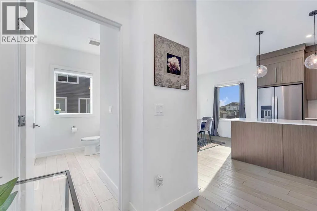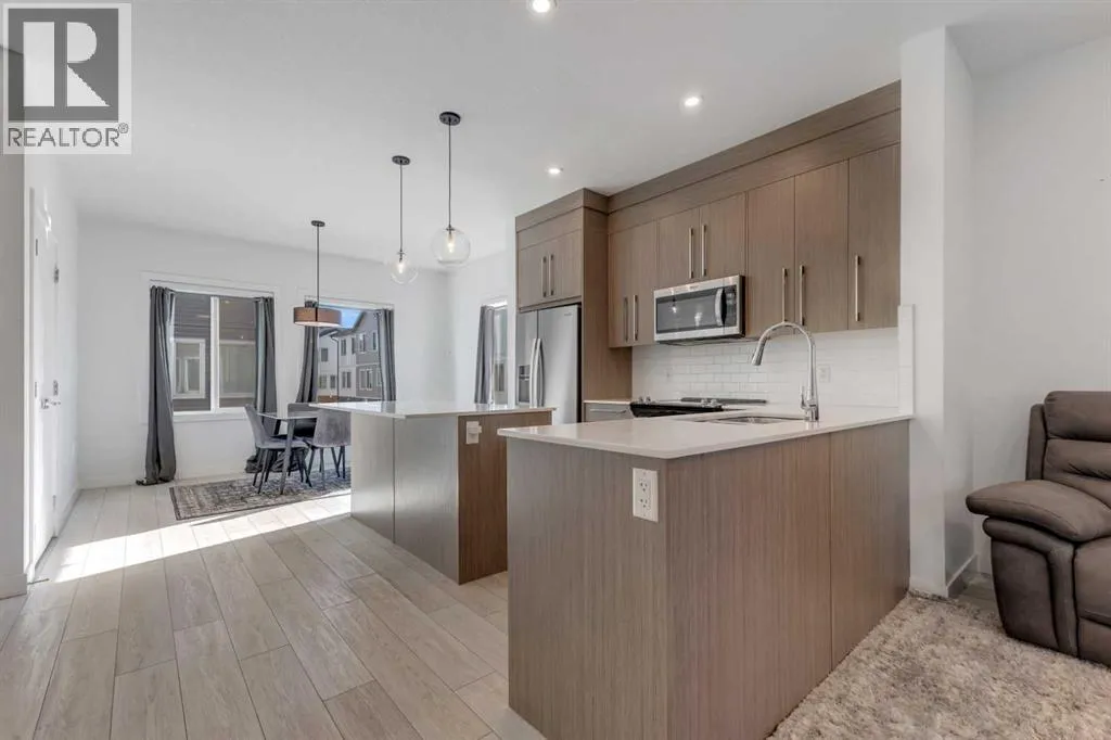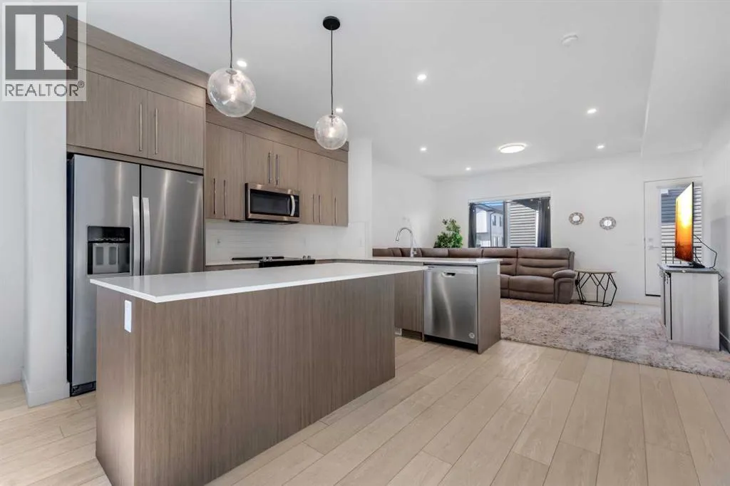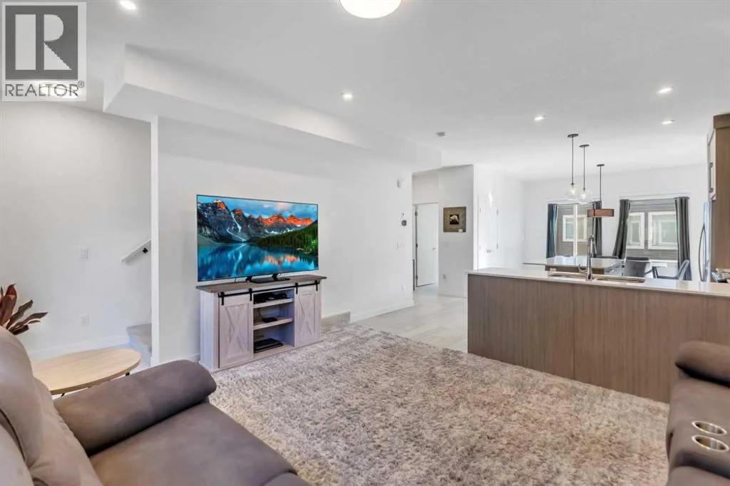 Experience stylish, low-maintenance living in this beautifully designed 4-bedroom, 2.5-bath end-unit townhome with an attached double garage. Perfectly situated just 20 minutes from downtown Calgary and 5 minutes from the new Costco, this home offers the perfect blend of convenience, comfort, and modern design.Main Level â Open Concept EleganceThe bright and spacious main floor features an open-concept layout with large windows, sleek vinyl flooring, and designer lighting. The gourmet kitchen is a chefâs dream, showcasing quartz countertops, a tile backsplash, full-height cabinetry, stainless steel appliances, and a central island with dual sink â ideal for entertaining or family gatherings. The adjoining living and dining areas flow seamlessly onto a large front balcony with a gas line for BBQs, perfect for outdoor relaxation.Upper Level â Comfort & ConvenienceUpstairs, the primary suite features a walk-in closet and a private ensuite. Two additional bedrooms share a modern full bath, while the laundry room with a full-sized Whirlpool washer and dryer adds everyday convenience.Lower Level â Flexible Living SpaceThe entry level includes a versatile fourth bedroom or home office, along with access to the attached double garage, mechanical room, and additional storage.Community & LocationLocated in the award-winning Truman-built Aberdeen Towns, this master-planned community offers future amenities including new schools, parks, and lifestyle features â all along the scenic shores of Chestermere Lake. Enjoy easy access to Walmart, Costco, restaurants, schools, and parks, making it an ideal home for families and professionals alike. Your opportunity to own in one of Chestermereâs most sought-after communities awaits. Contact your Realtor today to book a private showing! (id:27476)