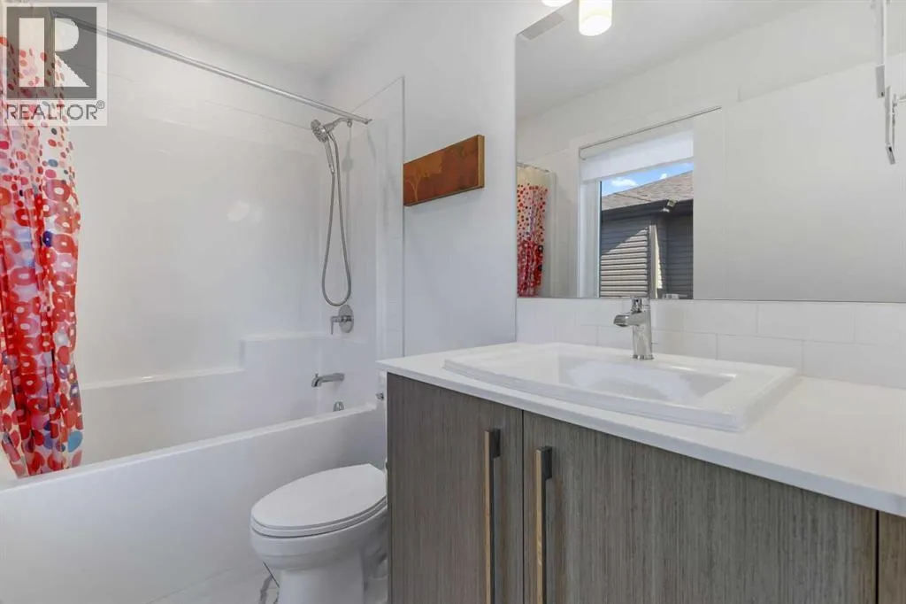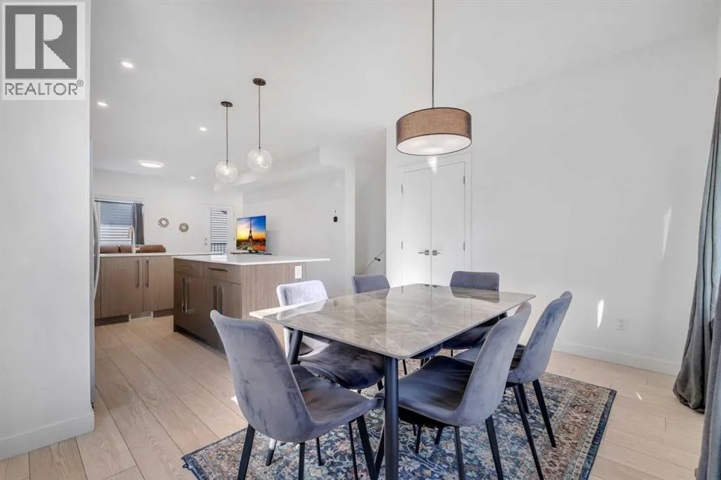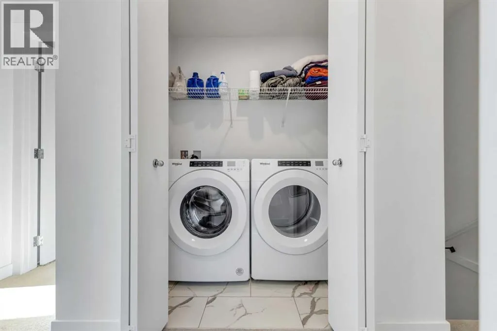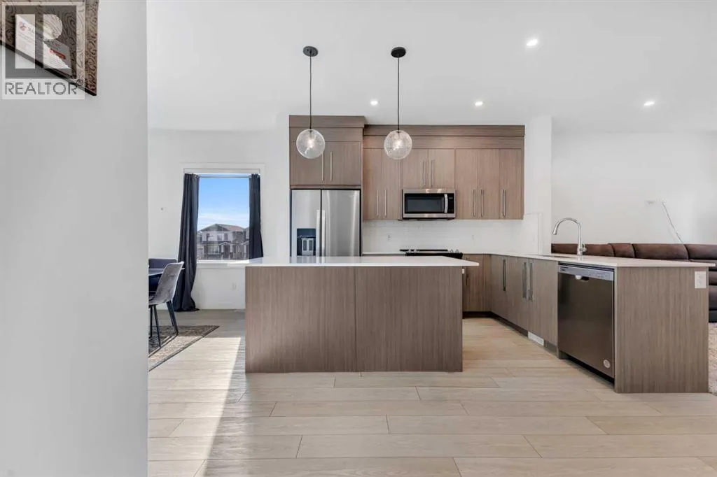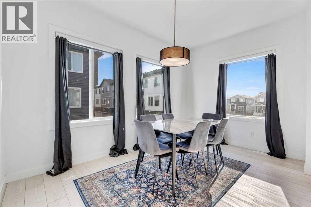 Experience stylish, low-maintenance living in this beautifully designed 4-bedroom, 2.5-bath end-unit townhome with an attached double garage. Perfectly situated just 20 minutes from downtown Calgary and 5 minutes from the new Costco, this home offers the perfect blend of convenience, comfort, and modern design.Main Level â Open Concept EleganceThe bright and spacious main floor features an open-concept layout with large windows, sleek vinyl flooring, and designer lighting. The gourmet kitchen is a chefâs dream, showcasing quartz countertops, a tile backsplash, full-height cabinetry, stainless steel appliances, and a central island with dual sink â ideal for entertaining or family gatherings. The adjoining living and dining areas flow seamlessly onto a large front balcony with a gas line for BBQs, perfect for outdoor relaxation.Upper Level â Comfort & ConvenienceUpstairs, the primary suite features a walk-in closet and a private ensuite. Two additional bedrooms share a modern full bath, while the laundry room with a full-sized Whirlpool washer and dryer adds everyday convenience.Lower Level â Flexible Living SpaceThe entry level includes a versatile fourth bedroom or home office, along with access to the attached double garage, mechanical room, and additional storage.Community & LocationLocated in the award-winning Truman-built Aberdeen Towns, this master-planned community offers future amenities including new schools, parks, and lifestyle features â all along the scenic shores of Chestermere Lake. Enjoy easy access to Walmart, Costco, restaurants, schools, and parks, making it an ideal home for families and professionals alike. Your opportunity to own in one of Chestermereâs most sought-after communities awaits. Contact your Realtor today to book a private showing! (id:27476)