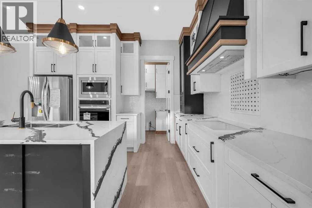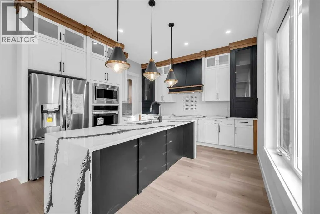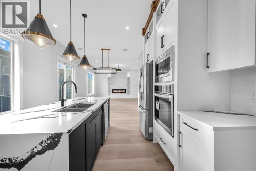 LUXURY LIVING AT ITS FINEST ! Welcome to 327 Kinniburgh Place, in the highly sought-after Lake community of Chestermere. This Executive quality home boasts 3 fully finished levels complete with upgrades throughout.! Large open concept. OPEN TO BELOW living room on the main floor. 10 â ceiling all over Main floor and 8â doors. Main floor boasts a FULL BATH and BEDROOM for ELDERLY PARENTS. It also includes an impressive Chef Kitchen, featuring quartz's countertops, impressive upgraded light fixtures, a large double fridge, gas range, double wall ovens, full-height modern white cabinets, and an impressive spice kitchen with pantry. Open to the kitchen is a large dining area and modern living area complete with a feature wall of built-ins, surrounding a beautiful gas fireplace. Completing this main floor is a gorgeous SECOND LIVING ROOM space off the main entrance, a large mudroom off the garage, and a gorgeous 3 piece bathroom! Enjoy the abundance of natural light with large windows throughout the home . Head upstairs WITH BEAUTIFUL GLASS RAILING, where you will find a large sun-drenched bonus room. Your large master bedroom features a spa-like en suite and a large walk-in closet! Apart from the master, you will find a second master with 4 pc ensuite and 2 walk-in closets, 2 other bedrooms, 1 full bathroom, and a well-placed laundry room. Escape to the fully finished WALK-OUT basement, This gorgeous space comes complete with a BAR FEATURE , HUGE LIVING ,DINNING AREA another beautiful 4 piece bathroom, and 2 additional bedrooms! Extend your summers in the fabulous backyard . Total 7 bedrooms and 5 full bathrooms. Chestermere is a vibrant family community with a multitude of parks, pathways, playgrounds, and of course beautiful Chestermere Lake, providing access to beaches, water sports, and boating in the summer months or skating in the winter months! Don't miss out on this amazing opportunity. THERE WAS NO DETAIL MISSED WHEN THIS HOUSE WAS BUILT ,COME CHECK OUT THIS B EAUTIFUL PROPERTY TO CALL YOUR NEXT HOME. (id:27476)