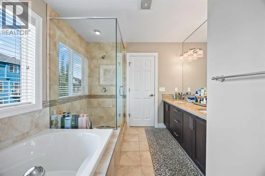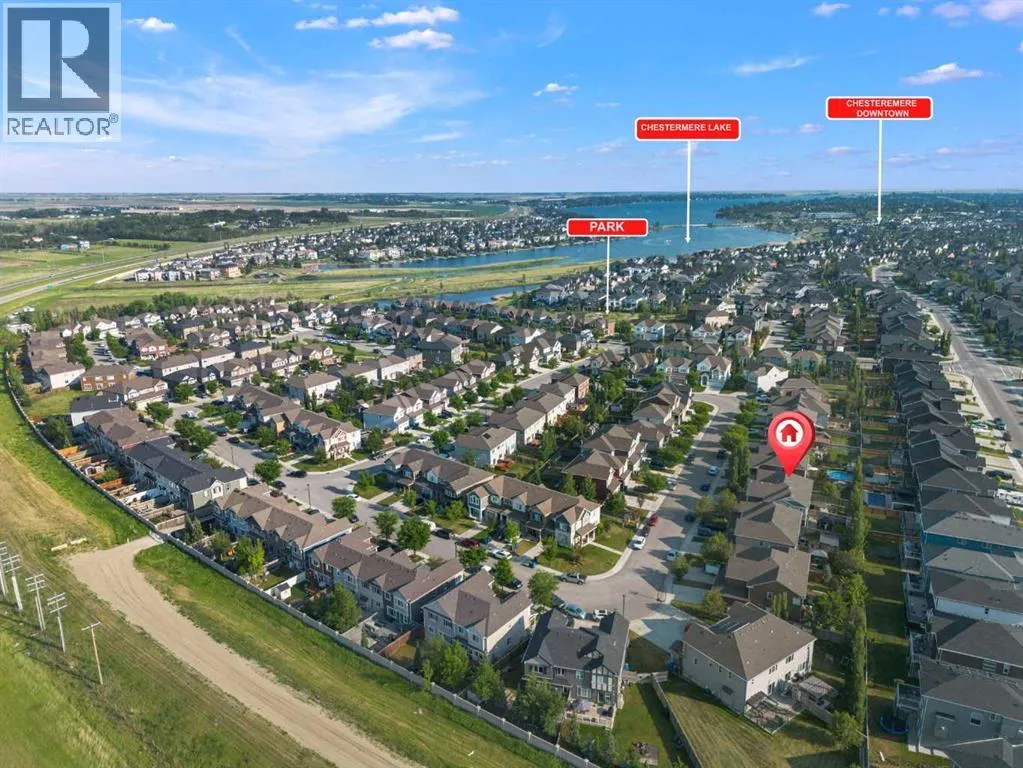 Discover this exceptional east-facing former show-home in the sought-after Lake community of Chestermere! Owned by the original owners, this pristine and clean residence features wide frontage, a grand double-door entrance, and a spacious foyer and hallway leading to a beautifully decorated living room. The main floor shines with elegant wallpapers, a modern kitchen, a spacious dining area, a generous pantry, and a convenient mud room, all complemented by a stunning gazebo in the fully fenced, nicely landscaped West backyard. Upstairs, enjoy a luxurious master bedroom with a 5-piece bath oasis, a family room, two additional decent-sized bedrooms, and a primary bathroom. The fully finished basement offers a cozy rec room, wet bar, 3 Piece bathroom and an extra bedroom. Perfectly located within walking distance to the lake, this home is equipped with air conditioning to assist with hot summers and is a must-see! Enjoy nearby amenities including local grocery shopping, local restaurants, a gymnasium, and a 15-minute drive to East Hill shopping complex. (id:27476)