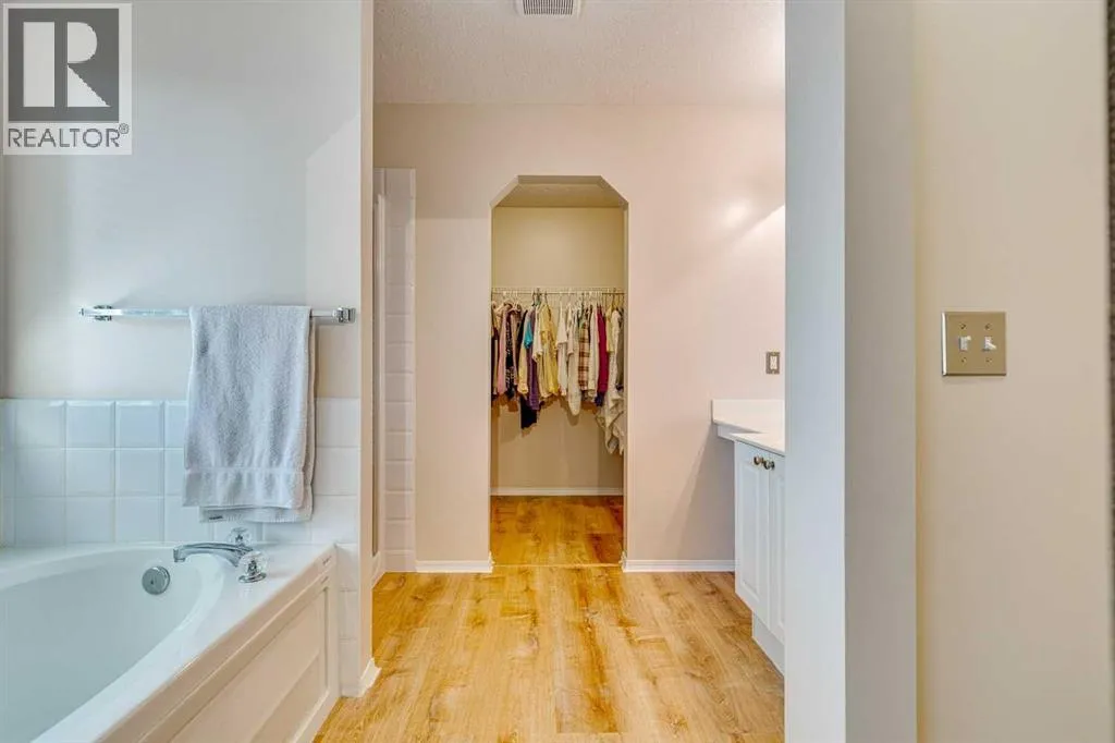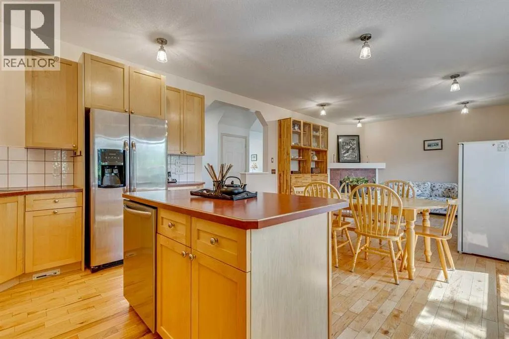 Come see this Large, spacious 2214 sq ft home with 2 living spaces on the main floor and 4 bedrooms on the 2nd level (& FULL basement). Years of care have established a private garden in this backyard not seen in other listings, with brickwork, greenhouse, gazebo, mature foliage & vegetation including, apple and pear trees, a Romeo Cherry bush, honey berries & raspberry bushes. Also, underground sprinklers with customizable irrigation panel, in-ground landscape lighting and driveway led lighting! All foliage is pet friendly too!For 18 years this family has lived & loved this home, it offers a charming country feeling in a humble way & they have been meticulous in care & upkeep such as updated LED lighting, new main floor 2 pc powder room, new A/C & heat pump, brand new washing machine. Hot water tank, humidifier & furnace are newer. Hardwood floors were re-done last year, there is no Poly-B to worry about here. Great mudroom/ garage entrance with tons of storage , entry way offers vaulted ceilings allow natural light, large living room, and separate kitchen with great room area with access to outside. Stove & dishwasher were new last year!Wiring for hot tub included, exterior gas hook up for BBQ or Fire pit. Garage offers a 2nd electrical panel with 220v.Upstairs presents the primary suite, large enough to create a sitting area in, with double doors, full ensuite, private water closet and walk in closet. Lots of storage from top to bottom, 3 additional bedrooms are on this 2nd level.Full finished basement offers built in desks from home schooling days, surprise childâs play area under stairs, laundry room with sink & open rec room has built in shelves and cupboards with smart European hinges. Another bedroom and 3pce bath make this spacious family home convenient for growing children or extended family visits. If you are looking for a home in Chestermere, this is a gem, tucked away on an inner quiet street, inviting walking paths, yet close to schools and all am enities. (id:27476)