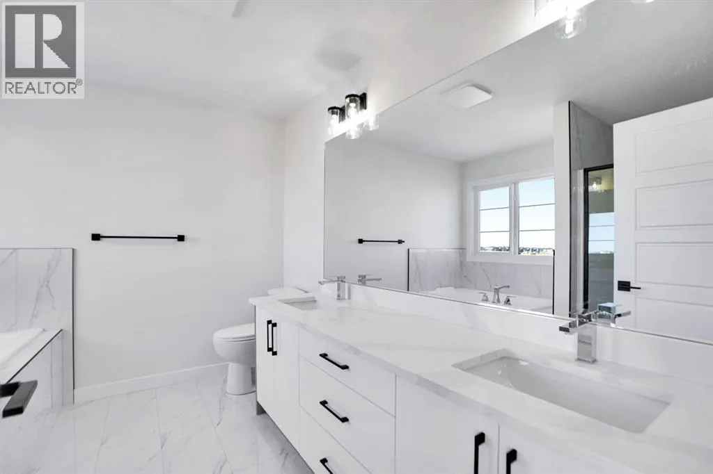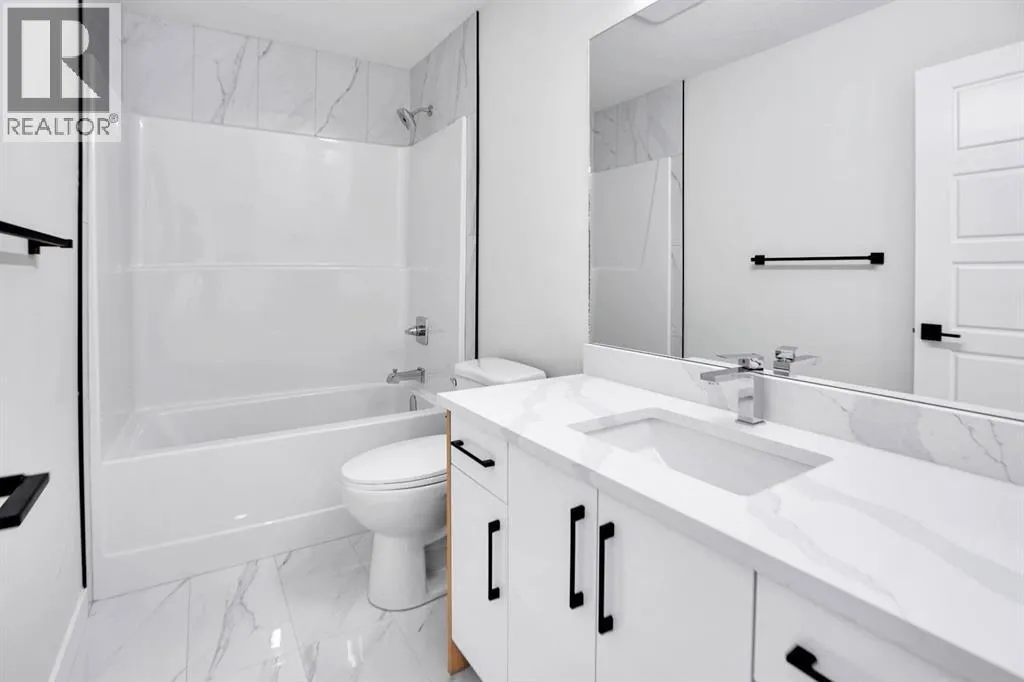 Welcome to Waterford Estates, one of Chestermereâs most desirable new communities. Built by Paramount Homes, this brand new duplex showcases modern design, elegant finishes, and a functional layout perfect for families. The open concept main floor features a bright living area with a contemporary fireplace, a stunning kitchen with quartz countertops and walk-in pantry, and a full bathroom with a versatile main floor office. Upstairs offers a spacious bonus room, convenient laundry, and three comfortable bedrooms including a luxurious primary suite with a spa-inspired ensuite and walk-in closet. The undeveloped basement with a separate side entry provides incredible potential for future development. Complete with a double attached garage and located close to parks, schools, shopping, and beautiful Chestermere Lake. (id:27476)