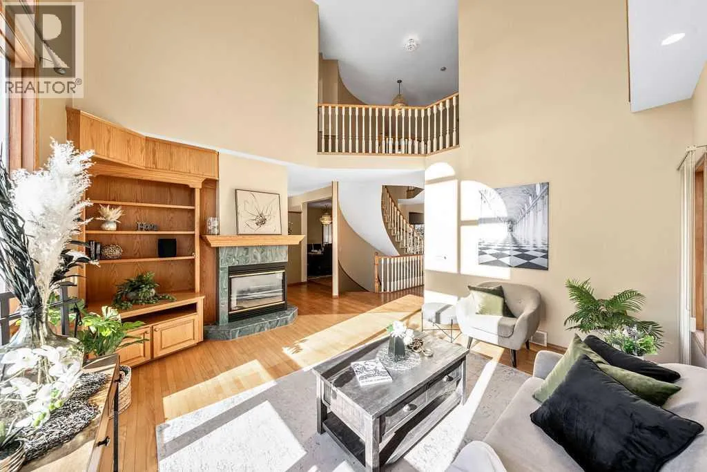 **COZY LUXURY MEETS NATURE-INSPIRED LIVING**Welcome to your perfect retreat â a former show home that fronts onto peaceful greenspace and backs onto a picturesque golf course, offering tranquil lake views from the back porch and ample sunshine throughut! With a coveted south-facing backyard, youâll enjoy sunshine and warmth from morning through evening, creating the ideal backdrop for both quiet moments and lively gatherings!Inside, vaulted ceilings and fireplaces throughout create a sense of cozy grandeur, while expansive windows frame the beauty of the outdoors in every season. Upstairs, the serene primary suite features a private balcony overlooking the golf course â perfect for sipping your morning coffee or watching nature unfold in winter. The luxurious ensuite invites relaxation with its jetted tub and spa-inspired finishes.With three spacious bedrooms upstairs and a private guest suite in the walk-out basement, thereâs ample space for extended family or memorable visits. Step outside to take in the lake views, or gather by the gentle glow of the fireplace for effortless warmth and ambiance.Every corner of this home invites comfort, connection, and a life beautifully lived. Book your private showing today! (id:27476)