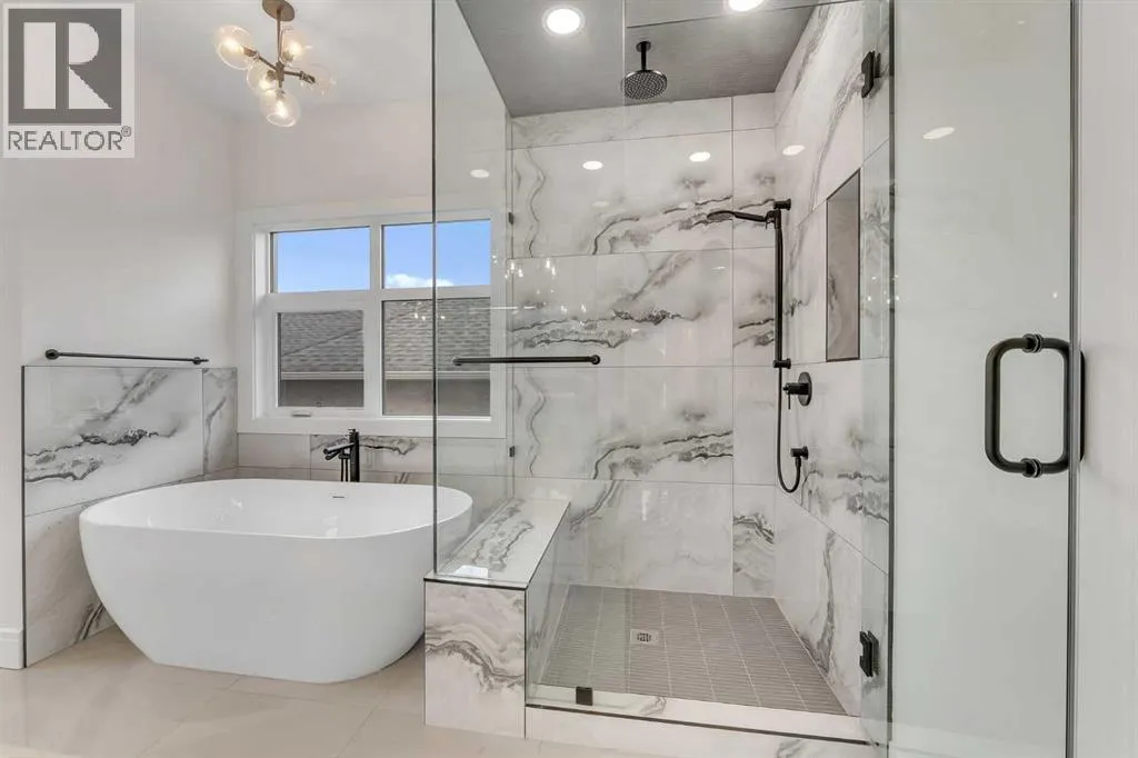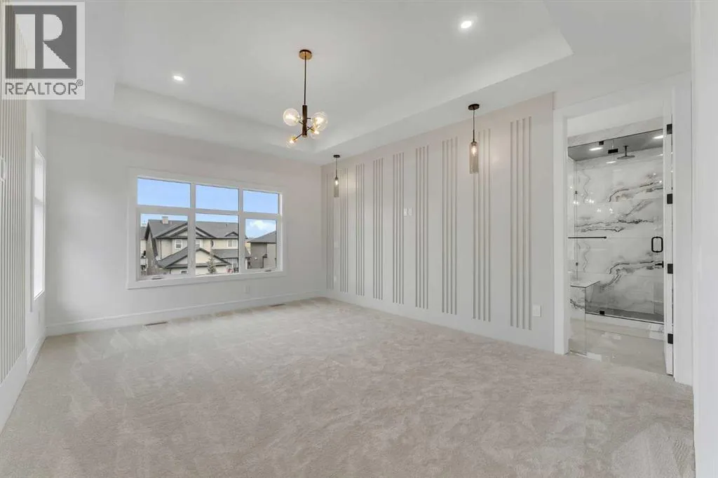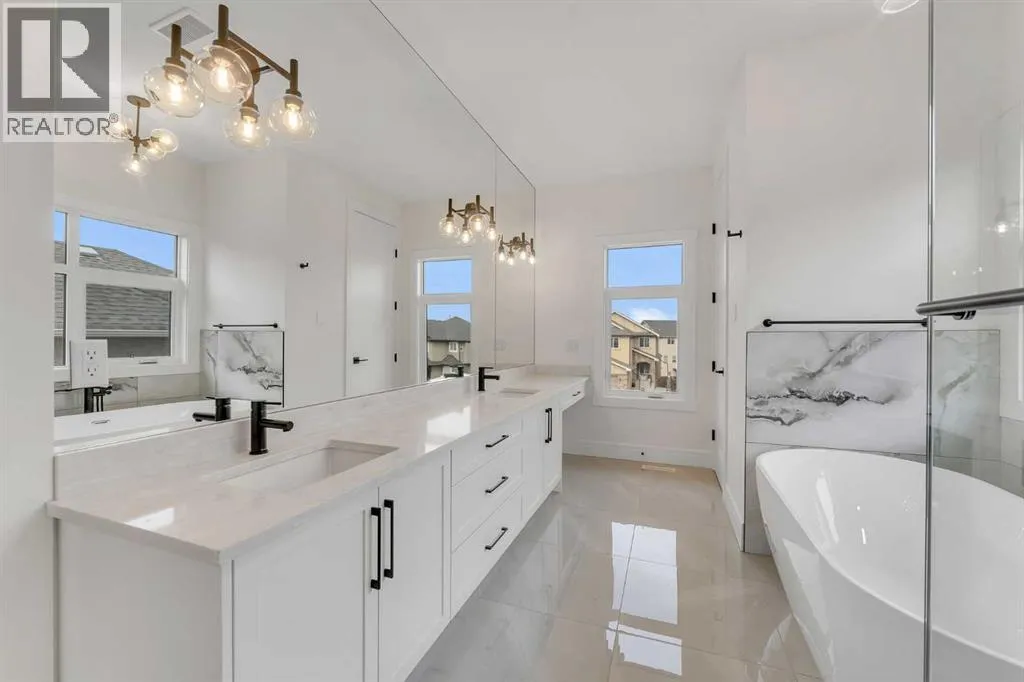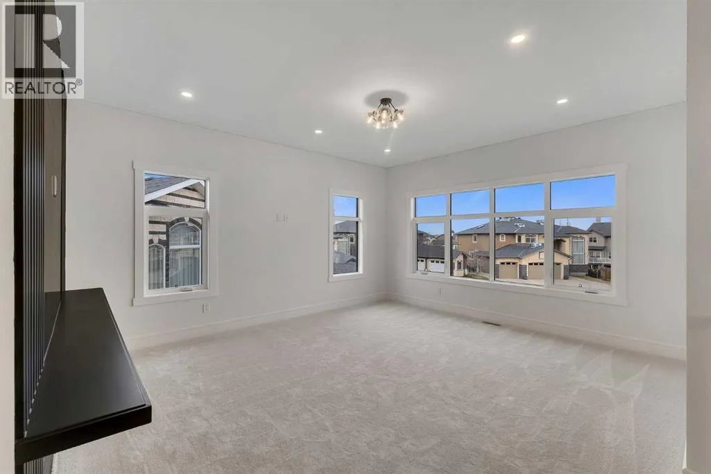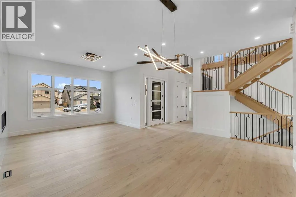 Brand New Luxury Walkout Home â Minutes from Chestermere Lake!Stunning brand-new custom-built luxury home offering over 5,100 sqft of living space with high-end finishes. This home features total of 6 BEDROOMS, 6 BATHROOMS and TRIPLE CAR GARAGE. Perfectly situated in a quiet cul-de-sac with a sunny south-facing backyard, this home combines style, space, and functionality. The main floor features soaring 10-ft ceilings, an open-concept layout with a bright living room, formal dining area, spacious family room, and a large main-floor office/den. The chefâs gourmet kitchen boasts quartz countertops, premium stainless-steel appliances, elegant cabinetry, and a separate spice kitchen. A full bathroom and premium flooring complete this level. The upper floor offers four bedrooms, including TWO MASTER SUITES each with luxurious ensuites and walk-in closets, plus two additional bedrooms, a full bathroom, and a large bonus room perfect for family relaxation or entertainment. The fully finished walkout basement is designed for entertaining, featuring a spacious rec room, custom wet bar, two bedrooms, and two full bathrooms â ideal for guests or extended family. (id:27476)