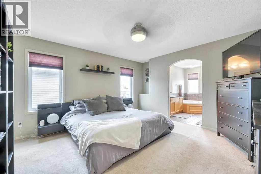 Welcome to Rainbow Falls in Chestermere. This well-kept two-storey backs directly onto the scenic pathwaysâperfect for evening walks or weekend rides. The main floor features an inviting open layout with a cozy gas fireplace, a functional kitchen with plenty of cabinetry, and bright dining and living spaces that feel warm and connected. Upstairs offers three comfortable bedrooms, including a spacious primary suite with a large ensuite and walk-in closet, plus a versatile bonus room ideal for relaxing, gaming, or family movie nights.The fully developed basement adds even more value, complete with an additional bedroom, full bathroom, and a one-of-a-kind fan attic âman caveâ that must be seen to be appreciated. The sellers are happy to include the fan cave setup in the sale or remove it prior to possessionâbuyerâs choice. Located on a quiet street in one of Chestermereâs most desirable neighbourhoods, this home delivers both comfort and community (id:27476)