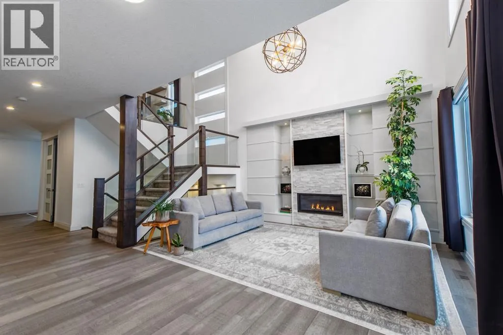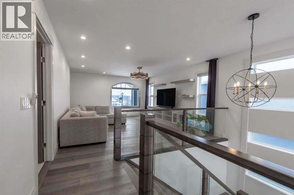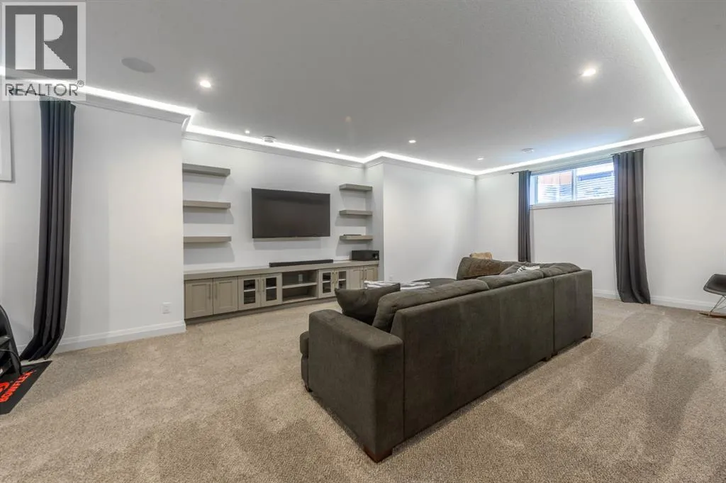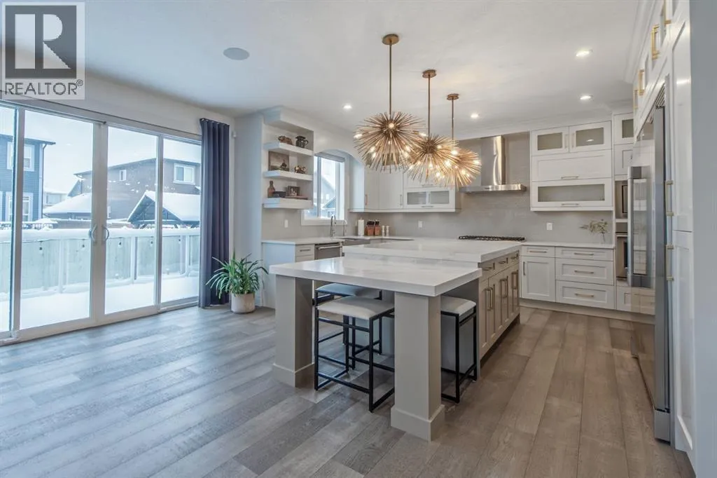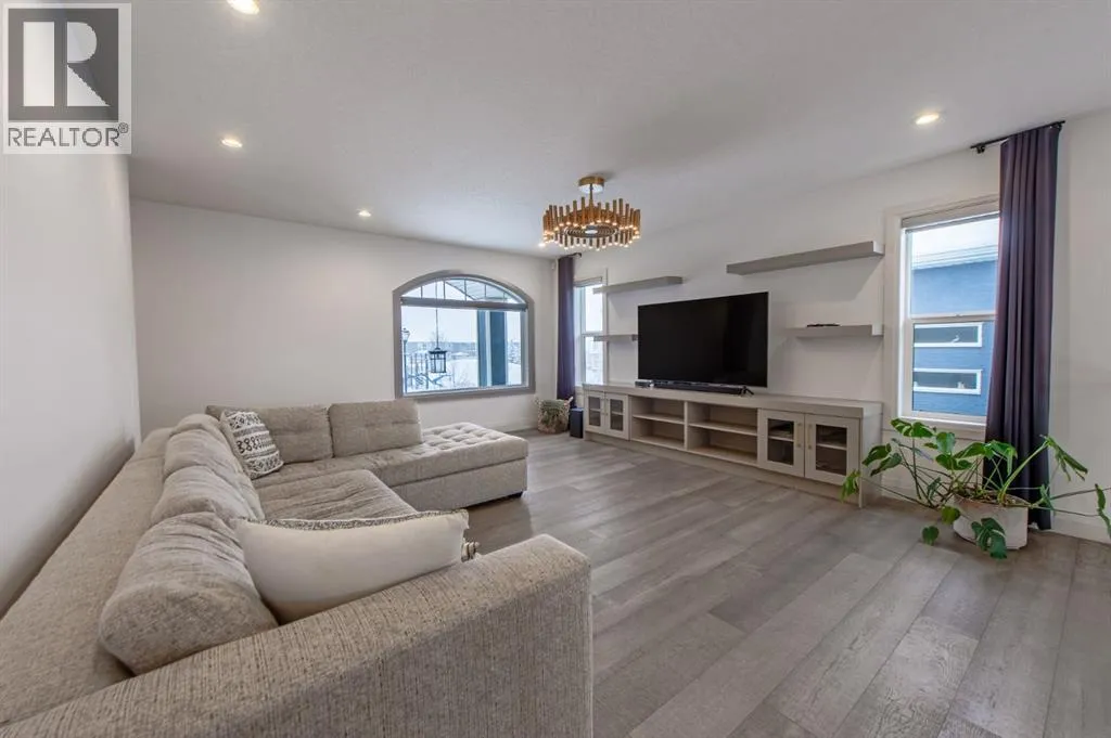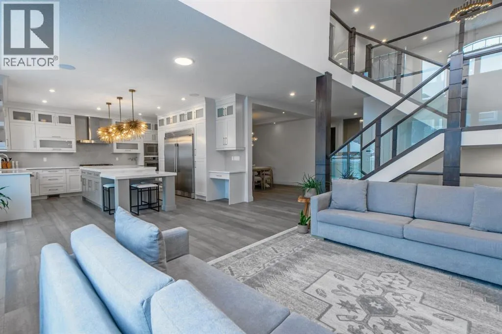 Welcome to Westmere, a lakeside community surrounded by parks, pathways, and natural wetlands. This gorgeous home sits directly across from a green space and offers over 4,300 square feet of thoughtfully designed living, including four bedrooms upstairs and two more in the fully finished basement.The main floor balances elegance and comfort with a private office, a formal dining room with tray ceilings, and a stunning open-to-above living room anchored by a cozy fireplace. The spacious kitchen is designed for both family life and entertaining, offering a large island, high-end stainless steel appliances, a walk-through pantry with direct garage access, and plenty of storage thanks to its ceiling-height cabinetry. From the kitchen, step out onto the glass-railed deck with a natural gas BBQ hookup, perfect for summer evenings.Upstairs, the layout truly shines with a generous bonus room with built-ins, convenient laundry, three well-sized secondary bedrooms, and a relaxing primary suite with a five-piece ensuite. The fully developed basement adds even more space to unwind or host gatherings, featuring a large recreation room with built-ins, a stylish wet bar, two additional bedrooms, a full bath, and two dedicated storage rooms for seasonal items and household extras.This beautifully maintained home also offers air conditioning, central vacuum, a water softener and filtration system, window coverings, built-in speakers, garage heater and a triple attached garage. With a landscaped and fenced yard, finished deck, and its location just minutes from Chestermere Lake, shopping, and everyday amenities, it is ready for you to move in and enjoy. (id:27476)