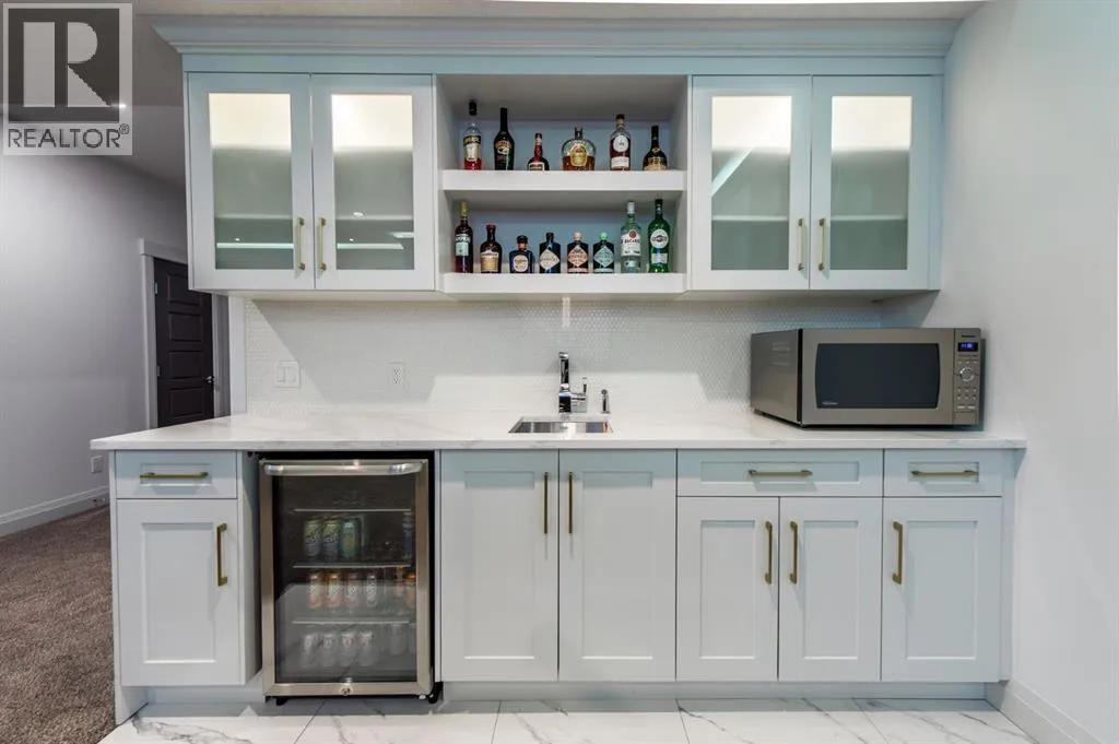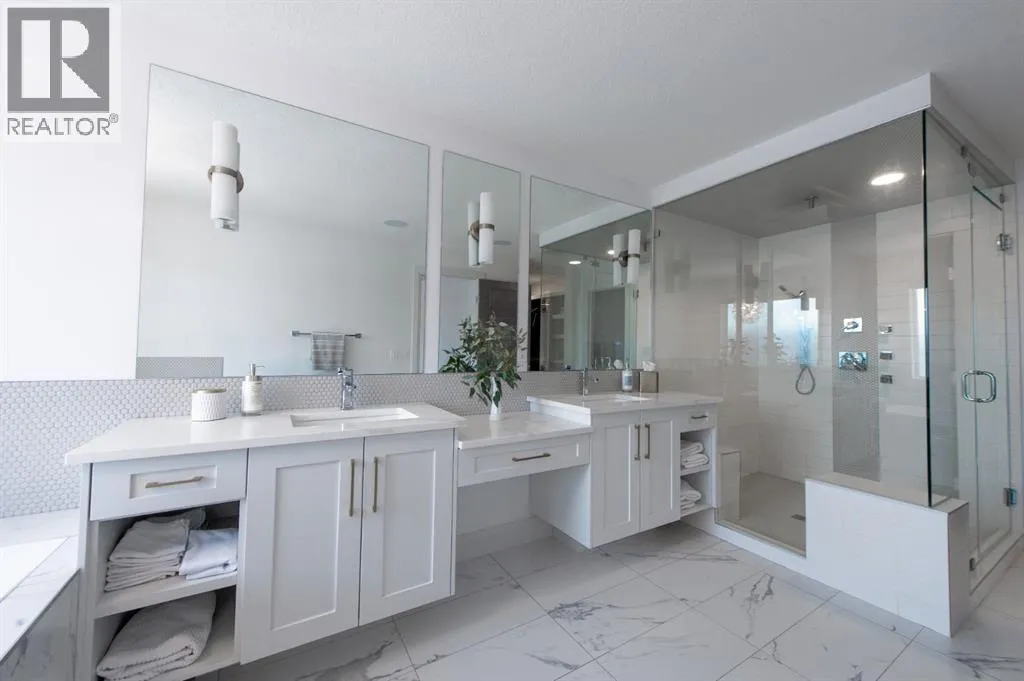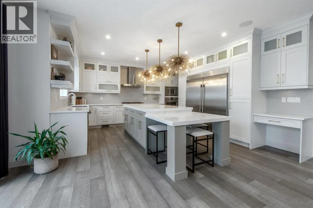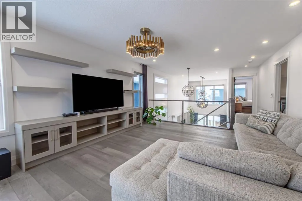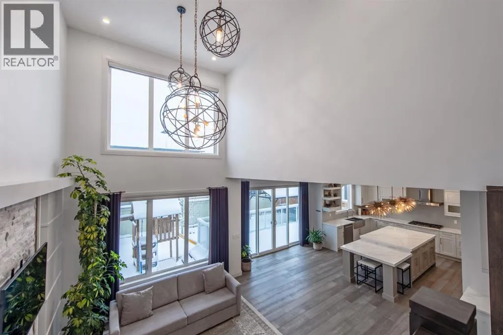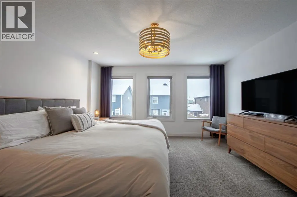 Welcome to Westmere, a lakeside community surrounded by parks, pathways, and natural wetlands. This gorgeous home sits directly across from a green space and offers over 4,300 square feet of thoughtfully designed living, including four bedrooms upstairs and two more in the fully finished basement.The main floor balances elegance and comfort with a private office, a formal dining room with tray ceilings, and a stunning open-to-above living room anchored by a cozy fireplace. The spacious kitchen is designed for both family life and entertaining, offering a large island, high-end stainless steel appliances, a walk-through pantry with direct garage access, and plenty of storage thanks to its ceiling-height cabinetry. From the kitchen, step out onto the glass-railed deck with a natural gas BBQ hookup, perfect for summer evenings.Upstairs, the layout truly shines with a generous bonus room with built-ins, convenient laundry, three well-sized secondary bedrooms, and a relaxing primary suite with a five-piece ensuite. The fully developed basement adds even more space to unwind or host gatherings, featuring a large recreation room with built-ins, a stylish wet bar, two additional bedrooms, a full bath, and two dedicated storage rooms for seasonal items and household extras.This beautifully maintained home also offers air conditioning, central vacuum, a water softener and filtration system, window coverings, built-in speakers, garage heater and a triple attached garage. With a landscaped and fenced yard, finished deck, and its location just minutes from Chestermere Lake, shopping, and everyday amenities, it is ready for you to move in and enjoy. (id:27476)