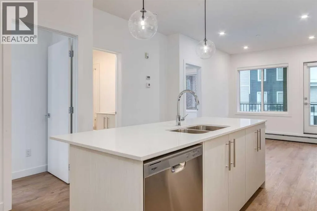 Welcome to Lockwood â this rare, larger 3-bedroom, 2-bath corner unit is available! Complete with 2 titled parking stalls which are conveniently located right outside of the main doors to the building, in the growing community of Chelsea, Chestermere. Steps from parks, pathways, and Chestermere Lake, with shopping and dining close by, this home offers unmatched convenience and lifestyle. This rare floor plan features an oversized south-facing balcony overlooking the green space/parkâa standout feature that provides exceptional extra outdoor living and entertaining space. Inside, enjoy an open-concept layout, luxury vinyl plank flooring, and a bright, airy feel throughout. The kitchen includes full-height soft-close cabinetry, stainless steel appliances, quartz countertops, and a large eat-up island. The primary bedroom offers a walk-through closet and 3-piece ensuite, with two additional bedrooms and a 4-piece main bath completing the functional layout. Building amenities include a fitness centre, ownersâ lounge, and bike storage. This move-in-ready home delivers outstanding value. (id:27476)