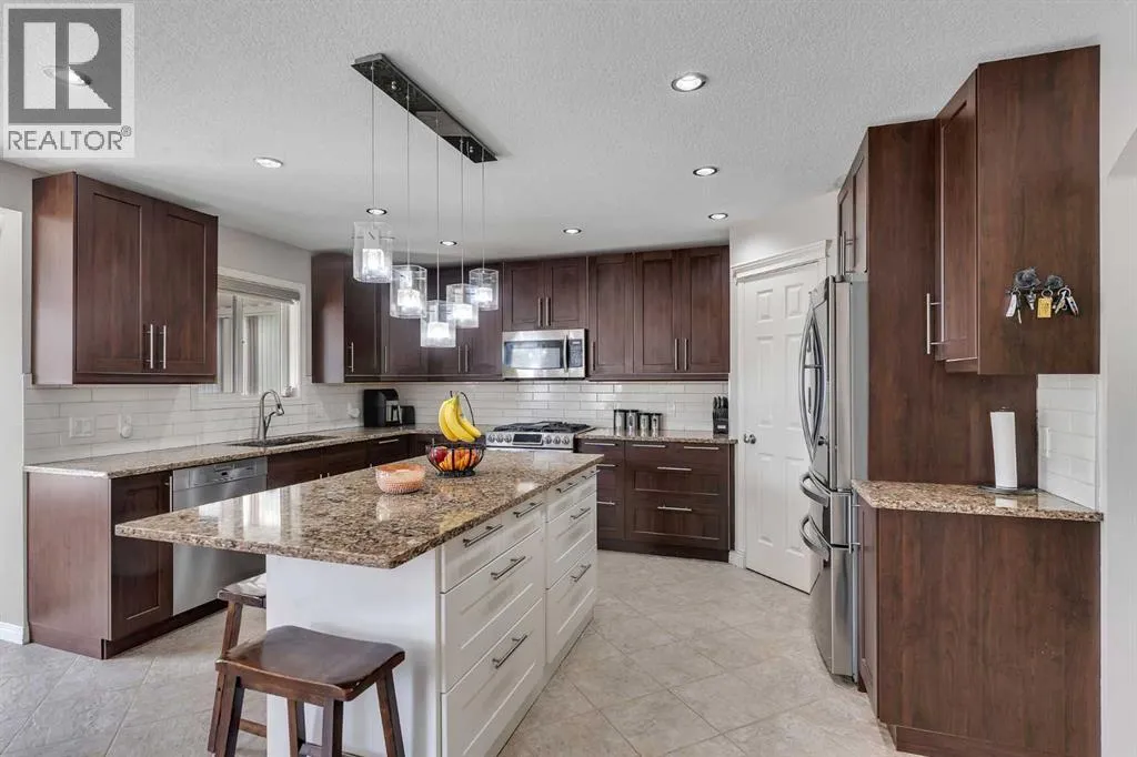 6200+ SQFT LOT! 2900+ SQFT OF TOTAL LIVING SPACE! WALKING DISTANCE TO SCHOOL AND PLAZAS! CENTRAL AC! Welcome to this beautiful home in the West Creek area of Chestermere! Chestermere is a family-friendly and growing lake centric city offering many amenities and a calm and relaxed way of life! This BEAUTIFUL home sits on a 6200+ SQFT FULLY FENCED LOT with an OVERSIZED FRONT DRIVEWAY! From the FRONT PORCH step inside to be greeted with OPEN TO ABOVE SPACE in the FOYER! Make your way to the HUGE FAMILY ROOM fitted with a GAS FIREPLACE overlooking your OVERSIZED DECK! The KITCHEN is perfect for those looking to MEAL PREP, or COOK DINNER FOR GUESTS with TONS OF COUNTER SPACE AND STORAGE, in addition to the PANTRY AND KITCHEN ISLAND! The DINING ROOM connects you to the SUNROOM perfect for those hot sunny days or for those rainy days! There is also LAUNDRY and a 2PC BATHROOM on the MAIN FLOOR. The UPPER LEVEL has PLENTY TO OFFER with a HUGE BONUS ROOM, perfect for the kids or for game/movie night! There are 3 BEDROOMS ON THE MAIN LEVEL (ONE OF WHICH IS THE GRAND MASTER BEDROOM WITH A W.I.C. AND A BEAUTIFULLY RENOVATED 4PC ENSUITE!) There is also an additional 4PC BATHROOM on the UPPER LEVEL! The BASEMENT is a movie enthusiasts dream! Completed with a BAR and a BUILT IN MOVIE THEATRE SYSTEM (INCLUDED WITH THE HOME) be prepared to watch all your fan favorites or play your video games in the PERFECT ENVIRONMENT! There is also a GAS FIREPLACE in the basement as well as a GYM ROOM/OFFICE AND ANOTHER 4PC BATHROOM! Don't forget that the HOME includes CENTRAL A/C with newer FURNACE, HOT WATER TANK AND MORE! (id:27476)