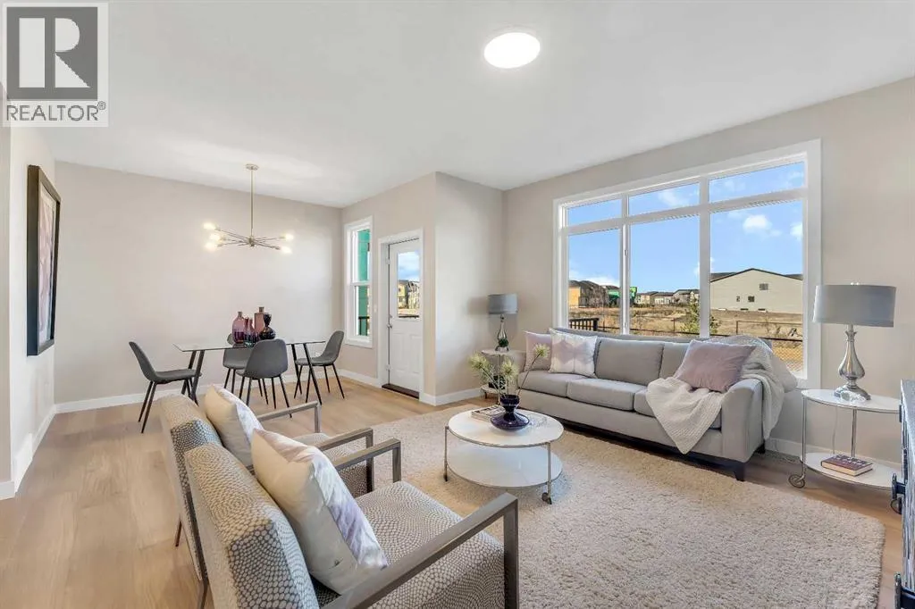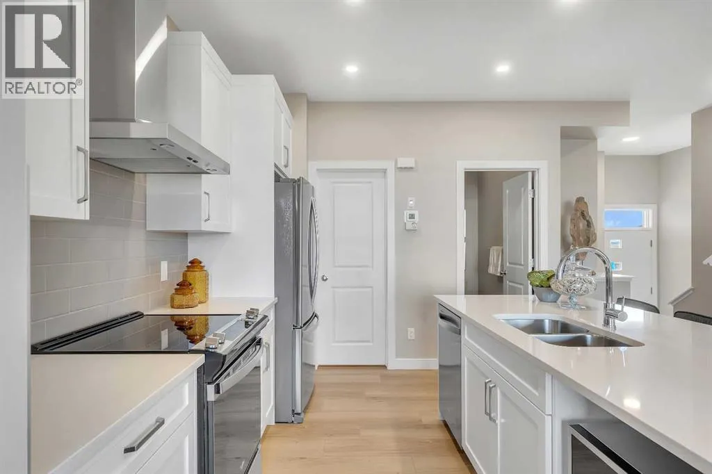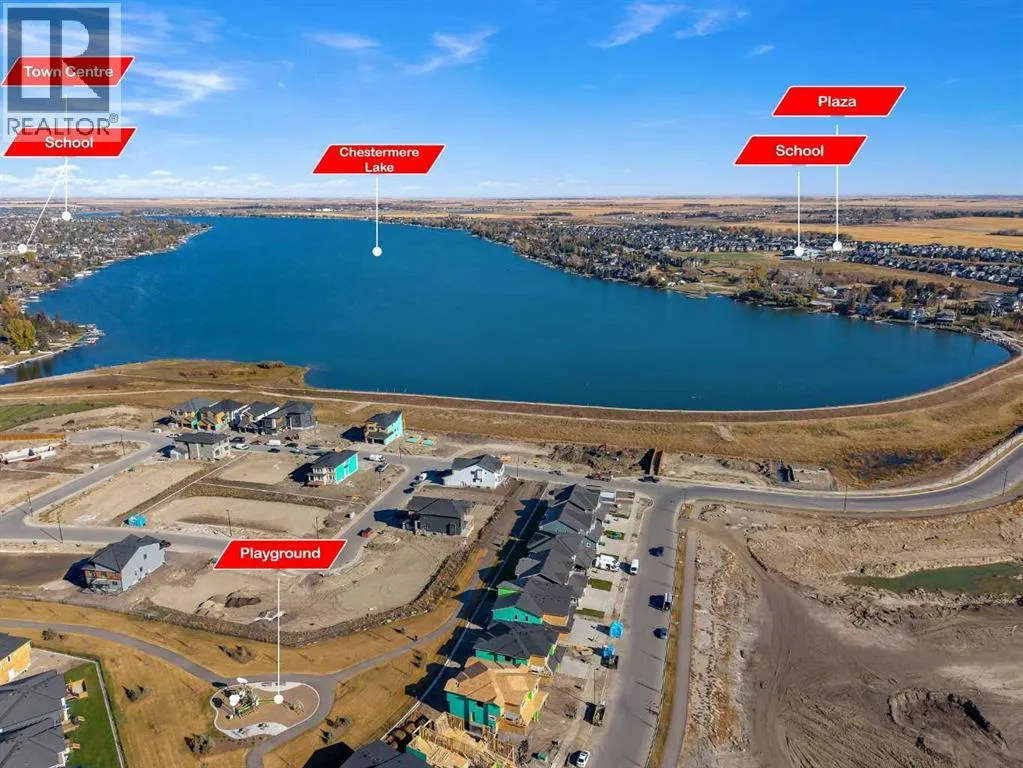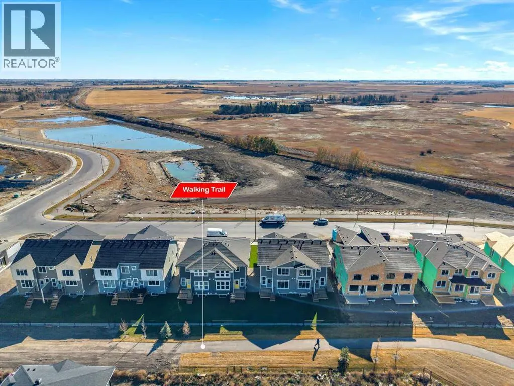 Stylish, steps to the lake, and ready for you to call home! Welcome to this beautifully appointed, 1700 sq ft brand-new Alliston at Home FRONT-ATTACHED GARGAE duplex, ideally located just steps from Chestermere Lake. Offering a thoughtful and functional floor plan with gorgeous finishes throughout, featuring 3 bedrooms, 2.5 bathrooms, a SIDE ENTRANCE to the basement and BACKING ONTO A PATHWAY with a LAKE VIEW, what's not to love? Inside, the OPEN CONCEPT kitchen, living room and dining area features wide luxury vinyl plank flooring and airy 9' ceilings, creating a bright and spacious feel. The kitchen will please the chef of the home with quartz countertops, a large island perfect for meal prep and entertaining, classic white 42" cabinets, sleek stainless steel appliances and a dedicated pantry. Triple-pane windows, which are a standard feature at Alliston Homes, flood the space with natural light. A powder room and spacious foyer with a large closet off the double attached garage complete the main level. Step outside to the sunny backyard, complete with a deck equipped with a gas line for BBQs, and enjoy lake views year-round. Whether swimming in the summer or skating in the winter, this location is all about connection to the outdoors. The spacious yard offers ample space for children or pets to play. Upstairs, the primary suite is a comfortable retreat, featuring a large walk-in closet and a spa-inspired en-suite with his and hers sinks and a spacious walk-in shower. Two additional bedrooms and a convenient laundry room complete the 2nd level. The unfinished basement with 9-FOOT CEILINGS and a side entrance offers endless potential for FUTURE DEVELOPMENT and EQUITY-BUILDING ideas. This property is turnkey, complete with front and back landscaping and is close to schools, shopping and access to the Calgary. (id:27476)