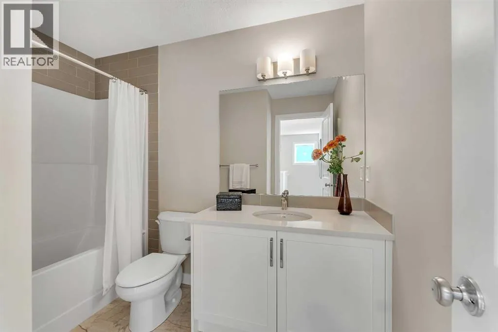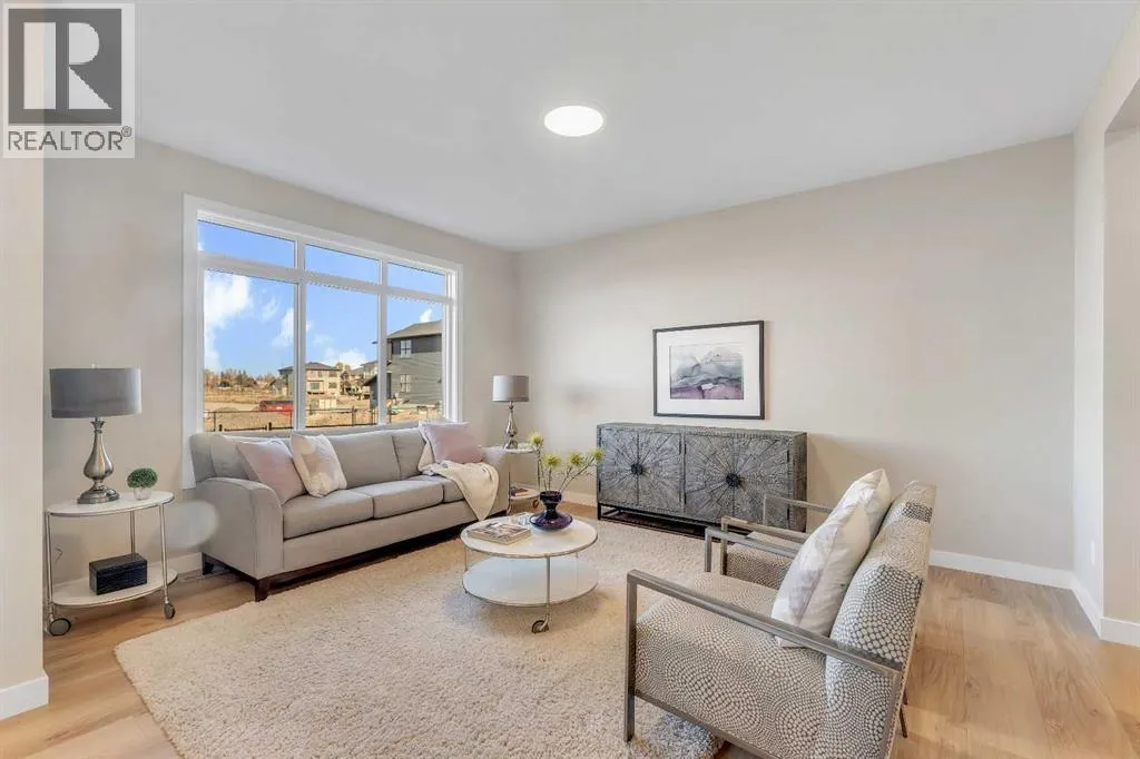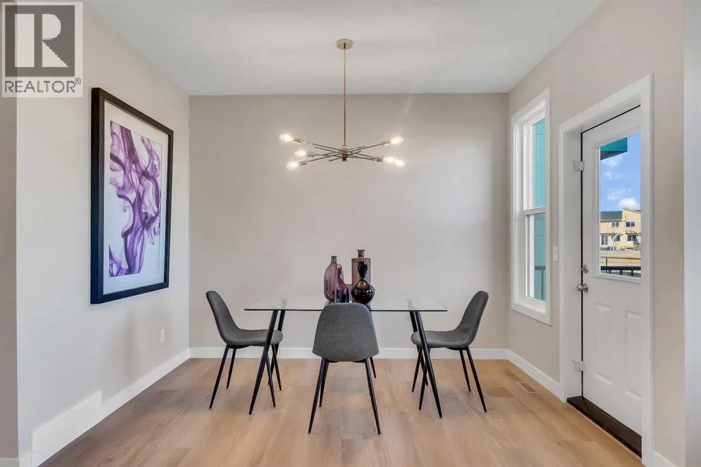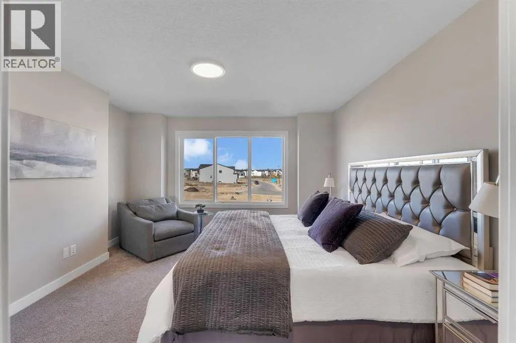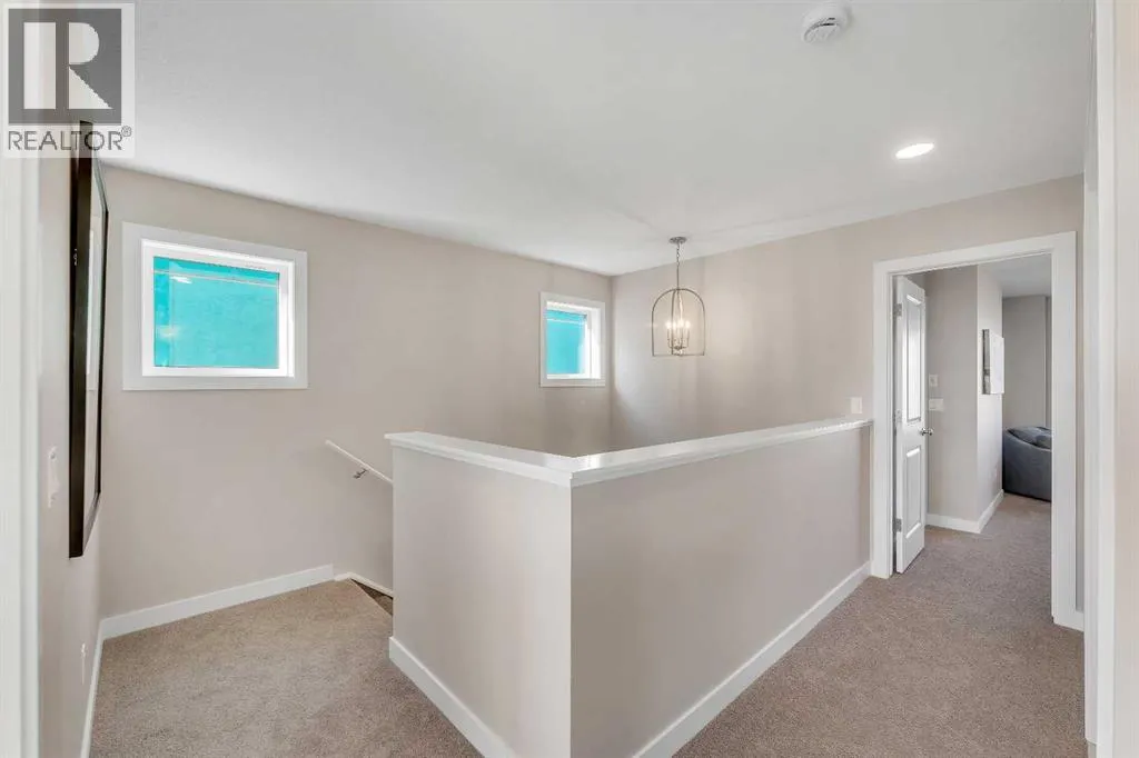 Stylish, steps to the lake, and ready for you to call home! Welcome to this beautifully appointed, 1700 sq ft brand-new Alliston at Home FRONT-ATTACHED GARGAE duplex, ideally located just steps from Chestermere Lake. Offering a thoughtful and functional floor plan with gorgeous finishes throughout, featuring 3 bedrooms, 2.5 bathrooms, a SIDE ENTRANCE to the basement and BACKING ONTO A PATHWAY with a LAKE VIEW, what's not to love? Inside, the OPEN CONCEPT kitchen, living room and dining area features wide luxury vinyl plank flooring and airy 9' ceilings, creating a bright and spacious feel. The kitchen will please the chef of the home with quartz countertops, a large island perfect for meal prep and entertaining, classic white 42" cabinets, sleek stainless steel appliances and a dedicated pantry. Triple-pane windows, which are a standard feature at Alliston Homes, flood the space with natural light. A powder room and spacious foyer with a large closet off the double attached garage complete the main level. Step outside to the sunny backyard, complete with a deck equipped with a gas line for BBQs, and enjoy lake views year-round. Whether swimming in the summer or skating in the winter, this location is all about connection to the outdoors. The spacious yard offers ample space for children or pets to play. Upstairs, the primary suite is a comfortable retreat, featuring a large walk-in closet and a spa-inspired en-suite with his and hers sinks and a spacious walk-in shower. Two additional bedrooms and a convenient laundry room complete the 2nd level. The unfinished basement with 9-FOOT CEILINGS and a side entrance offers endless potential for FUTURE DEVELOPMENT and EQUITY-BUILDING ideas. This property is turnkey, complete with front and back landscaping and is close to schools, shopping and access to the Calgary. (id:27476)