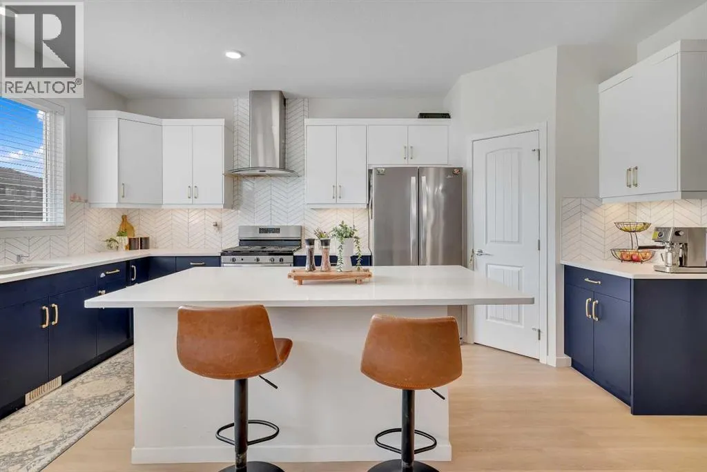 Welcome to 190 Dawson Harbour Rise, a stunning detached home that offers significantly more than the typical laned property. Situated on an upgraded 32 ft. wide conventional lot, this home features a grand, extra-wide entryway and an oversized covered front porchâperfect for enjoying your morning coffee or summer evenings. Step inside to a bright, open-concept main floor flooded with natural light thanks to extra windows positioned on the front, rear, and sides. The heart of the home is the private, L-shaped kitchen tucked away at the rear. It is a chefâs delight featuring dual-tone cabinetry, a massive island, a stylish herringbone backsplash, and a walk-in pantry. A convenient mudroom completes this level. Upstairs, you will find a functional layout including a central bonus room with upgraded hardwood flooring, convenient upper-level laundry, and three generous bedrooms with oversized windows. The bathrooms are well-appointed with undermount sinks, including a main bath upgraded with a standing shower. The basement offers potential for future development or income; it comes equipped with a separate side entrance, two windows, and mechanical systems tucked neatly into the corner. Outside, the expensive work is already done: enjoy a fully concrete side walkway, a concrete rear parking pad with curb wall, and an extra 9 ft. of space beside the parking pad for toys or storage. Located in a quiet area of Chestermere with no direct front neighbors, you have ample street parking and privacy. You are walking distance to the future Dawson School and potential Recreation Centre sites, and minutes from Rainbow Creek Elementary, Chestermere Lake Middle School, and East Hills Shopping Centre. Priced to Sell - Check 3D tour and book your showing today. (id:27476)