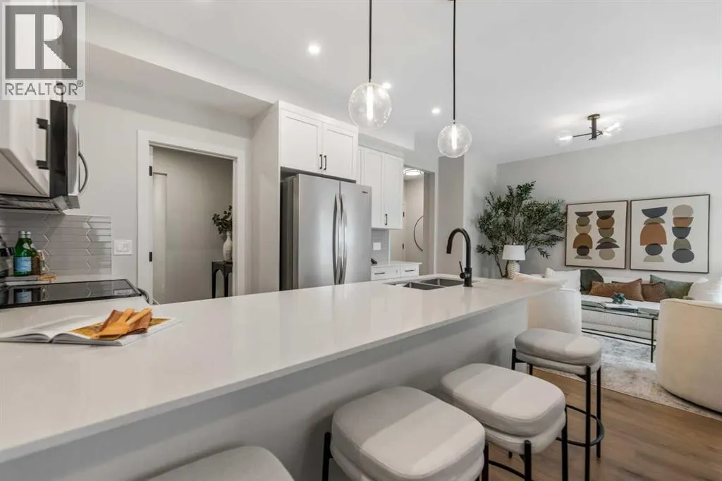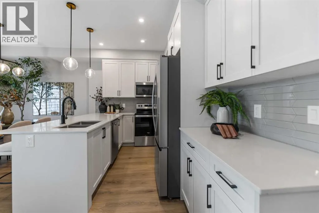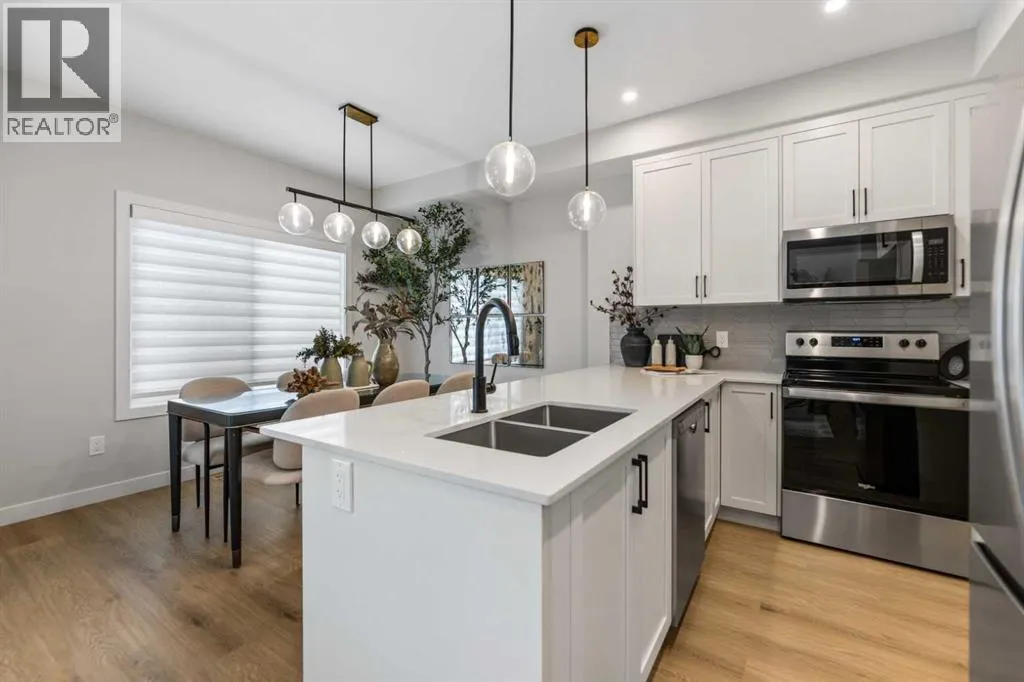 Welcome to this Brand new home built by award winning builder Prominent Homes in the Brand New Community of Waterford! This Beautiful END Unit townhouse has the largest lot and has NO CONDO FEES and features 3 Bedrooms and 2 and half Bathrooms, Air Conditioning, Double Attached Garage and a separate entrance to the basement. THE MAIN floor also features a Gorgeous Kitchen that has an Island, Dining Nook, and Living Room. THE UPPER floor has 3 Bedrooms including a Large Primary Bedroom with a walk in closet and 4 piece Ensuite and Laundry It also has Alberta New Home Warranty. This is a Prominent Homes Showhome and with a lease back of 6-9 months with guaranteed Rent! Call to book your private showing today! (id:27476)