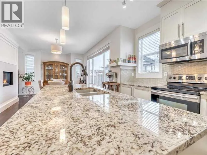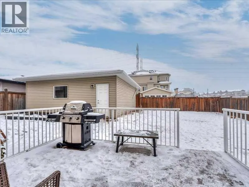 Welcome to this beautifully cared-for two-storey home, perfectly situated on a large corner lot in the sought-after community of Rainbow Falls. Warm, inviting & loaded with thoughtful updates, this home offers the ideal blend of comfort, style & functionality.Step inside to a bright & open main floor where the spacious living room is highlighted by a two-way gas fireplace, adding cozy ambiance to both the living & dining areas. The kitchen is designed for everyday living & easy entertaining with granite countertops, upgraded stainless steel appliances, and a large central island perfect for prepping meals & gatherings. Youâll love the generous rear entry, complete with built-in storage that keeps coats & boots perfectly tucked away keeping the main floor clutter & mud-free.Updated LVP flooring spans the entire upper level, providing a sleek, resilient surface throughout. Three spacious bedrooms & a versatile bonus room offer plenty of flexibility for family living. A well-appointed shared 4-piece bathroom adds comfort & practicality. The huge primary retreat completes this level with a walk-in closet & a beautifully appointed ensuite with dual sinks, while the convenient upper-level laundry simplifies daily routines. The unfinished basement is a blank canvas ready for your personal touchâwhether you envision a family recreation area, a home gym, additional bedrooms, or simply appreciate the abundant storage options it provides.Outside, the fully fenced & landscaped yard features a large deck for summer relaxation. The double detached garage is drywalled, insulated & offers even more storage flexibility. Plus, with air conditioning, youâll stay cool and comfortable all summer long.With its corner-lot setting, modern updates & move-in-ready feel, this home delivers comfort, convenience & incredible potentialâall in one of Chestermereâs most beloved neighborhoods. Close to the dog park, No Frills Shopping area, schools, gas station, walking pathways, the c anal, and of course the LAKE! (id:27476)