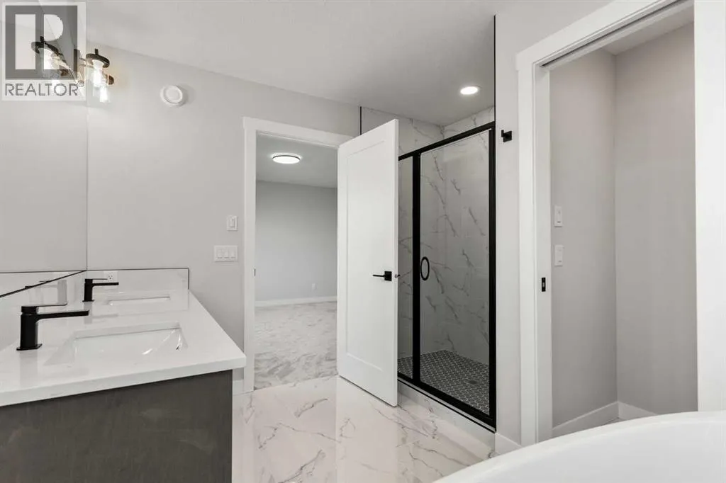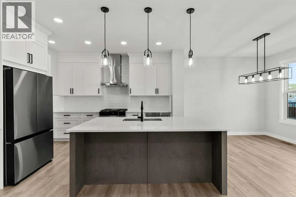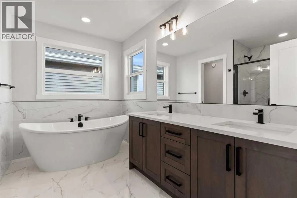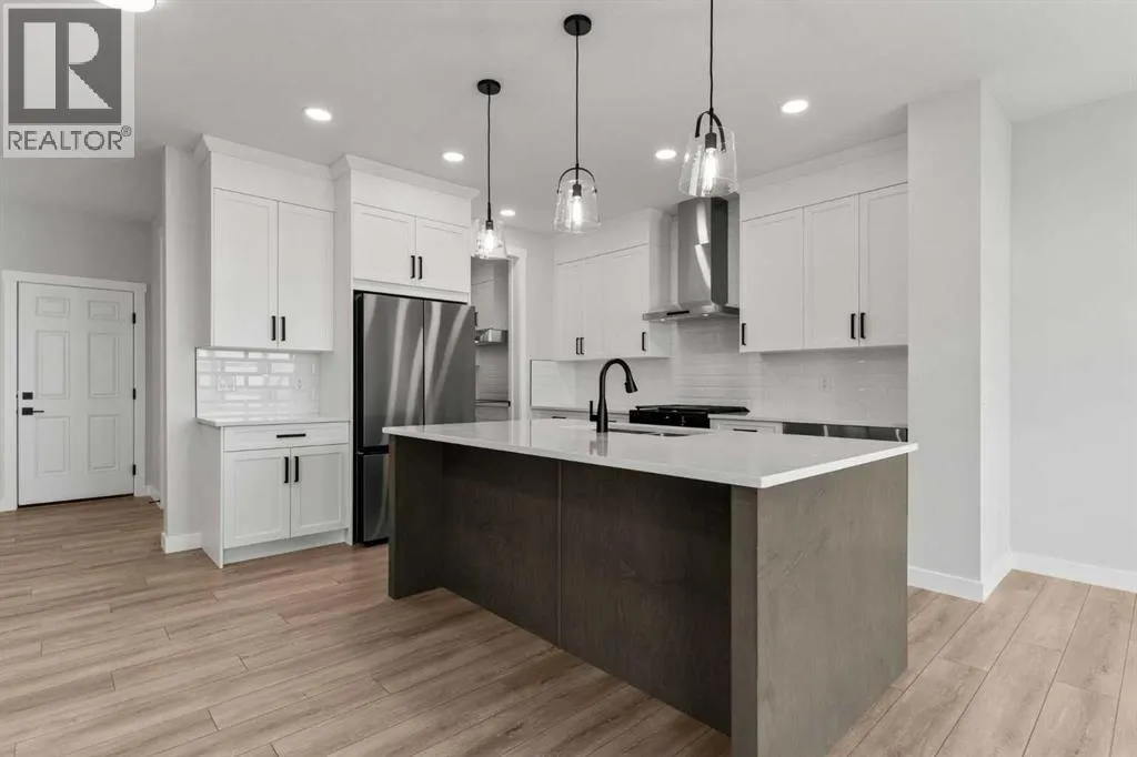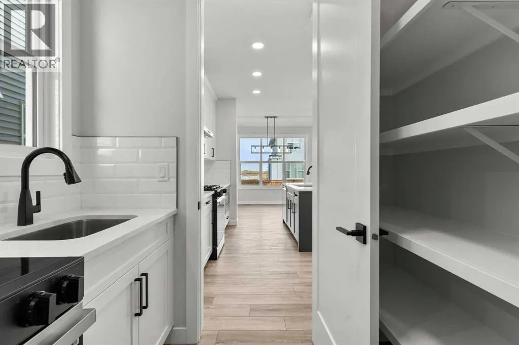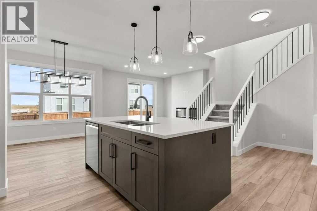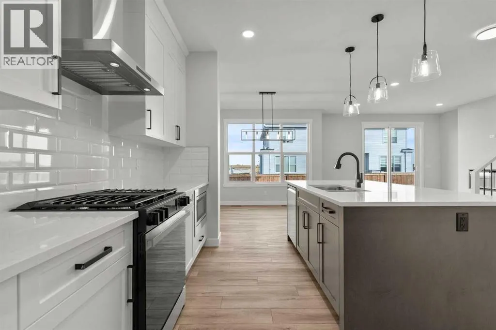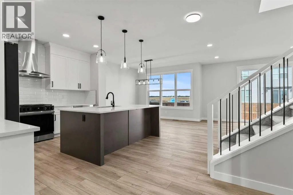 Welcome to 315 Kinniburgh Loop â a beautifully upgraded 3-bedroom, 2.5-bathroom home offered at a very competitive price. Built by Golden Homes, this residence combines luxury finishes, smart functionality, and modern comfort in one of Chestermereâs most desirable communities.The main floor offers a bright, open-concept layout ideal for both entertaining and everyday living. A spacious living room flows into a dedicated dining area and a stylish two-tone kitchen featuring quartz countertops, stainless steel appliances, built-in pantry, and a fully equipped spice kitchen. A tucked-away half bathroom provides extra privacy, and direct access to the double attached garage adds daily convenience.Upstairs, youâll find three well-sized bedrooms, including a luxurious primary bedroom with a spa-inspired 5-piece ensuite complete with a freestanding tub, fully tiled shower, dual vanities, and a massive walk-in closet with custom built-in shelving. Two additional bedrooms share a beautifully finished 4-piece bathroom, and a convenient upper-floor laundry room completes the space.Additional upgrades include 9-foot ceilings and 8-foot doors on the main floor, black spindle railings, black hardware and designer lighting throughout, oversized triple-pane windows, built-in MDF shelving, finished stairs to the basement, a closed-off mechanical room, gas line for BBQ hookup, and rough-in for solar panels.315 Kinniburgh Loop showcases Golden Homesâ commitment to quality, craftsmanship, and functional design. With luxury finishes, a thoughtful layout, and attention to detail, this home offers exceptional value in a prime location. (id:27476)