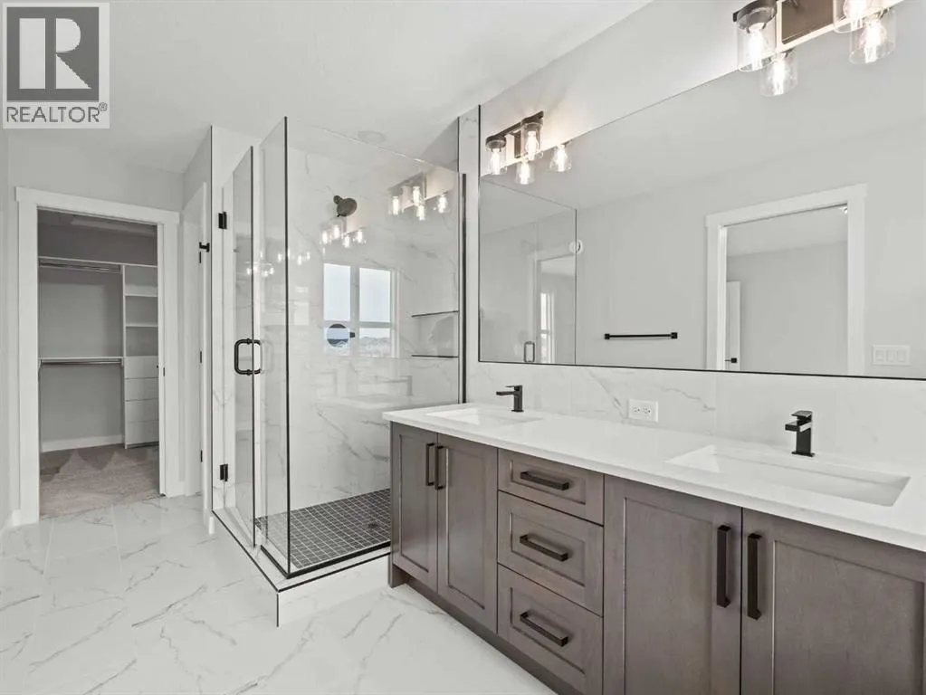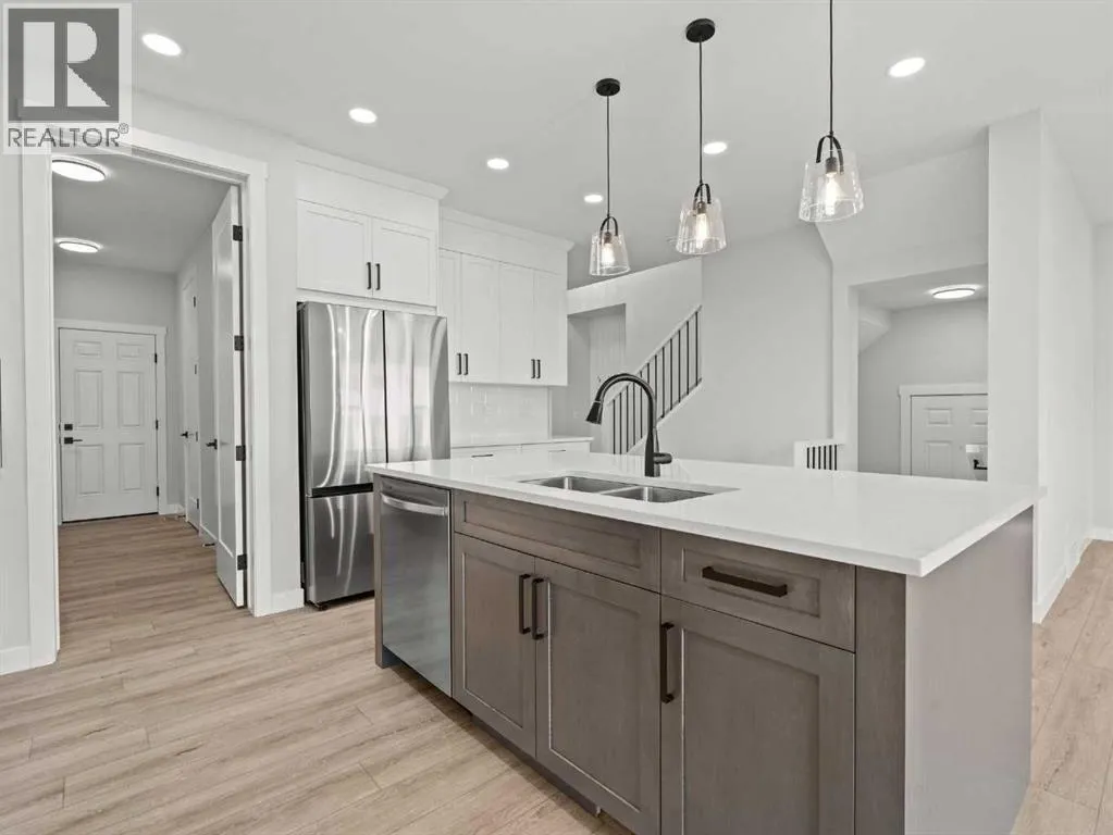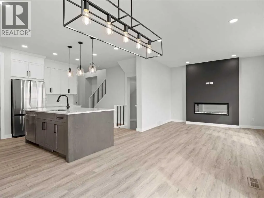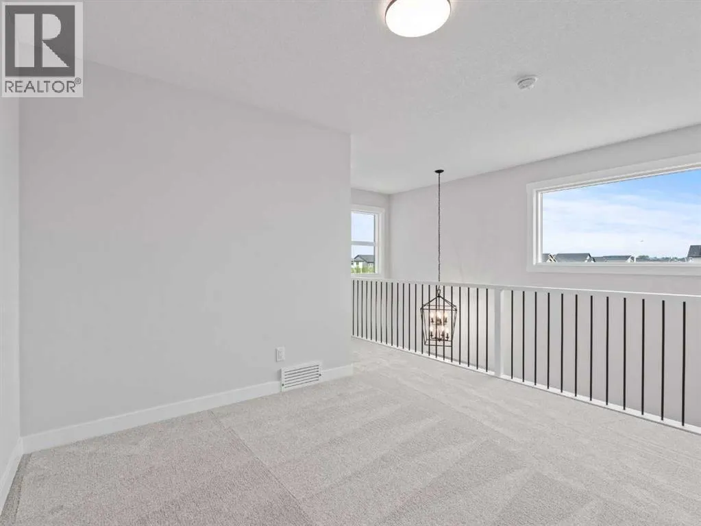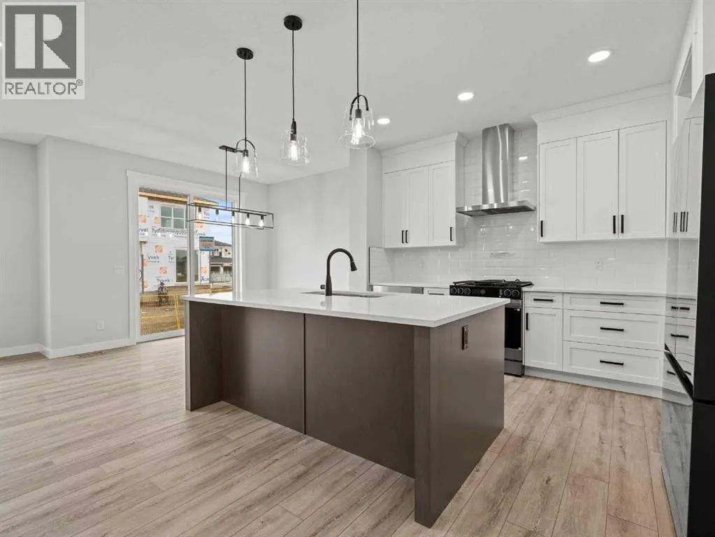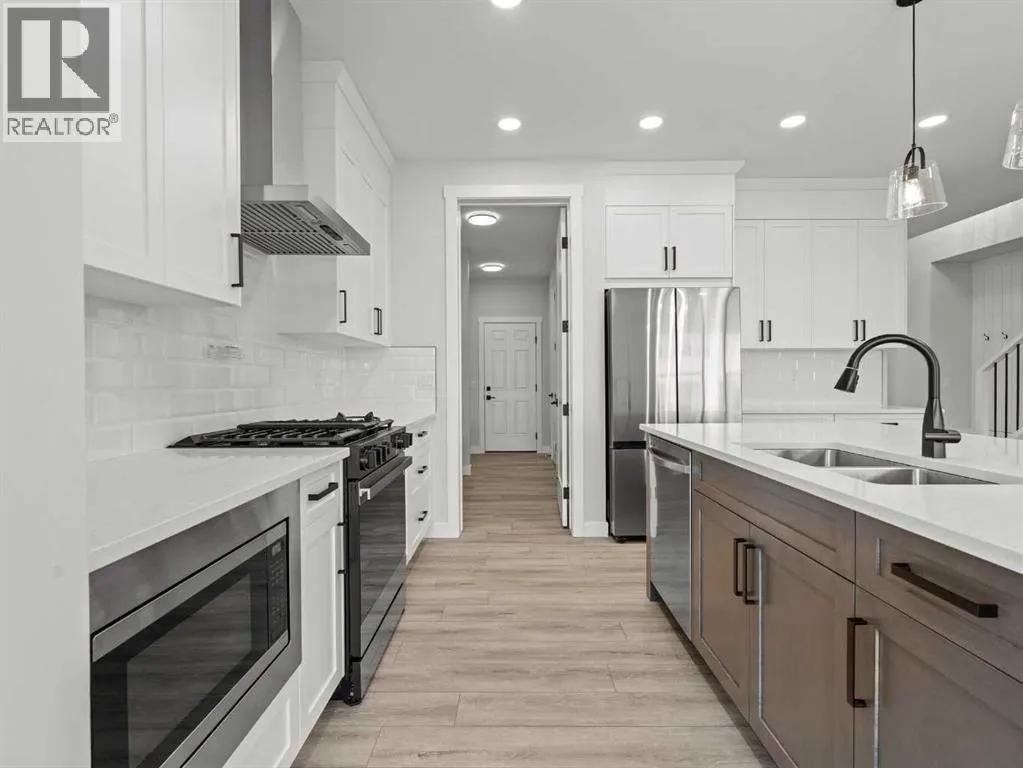 Welcome to 307 Kinniburgh Loop â a beautifully upgraded 4-bedroom, 3-bathroom home in the heart of Kinniburgh South. Just minutes from Chestermere Lake, schools, and everyday amenities, this home offers an exceptional blend of luxury, function, and everyday comfortâat a highly competitive price.From the moment you step inside, the open-to-below front foyer makes a lasting impression with a custom feature wall and built-in bench with cubby nooks. The main floor is open, bright, and thoughtfully designed, featuring a full bedroom and bathroom, ideal for guests or multi-generational living. The two-tone kitchen is both stylish and practical, with painted cabinetry, quartz countertops, a gas range, upgraded stainless steel appliances, and a dedicated spice kitchen for additional cooking space. A walkthrough mudroom and pantry connects directly to the garage, offering a built-in bench with cubby nooks and plenty of storage space.Upstairs, the spacious bonus room provides flexible space for a media room, office, or kidsâ play area. The primary bedroom is positioned at the front of the home for enhanced privacy and comfort. It features a spa-like 5-piece ensuite with a freestanding tub, fully tiled shower, and dual vanities. The walk-in closet conveniently connects directly to the laundry room, adding a layer of everyday efficiency.Additional upgrades throughout the home include spindle railings, luxury vinyl plank (LVP) flooring, a side entrance, gas line to the deck, triple-pane windows for enhanced energy efficiency, 8-foot doors and true 9-foot ceilings on the main floor, built-in MDF shelving, a closed-off mechanical room, and a solar panel rough-in.With its impressive list of upgrades, functional layout, and premium finishes, this home delivers outstanding value in one of Chestermereâs most desirable communities. Donât miss your chance to own this move-in-ready home designed for modern living. (id:27476)