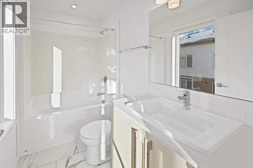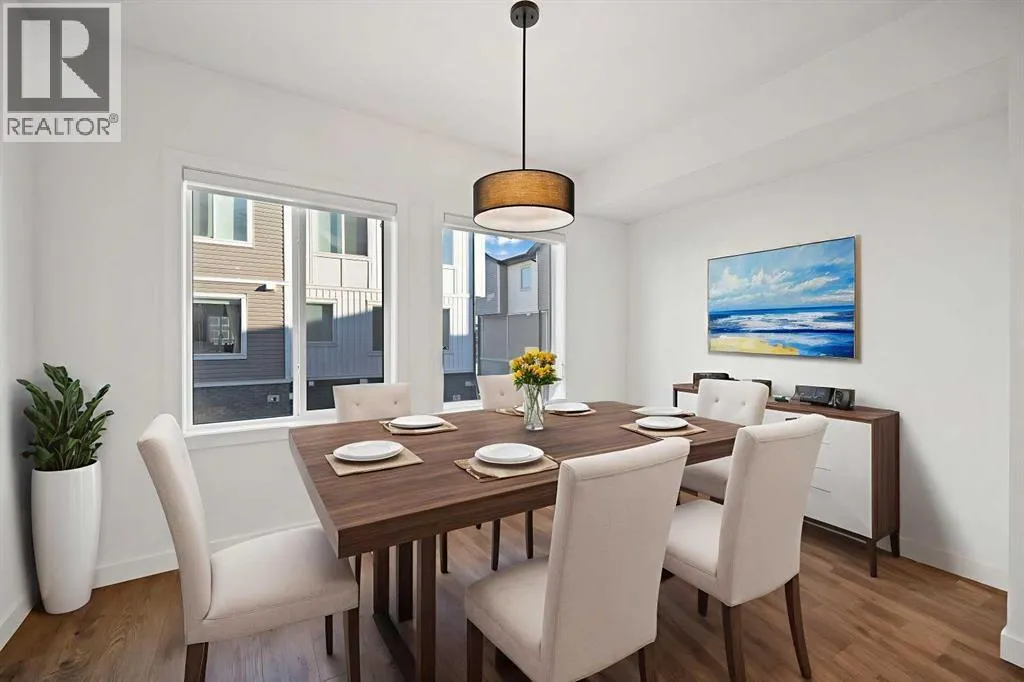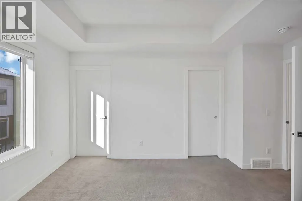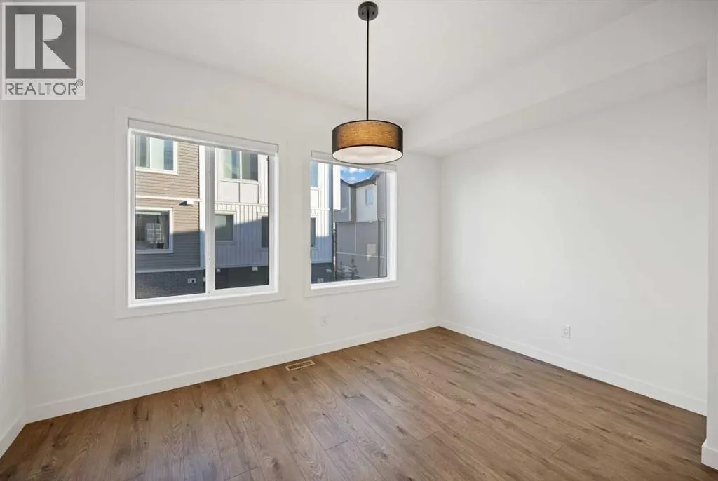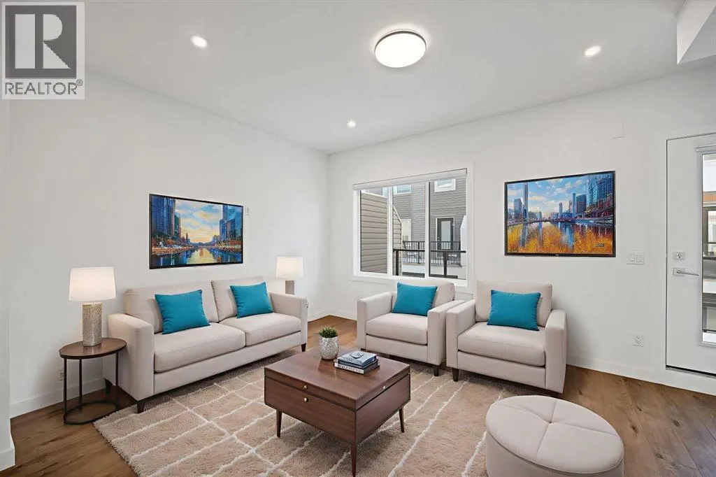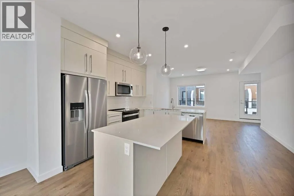 Experience elevated living in this beautifully designed 4-bedroom townhome located in the vibrant, family-friendly community of Chelsea. With scenic walking paths, playgrounds, and convenient shopping just steps away, this home offers an ideal blend of comfort and convenience. Inside, you'll find 4 spacious bedrooms, 2.5 bathrooms, and an attached double heated garageâperfect for Alberta winters. The main floor includes a versatile bedroom that can serve as a guest room, home office, or creative workspace. Thoughtful upgrades are featured throughout, including luxury vinyl plank flooring, high ceilings, and stylish modern finishes. The chef-inspired kitchen is a standout, showcasing full-height soft-close cabinetry, quartz countertops, stainless steel appliances, and a functional pantry. Whether you're entertaining at the eat-up island or preparing everyday meals, this kitchen is designed to impress. Upstairs, the primary suite provides a relaxing retreat with a large walk-in closet and a private 4-piece ensuite. Two additional bedrooms, a 4-piece main bathroom, and convenient upper-level laundry complete the second floor for added everyday comfort. Bright, modern, and move-in ready, this townhome offers the low-maintenance, sophisticated lifestyle. Donât miss your opportunity to make this exceptional home yours! (id:27476)