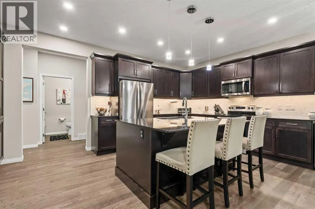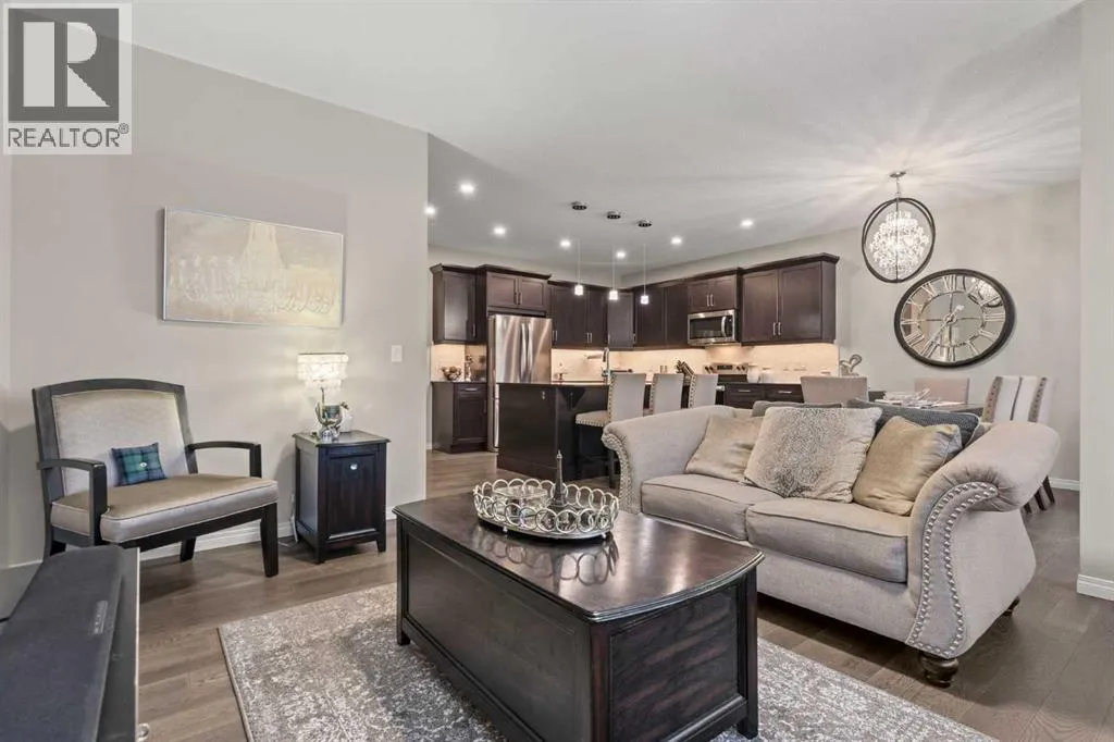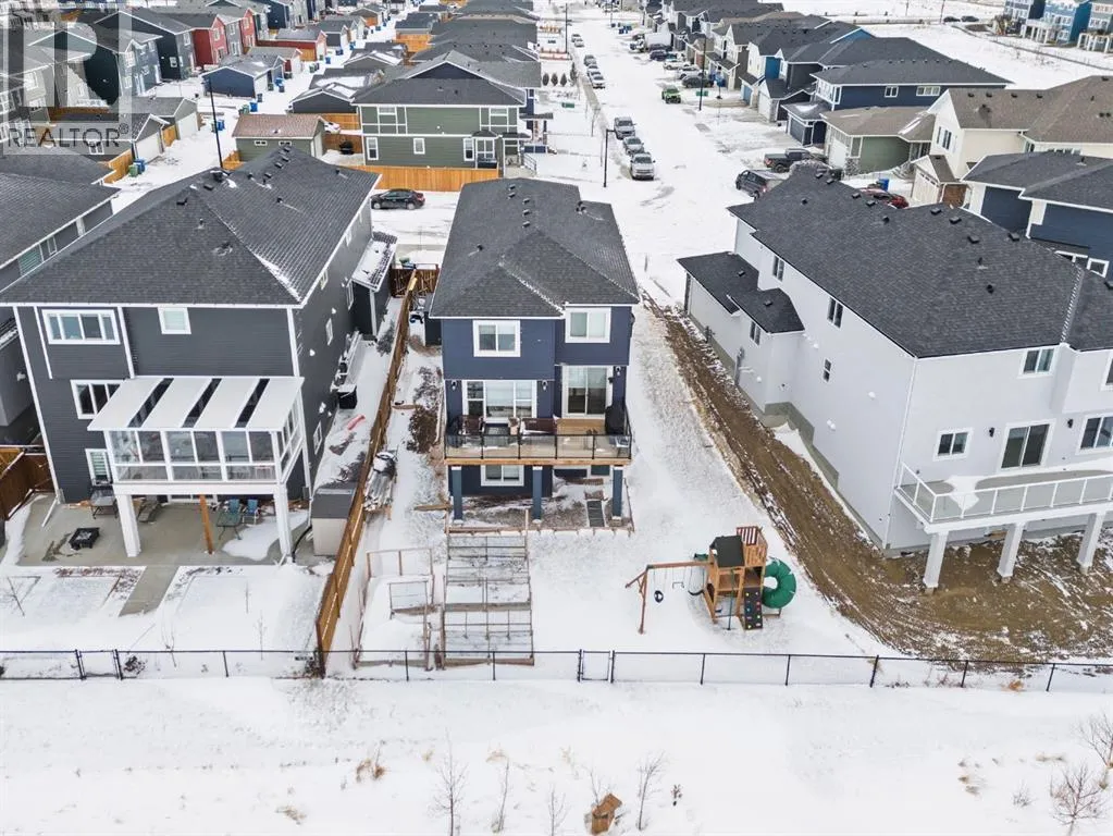 Welcome Home. This stunning two story walkout is only 3 years old and has been thoughtfully designed and upgraded. Tucked away on a quiet street, backing directly onto a green space and playground, in one of Chestermereâs most sought-after communities. This home offers the kind of setting families dream about. From the moment you arrive, the curb appeal stands out with its exposed aggregate driveway, and Gemstone lighting that adds year-round elegance. The main level features a bright, open-concept layout designed for both everyday living and entertaining. The kitchen is the heart of the home, featuring sleek cabinetry with custom lighting and soft close hinges, elegant granite countertops, a stainless steel appliance package, perfect for busy mornings and weekend entertaining offering space and functionality. The warm and welcoming living room is complete with a stylish mantle feature and large windows allow beautiful sunlight to flow into the space from the west facing back yard. Upstairs, the large central bonus room provides space and comfort for you to relax and unwind or have some fun family time. The primary retreat delivers both comfort and style with an ensuite that includes a deep soaker tub, dual sinks, and a beautifully tiled glass shower as its standout feature. The generous walk-in closet offers space for all your storage needs. The 2 Secondary bedrooms are well sized, and the layout offers excellent flow for families of all stages being finished off with a functional laundry room. The builder-finished walkout basement is a major bonus with permits allowing peace of mind. The spacious rec room adds flexible living space with potential for a future home theatre, thanks to the ceiling-mounted projector rough-in. A 4th bedroom, full bathroom and extra storage space complete this walkout level. The mechanical systems are top-tier, including a 75-gallon hot water tank, HRV system, and high-efficiency furnace, ensuring long-term comfort and reliability. Ste p outside and enjoy one of the homeâs biggest highlights: a sunny west-facing backyard that feels like your own private park. Professionally landscaped with lush grass, garden beds that are perfect for the gardening enthusiast, and an extended upper deck with aluminum and glass railing, this yard is designed for relaxing, hosting, and soaking in those beautiful open views of the green space behind. The double attached garage offers parking for two vehicles, a rough-in for an EV charger in the garage and a custom built-in storage loft. Additional features are a 4-ton A/C (with cover), Supreme security system with doorbell and outdoor cameras and strategically placed Wi-Fi boosters for seamless connectivity. Living in Chelsea means being close to everythingâschools, pathways, shoppingâand only minutes from Calgary and the ring road for easy commuting. Chestermere Lake is nearby for boating, paddleboarding, and sunny afternoons. Book your private showing and experience what makes this property so special. (id:27476)