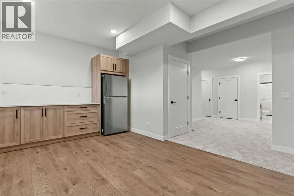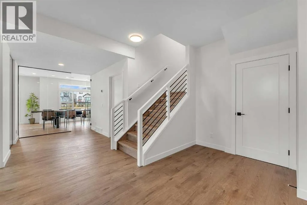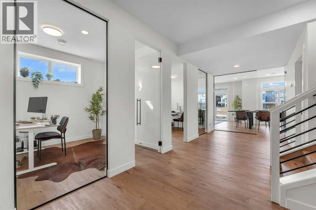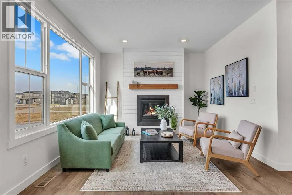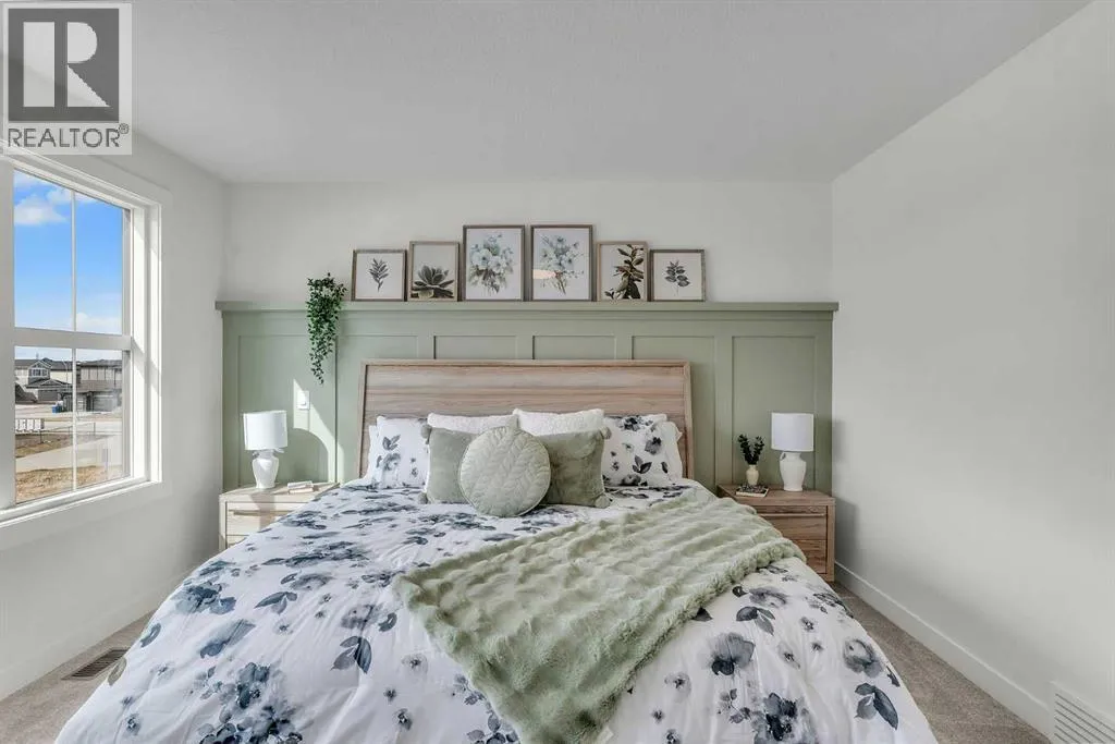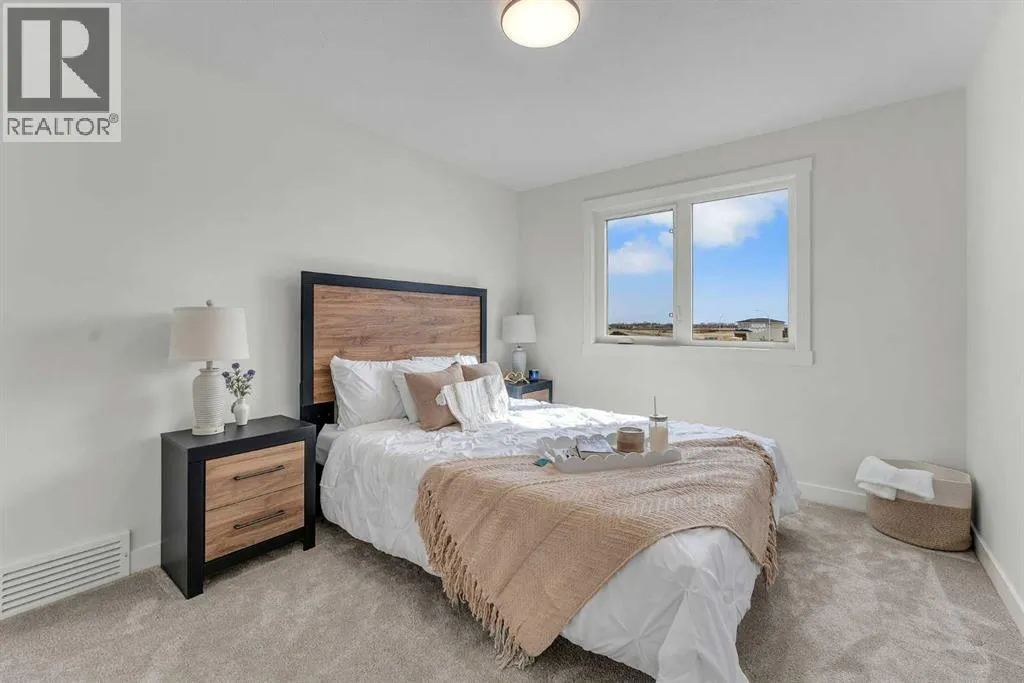 Welcome to 267 Kinniburgh Loop, a truly exceptional luxury home offering 3,294 sq. ft. of living space, 6 bedrooms, 4 full bathrooms, and a fully finished basement and Spice Kitchen. This home has been thoughtfully designed for both everyday living and entertaining. From the moment you arrive, youâre welcomed by an impressive oversized front door and a spacious, open entry that immediately sets the tone for the quality found throughout the home. Just off the foyer is a large main-floor bedroom or office, conveniently connected to a full bathroom with a standing showerâideal for guests or multigenerational living. Pictures of similar model home spec subject to change.As you move further into the home, youâll be captivated by the stunning chefâs kitchen featuring a nearly 9-foot island, quartz countertops, stainless steel appliances, full-height cabinetry, and high-end luxury finishes. The main floor is completed by a spacious living room with an electric fireplace, dining area, spice kitchen, and a walk-through mudroom with direct access to the garage. Everyday convenience is elevated with three main-floor closets, including two in the kitchen and one in the mudroom.Upstairs, a generous bonus room and sitting area create the perfect secondary living space. The expansive primary bedroom offers breathtaking pond views and connects to a spa-inspired 5-piece ensuite featuring dual vanities, a large glass shower with mosaic tile base, a freestanding tub, and a private toilet room. The ensuite flows seamlessly into the laundry room, which also offers access back to the bonus room for added functionality. The upper level is completed by two additional large bedrooms and another beautifully finished 5-piece bathroom, with no dropped beams on the main or upper floors for a clean, open feel.The fully finished basement extends the homeâs versatility with two more spacious bedrooms, a large wet bar with fridge, and an additional washer and dryer hookupâideal for extended f amily or entertaining. This home includes all of the renowned Golden Homes standards, such as true 9-foot ceilings on both the main floor and basement, triple-pane windows, side entry, matte black iron spindle railings, matte black hardware and fixtures, built-in shelving in the pantry and primary walk-in closet, upgraded carpet underlay, a tankless hot water heater, smart home features, gas lines to both the deck and garage, and a solar panel rough-in. The exterior is fully landscaped with the lot graded and loamed, sod installed to the side entry, and a front yard tree. (id:27476)