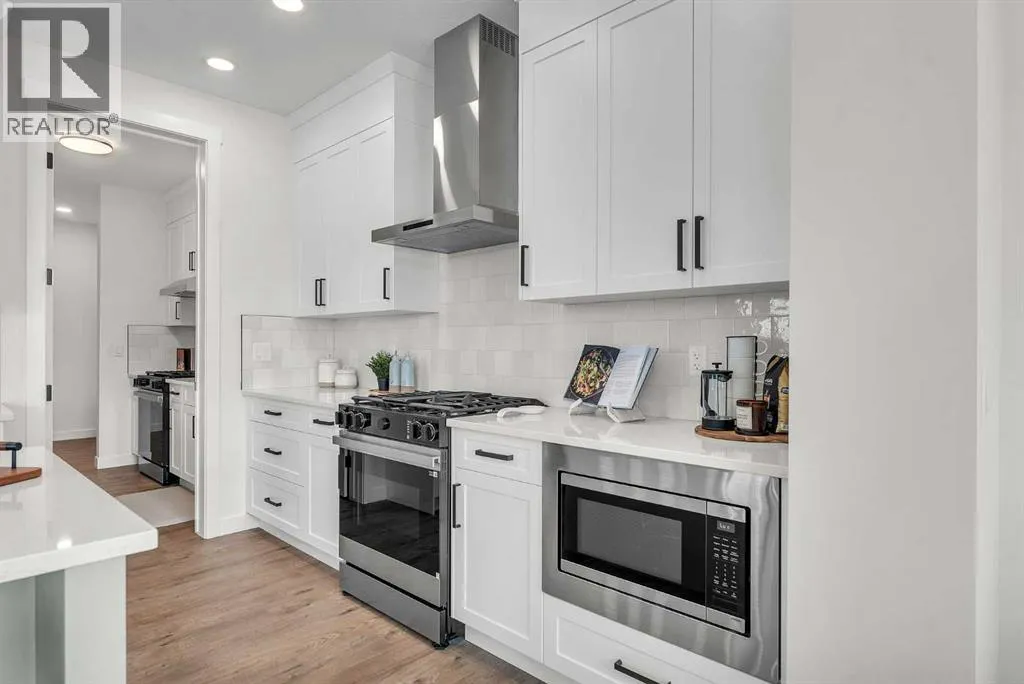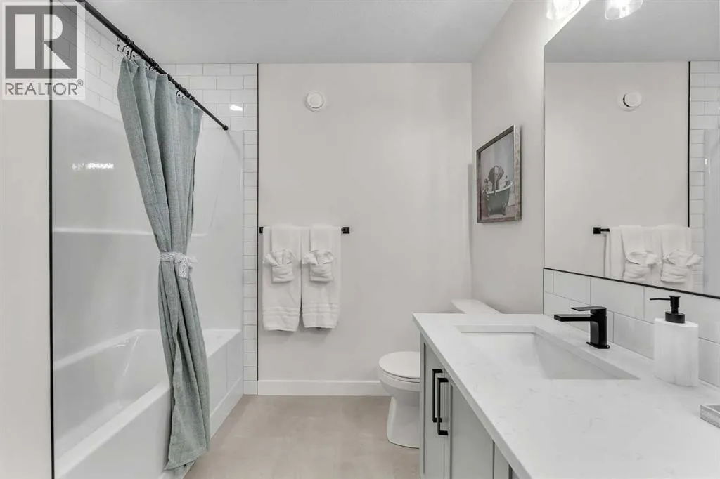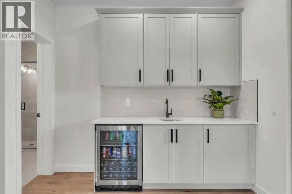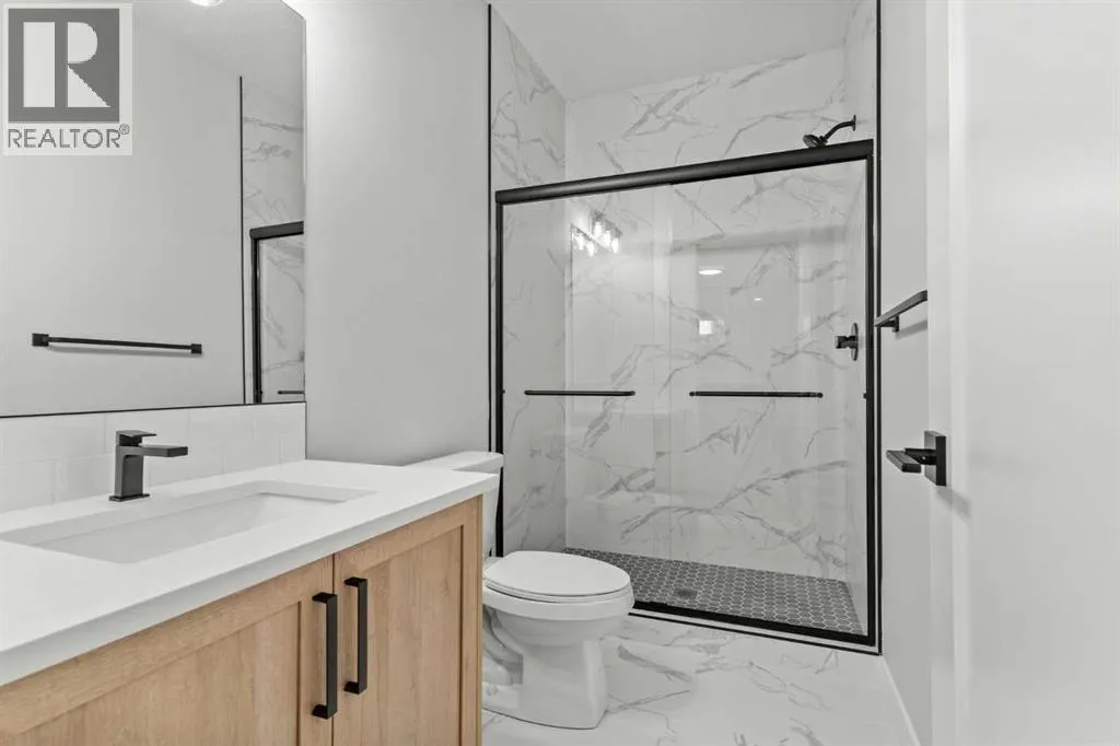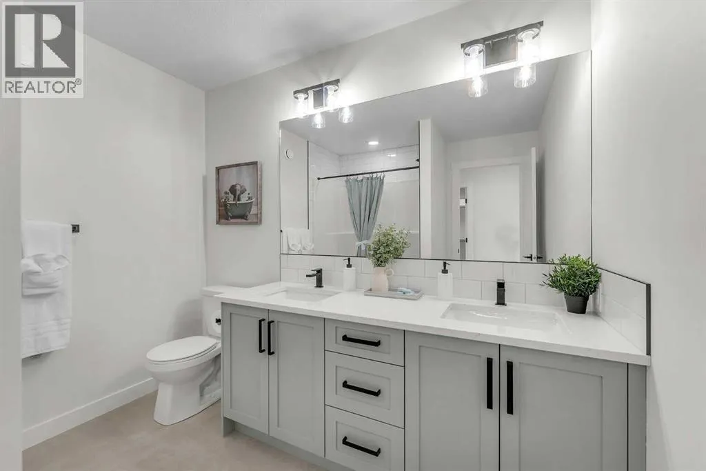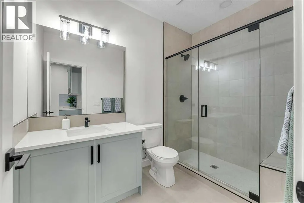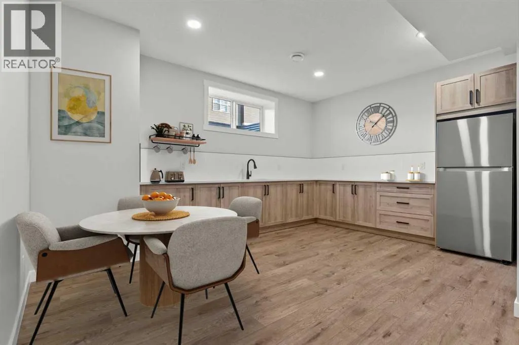 Welcome to 267 Kinniburgh Loop, a truly exceptional luxury home offering 3,294 sq. ft. of living space, 6 bedrooms, 4 full bathrooms, and a fully finished basement and Spice Kitchen. This home has been thoughtfully designed for both everyday living and entertaining. From the moment you arrive, youâre welcomed by an impressive oversized front door and a spacious, open entry that immediately sets the tone for the quality found throughout the home. Just off the foyer is a large main-floor bedroom or office, conveniently connected to a full bathroom with a standing showerâideal for guests or multigenerational living. Pictures of similar model home spec subject to change.As you move further into the home, youâll be captivated by the stunning chefâs kitchen featuring a nearly 9-foot island, quartz countertops, stainless steel appliances, full-height cabinetry, and high-end luxury finishes. The main floor is completed by a spacious living room with an electric fireplace, dining area, spice kitchen, and a walk-through mudroom with direct access to the garage. Everyday convenience is elevated with three main-floor closets, including two in the kitchen and one in the mudroom.Upstairs, a generous bonus room and sitting area create the perfect secondary living space. The expansive primary bedroom offers breathtaking pond views and connects to a spa-inspired 5-piece ensuite featuring dual vanities, a large glass shower with mosaic tile base, a freestanding tub, and a private toilet room. The ensuite flows seamlessly into the laundry room, which also offers access back to the bonus room for added functionality. The upper level is completed by two additional large bedrooms and another beautifully finished 5-piece bathroom, with no dropped beams on the main or upper floors for a clean, open feel.The fully finished basement extends the homeâs versatility with two more spacious bedrooms, a large wet bar with fridge, and an additional washer and dryer hookupâideal for extended f amily or entertaining. This home includes all of the renowned Golden Homes standards, such as true 9-foot ceilings on both the main floor and basement, triple-pane windows, side entry, matte black iron spindle railings, matte black hardware and fixtures, built-in shelving in the pantry and primary walk-in closet, upgraded carpet underlay, a tankless hot water heater, smart home features, gas lines to both the deck and garage, and a solar panel rough-in. The exterior is fully landscaped with the lot graded and loamed, sod installed to the side entry, and a front yard tree. (id:27476)
