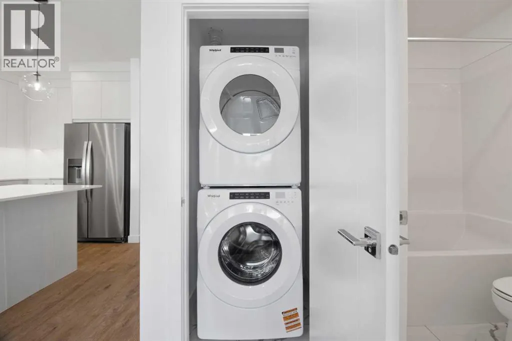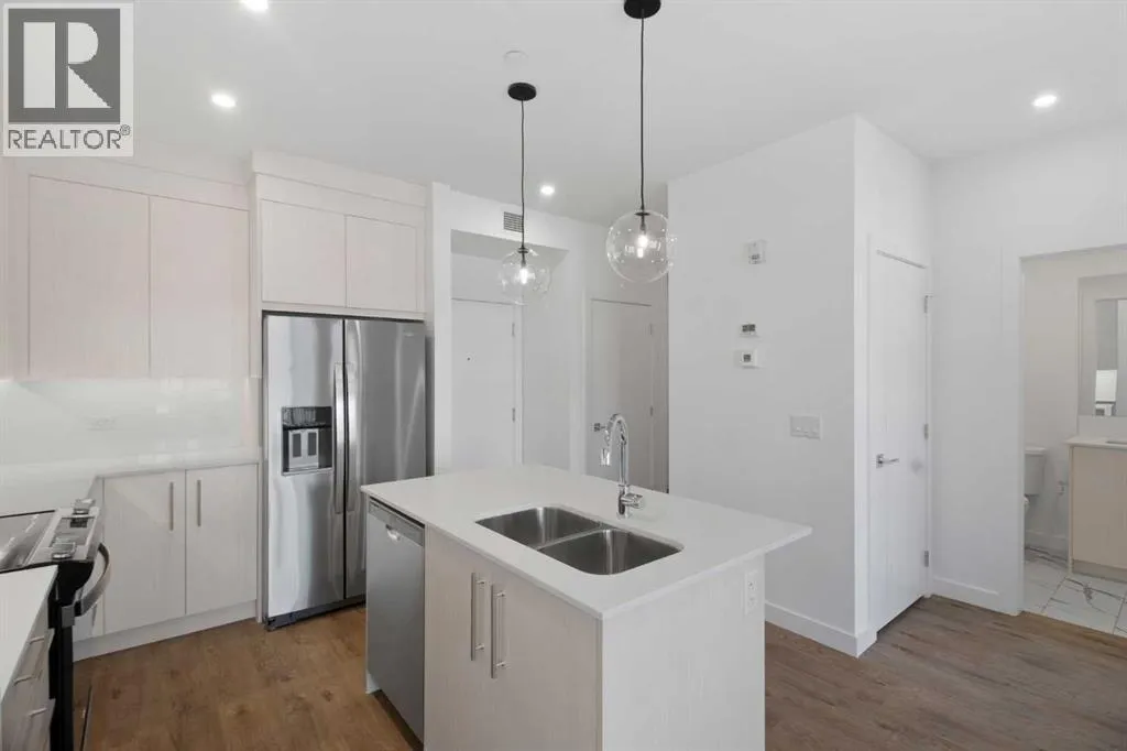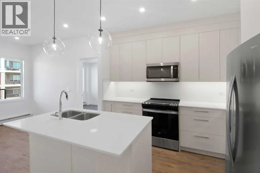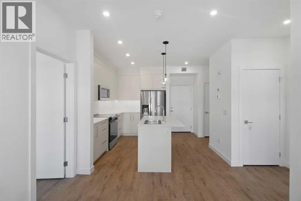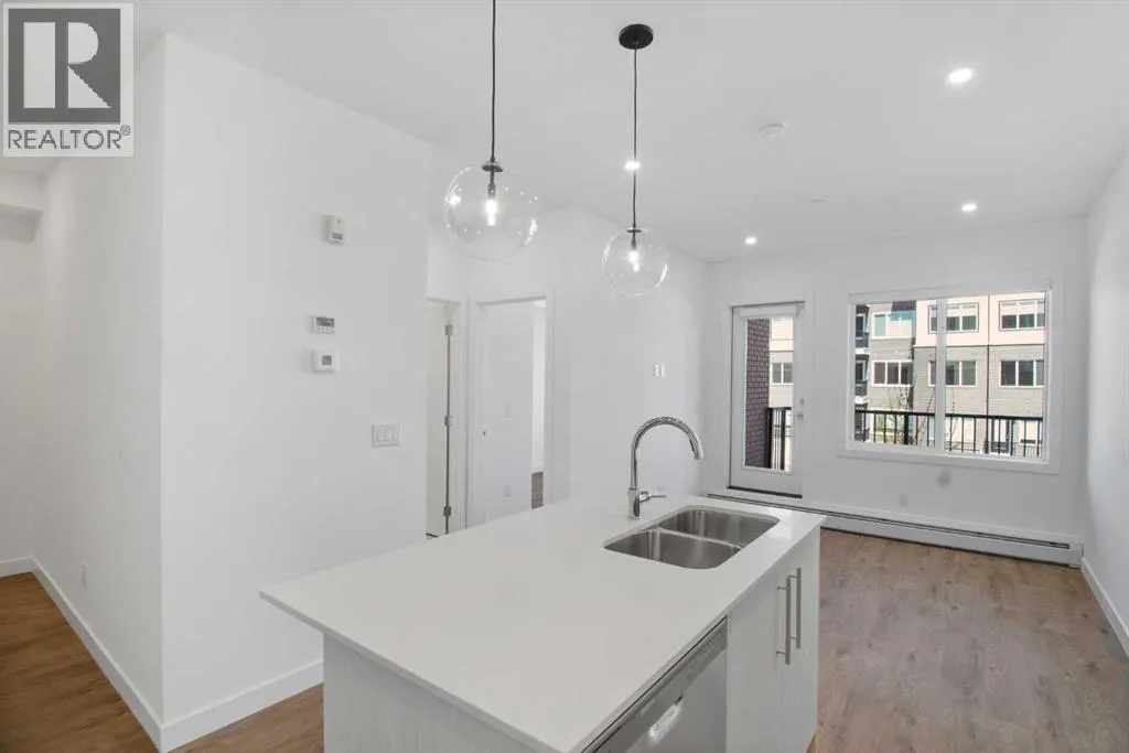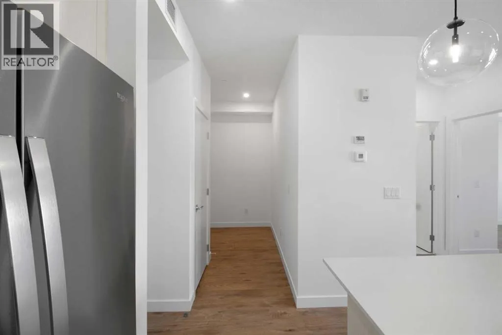 Welcome to this BRAND NEW, never-lived-in 2-bedroom, 2-bathroom condo with a den and 2 TITLED PARKING STALLS, ideally located in the vibrant lake community of Chelsea, Chestermere. Built by TRUMAN, this modern home offers a seamless blend of contemporary design, smart functionality, and everyday comfortâperfect for first-time buyers, downsizers, or investors. Enjoy the lake lifestyle just minutes from Chestermere Lake, featuring beach access, a boat launch, scenic walking paths, parks, and playgrounds. Everyday conveniences are close by, with Chestermere Station and Chestermere Crossing nearby, plus the added benefit of being just a 5-minute drive to EAST HILL Shopping Centre, home to Costco, Walmart, a cinema, and a wide variety of shopping and dining options.Inside, the open-concept layout is bright and inviting, featuring a versatile den ideal for a home office or flex space. Premium finishes include luxury vinyl plank flooring, soaring ceilings, and a chef-inspired kitchen with full-height cabinetry, soft-close drawers, quartz countertops, stainless steel appliances, a pantry, and a large eat-up islandâperfect for casual dining or entertaining.The spacious primary bedroom offers a walk-through closet and a private 3-piece ensuite, while a second bedroom, a full 4-piece main bath, and in-suite laundry complete the thoughtfully designed floor plan.Residents of Lockwood enjoy exclusive access to a fully equipped fitness centre, a stylish ownersâ lounge, and convenient bike storageâsupporting an active and connected lifestyle.Bright, modern, and truly move-in ready, this never-occupied home delivers small-town lake living with big-city convenienceâjust minutes from Calgary.Live better. Live Chelsea. (id:27476)
