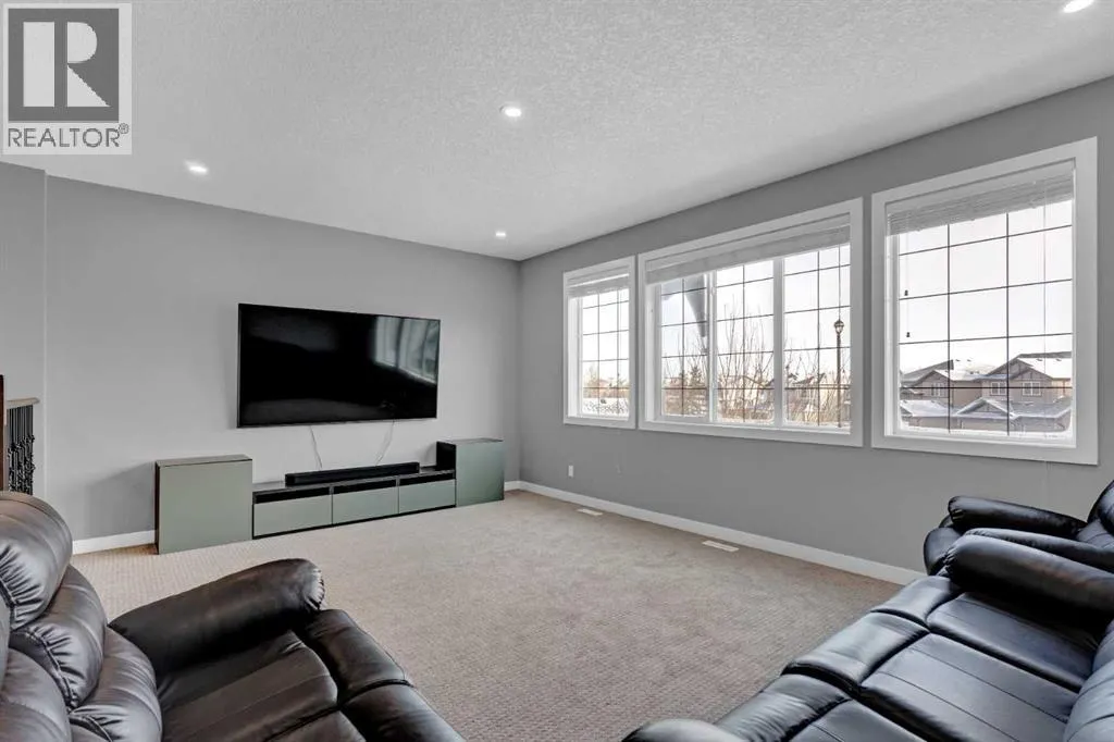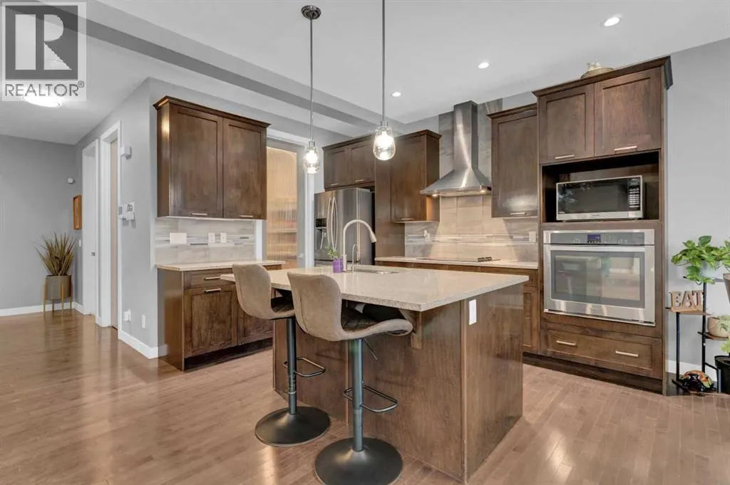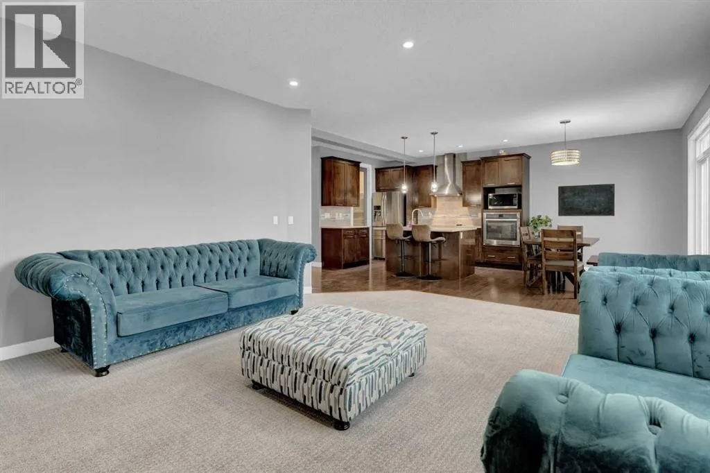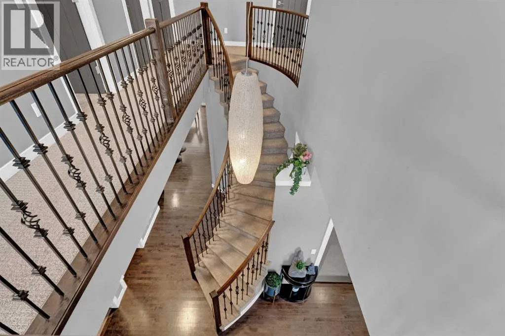 Best deal in Chestermere and Pride of Ownership in every step to and inside this fully detached home sitting on a traditional lot at one of the most desirable courts, near McIvor terr playground, the very popular Chestermere lake, Lakeside Golf Club and much more. Pull up to the deep and double wide driveway leading to the attached front double garage to park your toys and store backyard supplies. Come on inside through a wide main entrance door and you will be greeted by open to above spiral staircase and a private home office. Walk further on the gleaming hardwood floors and observe 9ft ceilings plus 8ft tall doors through the hallway into a stylish kitchen showcasing a large kitchen island, stone countertops, glass cooktop, stainless steel appliances and a walk through pantry. Across, there's a huge living room that can easily seat large gatherings and a dining area that overlooks the massive deck in the backyard rearing onto a pathway. Upstairs this home is a great example of thoughtfulness for everyday practical lifestyle. Master retreat features a 5pc ensuite leading into walk-through closet that further leads into a private entrance to laundry room besides its 2nd common entrance. Other two generous sized secondary bedrooms come with large double closets and a 4 pc common bath. The Family / bonus room upstairs is a large open space for large families to get together and cherish memorable moments. Downstairs-Unfinished Basement is a large unspoilt area that the next buyers can finish as they wish or use it as-is for gym equipment or games area, as they make this house their home. (id:27476)