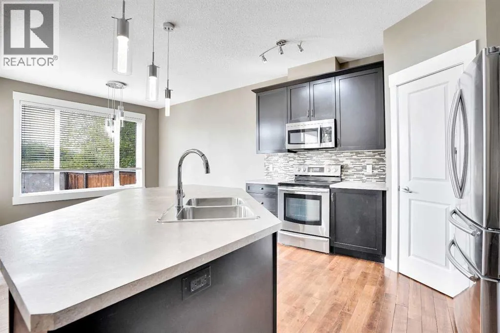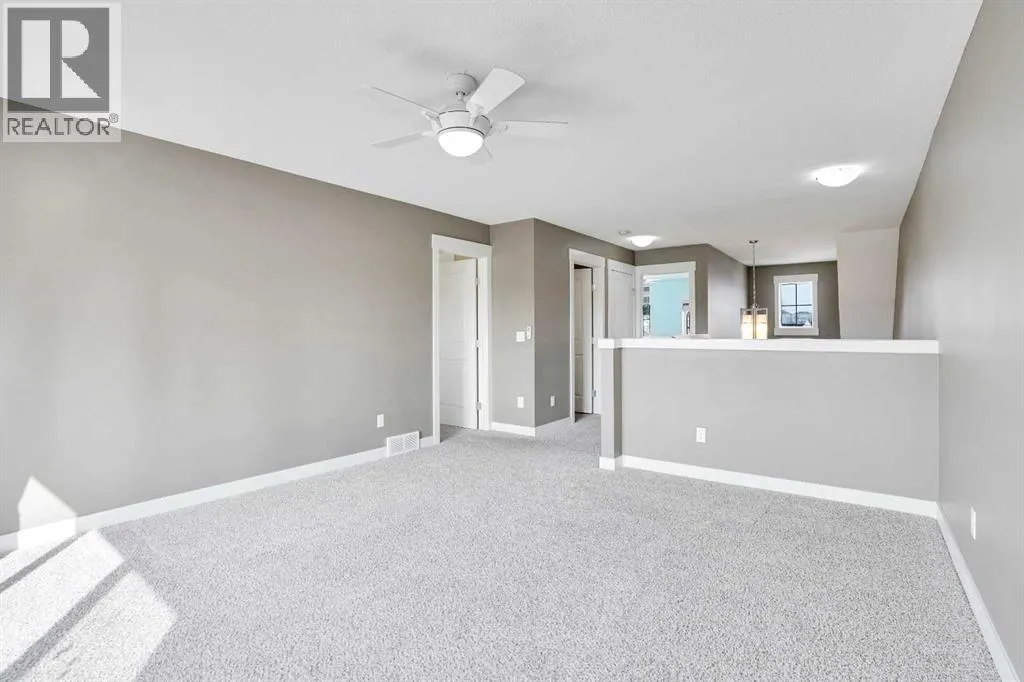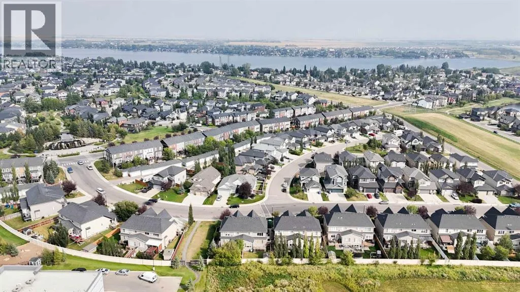 2 Primary Bedrooms upstairs | 1 Bedroom Finished Basement | Backs onto Green Space | Central Air. Welcome to this gorgeous front-drive semi-detached home in the highly desirable community of Rainbow Falls, Chestermere. Combining timeless design with modern upgrades, this property offers an exceptional layout and unbeatable locationâperfect for families, professionals, or anyone looking to enjoy a vibrant community with city convenience. The main floor impresses with soaring ceilings and an open-concept design that creates a bright, airy atmosphere. A spacious living room with a cozy fireplace sets the stage for relaxation, while the dining area easily accommodates family meals and gatherings. The upgraded kitchen features stainless steel appliances, sleek cabinetry, and plenty of counter space, making it a chefâs delight. A convenient 2-piece bathroom completes the main level. Upstairs, youâll find two generously sized primary suites, each with its own 4pc private ensuiteâideal for multi-generational living, guests, or roommates. A large bonus area adds flexibility, whether you need a family room, home office, or entertainment space. The fully finished basement extends your living space with a versatile den, additional bedroom, recreation room, 3pc bathroom, and storage. Itâs a perfect retreat for teens, guests, or hobby enthusiasts. Step outside to enjoy the private, fully fenced backyard featuring a spacious deck thatâs perfect for summer barbecues and outdoor relaxation. Backing directly onto green space, this home offers both privacy and a peaceful natural viewâan ideal setting for everyday living. With fantastic curb appeal, central air conditioning, a double attached front-drive garage, and proximity to two excellent schools, No Frills, parks, and Chestermere Lake, this property delivers the lifestyle youâve been searching for. Donât miss your chance to call this Rainbow Falls beauty your next home. Book your private showing today! (id:27476)