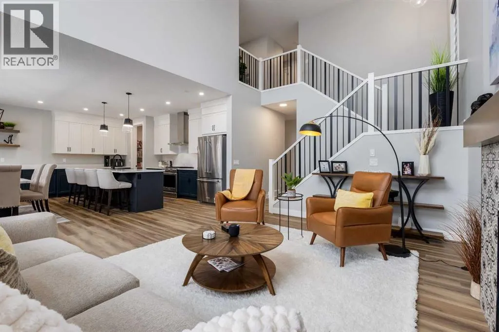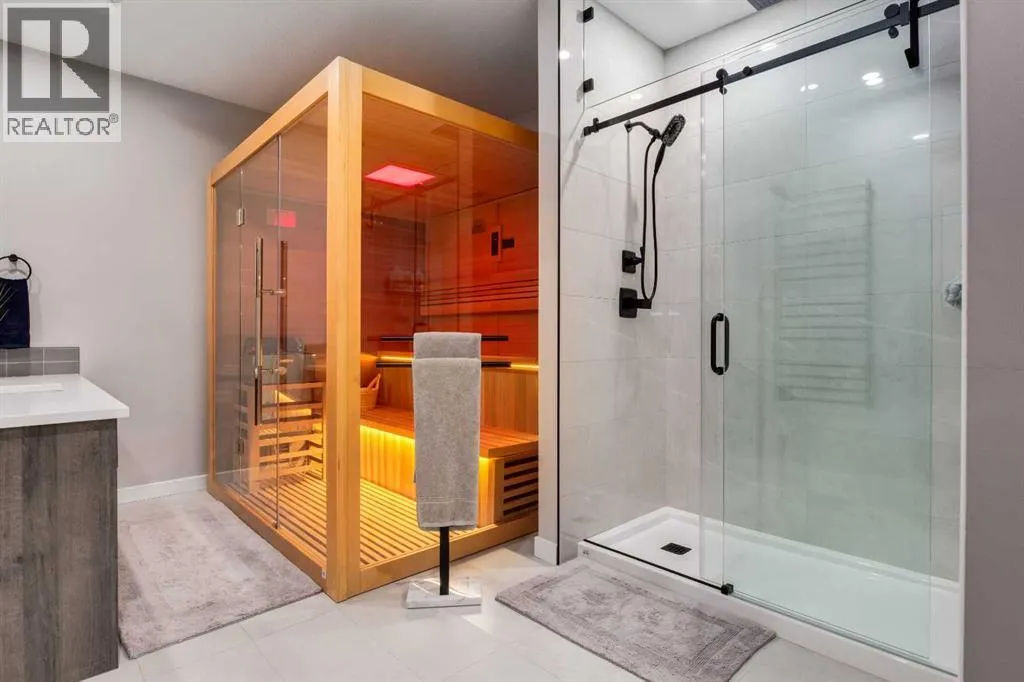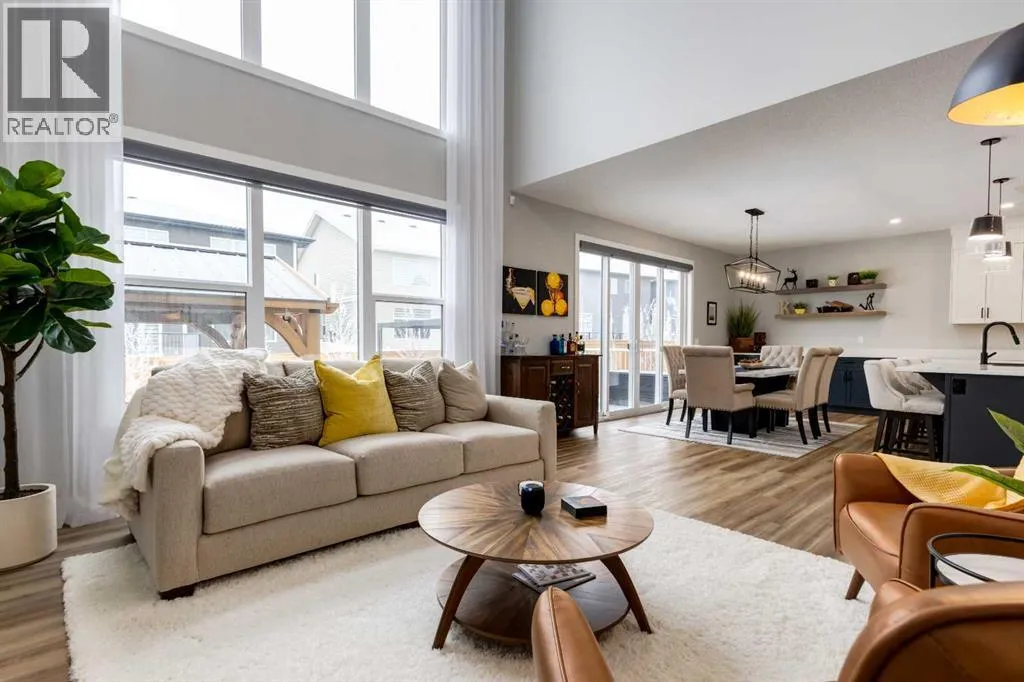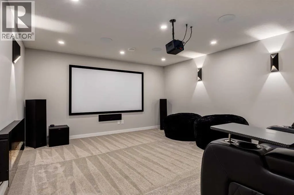 From the moment you arrive at this quiet cul-de-sac in South Shores, there is a sense of calm, privacy, and understated luxury. This remarkable two-storey residence offers over 4,200 Square Feet of professionally finished living space, where every detail has been carefully considered and impeccably maintained. Set within an upscale community in Chestermere, the home enjoys quick access to Calgary via Glenmore Trail, while nearby walking paths along the canal invite daily moments of connection to nature. The west-facing backyard is a true retreat, fully fenced and thoughtfully designed for effortless enjoyment. Two gazebos, a hot tub, and low-maintenance landscaping create an outdoor environment that feels both private and inviting, perfect for quiet evenings or memorable gatherings as the sun sets.Inside, the home is pristine and beautifully appointed. The main level is warm and welcoming, designed for both everyday living and entertaining. A spacious kitchen anchors the space, showcasing a stainless steel appliance package with gas range, expansive two-tone cabinetry, a large centre island with seating, and huge walk-in pantry. The open living room is filled with natural light and anchored by a gas fireplace, while the dining area flows seamlessly onto the deck and backyard beyond. A main floor office provides a refined work-from-home space, complemented by a bedroom and three-piece bath ideal for guests or multigenerational living. Direct access from the triple attached garage leads into a functional mudroom, enhancing daily convenience.Upstairs, the home continues to impress with a generous bonus room, a dedicated laundry room, and three well-proportioned bedrooms, each with its own walk-in closet. The primary suite is a private sanctuary, featuring a luxurious five-piece ensuite and an expansive walk-in dressing room. A second five-piece bathroom serves the additional bedrooms with ease.The fully finished lower level elevates the lifestyle experience even f urther. A private gym with mirrored walls, rubber flooring, pot lighting, and included equipment offers a professional fitness experience at home. Movie nights become an event in the theatre room, complete with projector, screen, sound system, and plush leather recliners. A spa-inspired three-piece bath with electric sauna and double-wide shower, along with ample storage and utility space, completes this exceptional level.Central air conditioning, automated blinds, and flawless condition throughout reflect the care and quality invested in this home. Sophisticated, comfortable, and truly move-in ready, this is a residence that delivers an elevated way of living and will impress even the most discerning buyer. (id:27476)