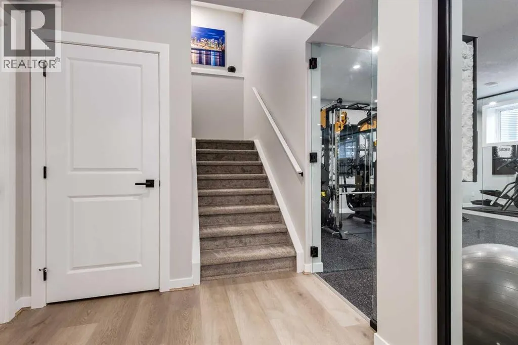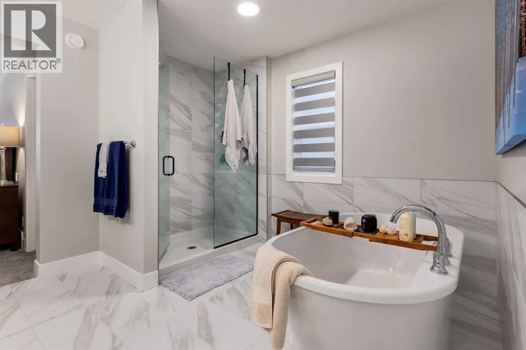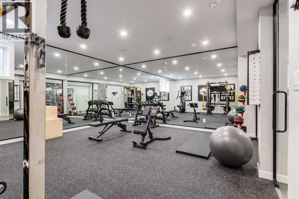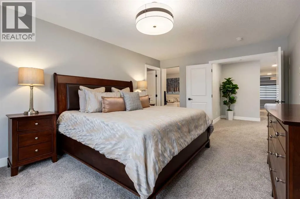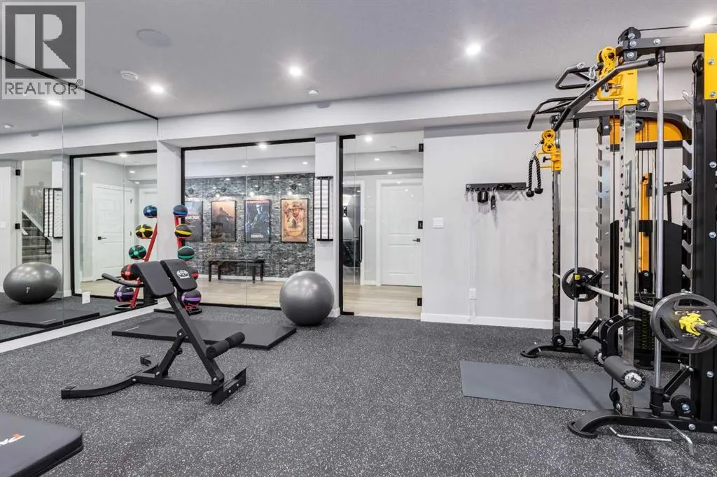 From the moment you arrive at this quiet cul-de-sac in South Shores, there is a sense of calm, privacy, and understated luxury. This remarkable two-storey residence offers over 4,200 Square Feet of professionally finished living space, where every detail has been carefully considered and impeccably maintained. Set within an upscale community in Chestermere, the home enjoys quick access to Calgary via Glenmore Trail, while nearby walking paths along the canal invite daily moments of connection to nature. The west-facing backyard is a true retreat, fully fenced and thoughtfully designed for effortless enjoyment. Two gazebos, a hot tub, and low-maintenance landscaping create an outdoor environment that feels both private and inviting, perfect for quiet evenings or memorable gatherings as the sun sets.Inside, the home is pristine and beautifully appointed. The main level is warm and welcoming, designed for both everyday living and entertaining. A spacious kitchen anchors the space, showcasing a stainless steel appliance package with gas range, expansive two-tone cabinetry, a large centre island with seating, and huge walk-in pantry. The open living room is filled with natural light and anchored by a gas fireplace, while the dining area flows seamlessly onto the deck and backyard beyond. A main floor office provides a refined work-from-home space, complemented by a bedroom and three-piece bath ideal for guests or multigenerational living. Direct access from the triple attached garage leads into a functional mudroom, enhancing daily convenience.Upstairs, the home continues to impress with a generous bonus room, a dedicated laundry room, and three well-proportioned bedrooms, each with its own walk-in closet. The primary suite is a private sanctuary, featuring a luxurious five-piece ensuite and an expansive walk-in dressing room. A second five-piece bathroom serves the additional bedrooms with ease.The fully finished lower level elevates the lifestyle experience even f urther. A private gym with mirrored walls, rubber flooring, pot lighting, and included equipment offers a professional fitness experience at home. Movie nights become an event in the theatre room, complete with projector, screen, sound system, and plush leather recliners. A spa-inspired three-piece bath with electric sauna and double-wide shower, along with ample storage and utility space, completes this exceptional level.Central air conditioning, automated blinds, and flawless condition throughout reflect the care and quality invested in this home. Sophisticated, comfortable, and truly move-in ready, this is a residence that delivers an elevated way of living and will impress even the most discerning buyer. (id:27476)