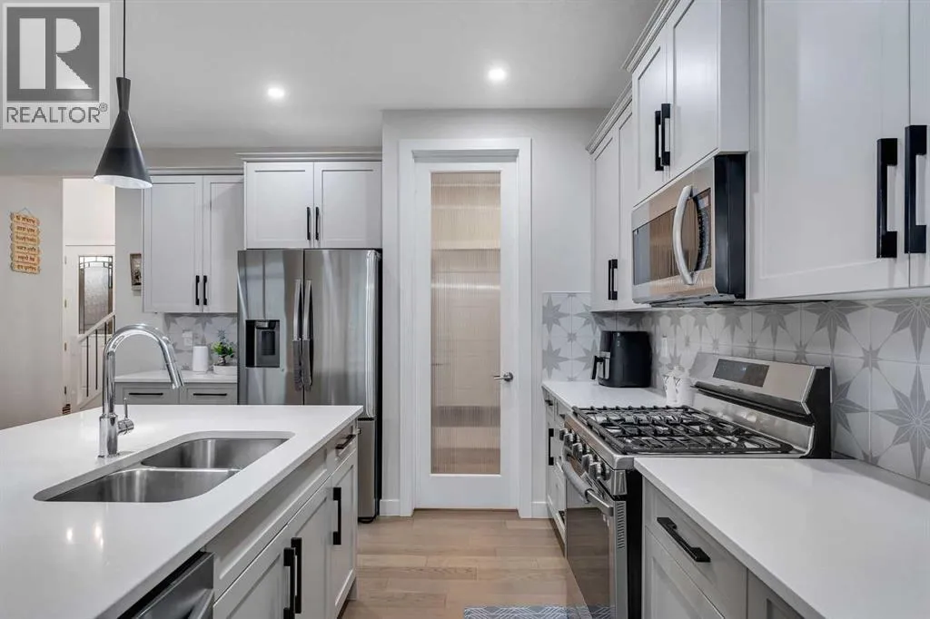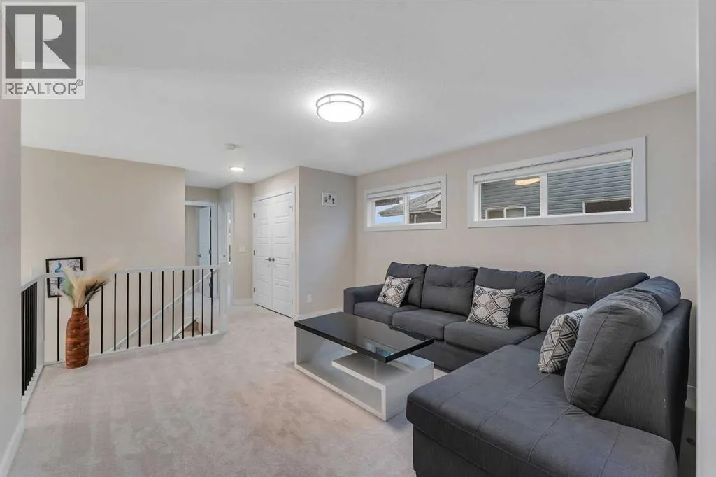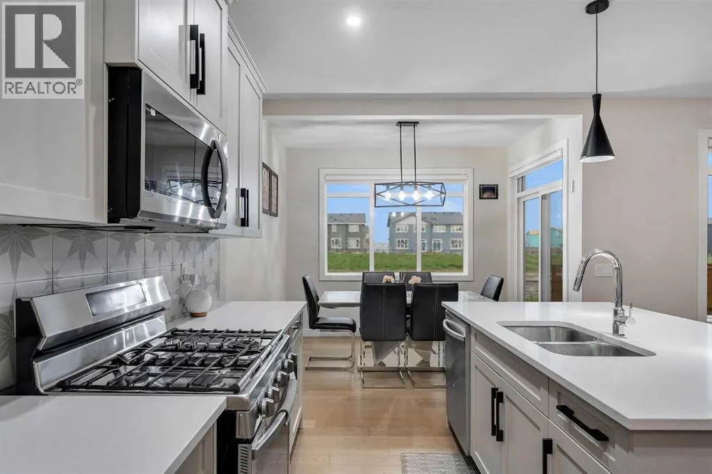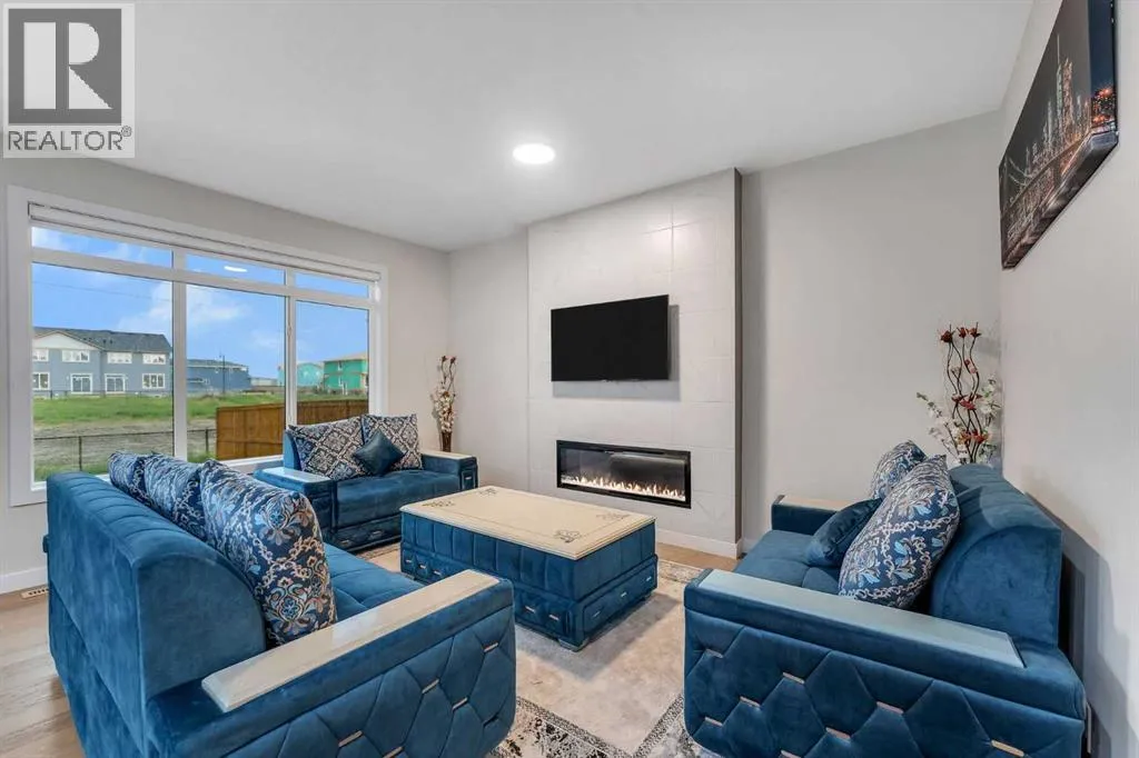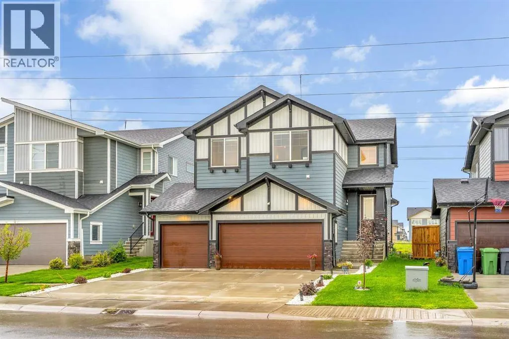 TRIPLE CAR GARAGE | GREEN SPACE | LAKESIDE LIVING | HARDWOOD FLOORS | HARDIE BOARD EXTERIOR | Welcome to your dream home in the sought-after community of Waterford, Chestermere! This beautifully upgraded home offers the perfect blend of functionality, style, and comfort â complete with a rare triple car garage featuring soaring high ceilings, ideal for car lovers, extra storage, or even a workshop.Backed by lush greenspace and flooded with natural light, this home invites you in through a spacious foyer adorned with elegant wrought iron railings and a custom built-in bench â the perfect spot to welcome guests or settle in after a long day.The heart of the home features a cozy living room with tiled accents and a striking fireplace, ideal for family movie nights or quiet evenings in. The chef-inspired kitchen boasts an abundance of cabinetry, a generous pantry, stainless steel appliances, and a stunning quartz island that invites conversations over coffee or weekend baking with loved ones. Just off the kitchen is the bright and airy dining room, framed by a large window that overlooks the sun-soaked backyard â perfect for summer BBQs, kids playing, or unwinding with a glass of wine. This floor is further completed by a 2 piece bathroom for added convenience. Conveniently located off the kitchen, the mudroom keeps life organized with direct access to the spacious triple garage. Upstairs, discover a thoughtfully designed layout featuring three bedrooms, including a massive primary retreat with a luxurious 5-piece ensuite and a generous walk-in closet. A 4-piece bathroom and dedicated laundry room add everyday ease.The open-to-below concept adds a dramatic, airy feel throughout the home, letting light flow effortlessly from floor to floor. The unfinished basement offers endless potential â whether you envision a home theatre, gym, or extra bedrooms, the space is yours to create.Located just minutes from the lake, scenic walking paths, playgrounds, and nearby shopping plazas, and with quick access to 17 Ave and Stoney Trail, this home is perfectly positioned for both tranquility and convenience.Don't miss your chance to make this stunning property your forever home. Book your private showing today! (id:27476)