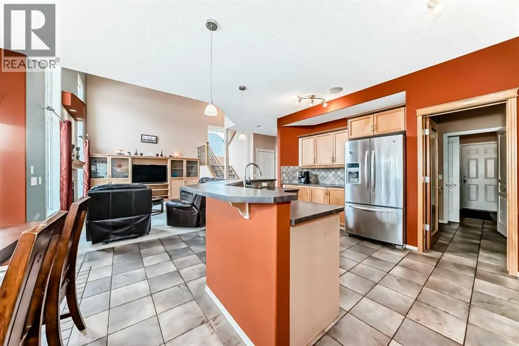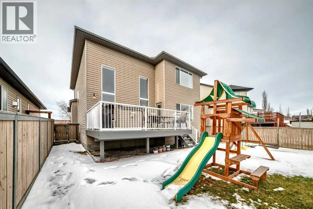WELCOME to our exceptionally well maintained FORMER SHOWHOME home that offers 3,628 ft² of living space, thoughtful upgrades, and a prime family-friendly location. Situated directly across the street from Prairie Waters Elementary School and St. Gabriel the Archangel Catholic School, the home enjoys immediate access to two highly regarded schools, expansive green space, playgrounds, and convenient Calgary Transit access, including the nearby Purple MAX bus stop.The bright, open main floor features vaulted ceilings, large windows, upgraded maple cabinetry, a spacious island with eating bar, a walk-through pantry, and a great room with gas fireplace and built-in bookcase. Main floor laundry, a mudroom with built-ins, and a two-piece powder room add everyday convenience. Upstairs includes three bedrooms, a vaulted bonus room, and a primary suite with a five-piece ensuite, soaker tub, and walk-in closet.The fully finished basement adds two additional bedrooms, a renovated four-piece bathroom, and two separate recreation areas. Youâll appreciate the comfort of air conditioning, underground sprinklers, and a fully finished heated double garage with radiant heat, workbench, and cabinetry. The backyard features a large deck, a parking pad ideal for an RV, and a powered 8x15 hobby shop with overhead door. A well-rounded home in a location that truly supports family living. (id:27476)