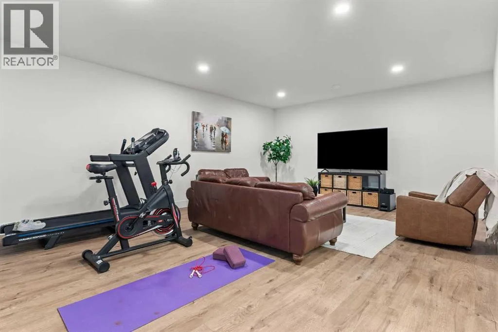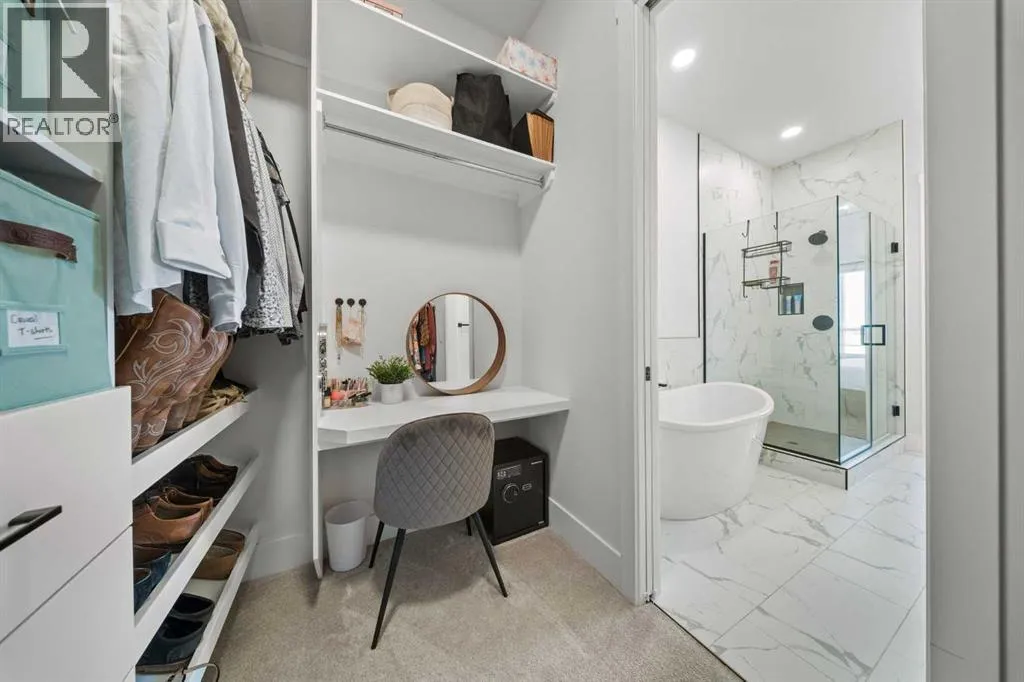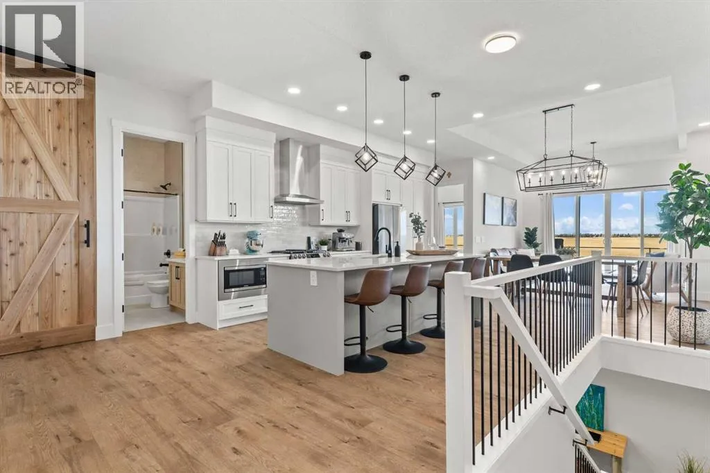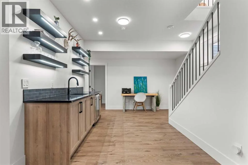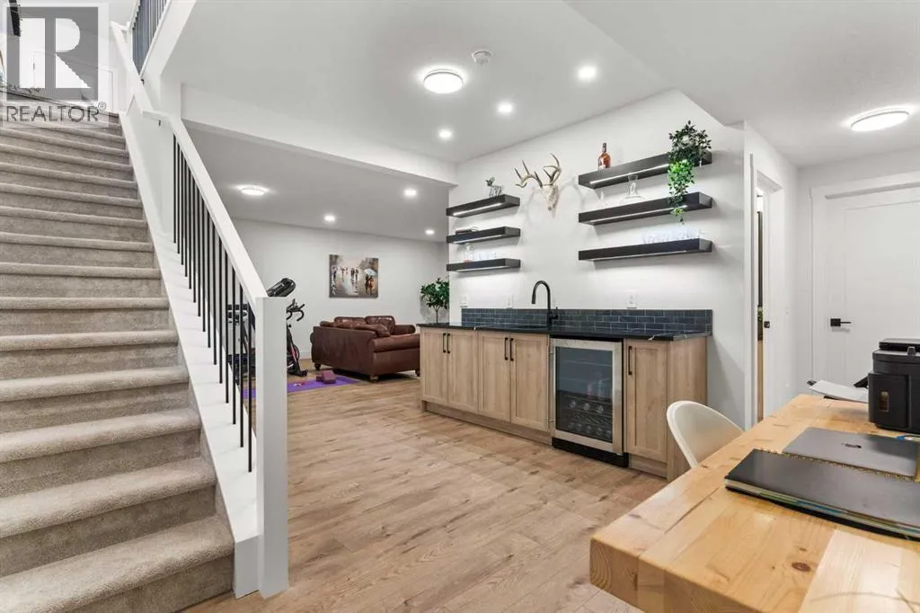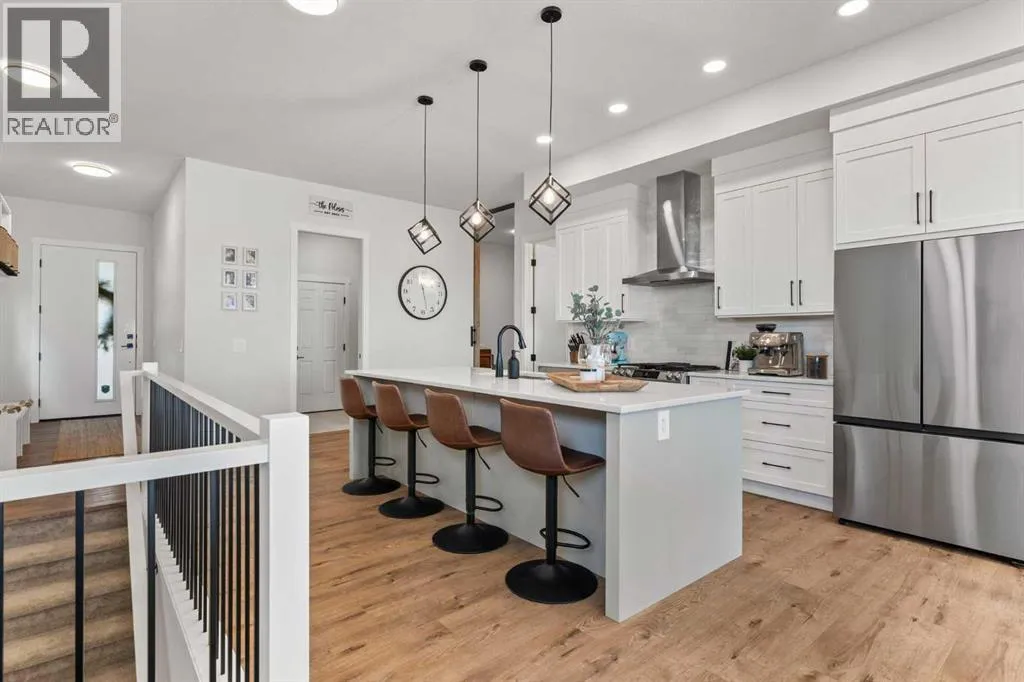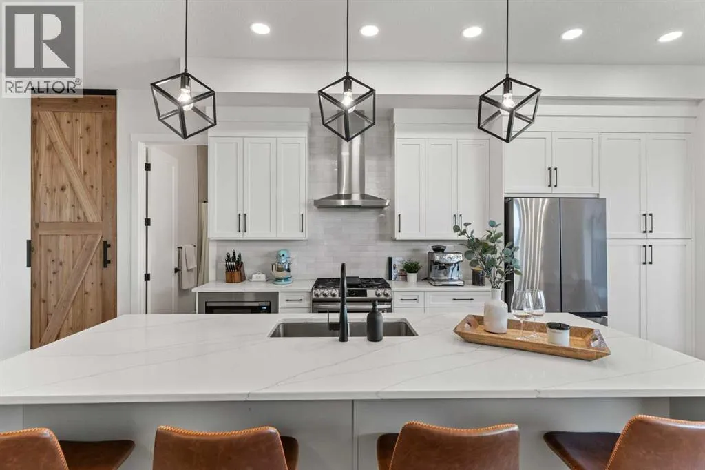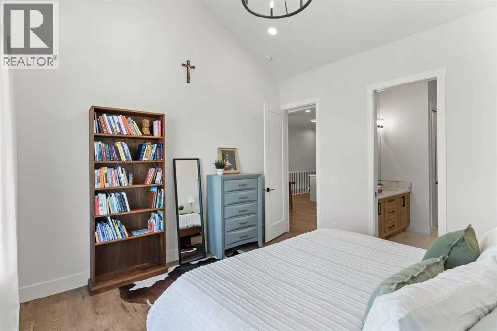 Welcome to extensively upgraded luxury bungalowâthis home has been enhanced beyond imagination, offering over 2,500 square feet of beautifully finished living space and the comfort of central air conditioning. Step inside through the front entrance to discover a refined main floor with soaring 10â ceilings that lead into a chef-inspired kitchen featuring a gas range, full-height chimney hood fan, quartz countertops, premium soft close cabinetry, and an upgraded pantry with sliding drawers. The space opens seamlessly to the living and dining area, where an 11â tray ceiling, cedar mantel, and gas fireplace create an elegant yet inviting focal point. The primary suite is a true retreat with a dramatic 13â vaulted ceiling, flowing into a spa-like 5-piece ensuite and a custom walk-in closet with built-in organizers. A stylish den or home office sits just off the main living space behind a striking 10â cedar barn door, complemented by a beautiful full bathroom. Convenience continues with a thoughtfully designed laundry room and mudroom with lots of storage. The oversized double garage features epoxy flooring, mezzanine storage, hot and cold hose bibs, and in-floor heating, extending the homeâs comfort and luxury beyond the interior. Completing the package is a true 9â basement with in-floor heating, wet bar, two bedrooms , full washroom, and cold storage. It doesnât stop with the interior- outside this home features Hardie Board siding, custom cedar gables and a fully equipped Eufy security system. This home is also fully landscaped with sodding and washed gravel fireplace and partially fenced. Its unbeatable location is close to schools, the golf course, scenic walking paths, and everyday shopping. (id:27476)