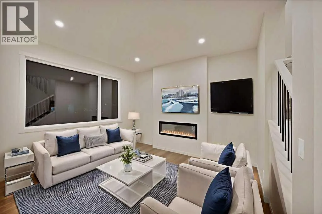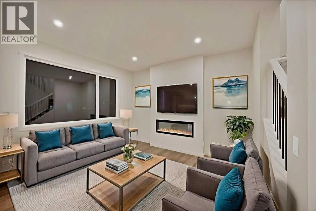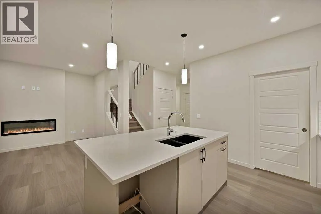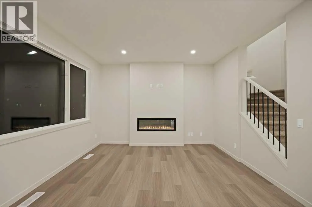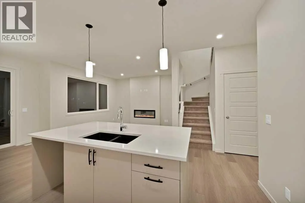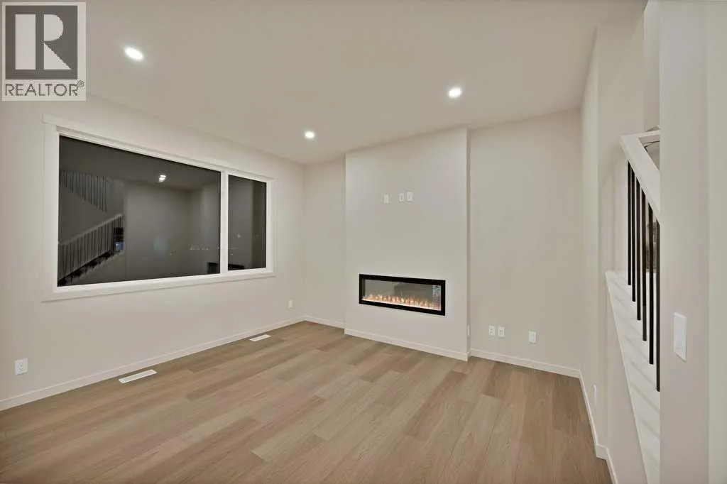 Welcome home to this stunning walkout duplex that perfectly blends modern elegance with functional design. This brand-new construction offers 1,565 square feet of meticulously crafted living space with an attached double front garage, set on a generous 3,579 square foot walkout lot that backs onto a beautiful greenspace with a pond. The main floor welcomes you with a spacious living area featuring an elegant electric fireplace, while a walkthrough pantry connects the mudroom to the gourmet kitchen. Here, stainless steel appliances, including a gas stove and chimney hood fan, shine under recessed lighting. The open-concept layout seamlessly integrates the kitchen, great room, and dining area, where large windows fill the space with natural light and create an inviting atmosphere for both everyday living and entertaining. Upstairs, the primary bedroom serves as a private retreat, complete with a luxurious four-piece ensuite and a sprawling walk-in closet that provides ample storage for your wardrobe essentials. Enjoy serene views of the pond and green space, with no adjoining backyard to interrupt the scenery. Two additional spacious bedrooms offer large windows framing picturesque views of the surrounding landscape. A conveniently located laundry room, equipped with a front-load washer and dryer, adds both comfort and practicality to your daily routine. (id:27476)