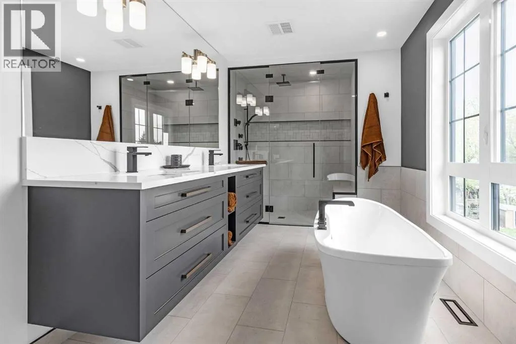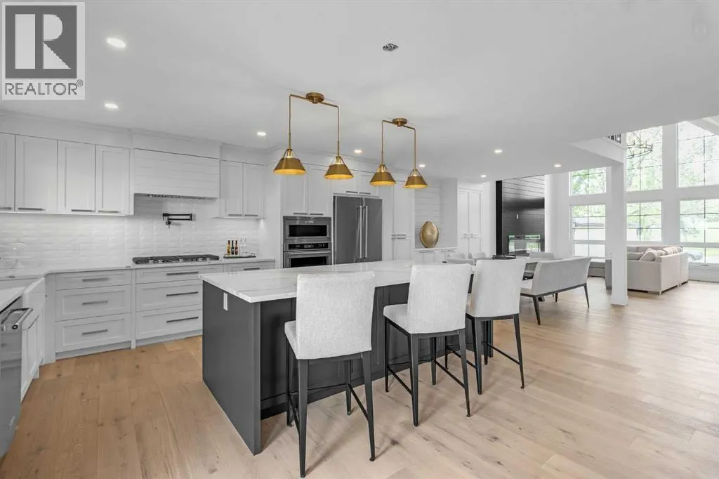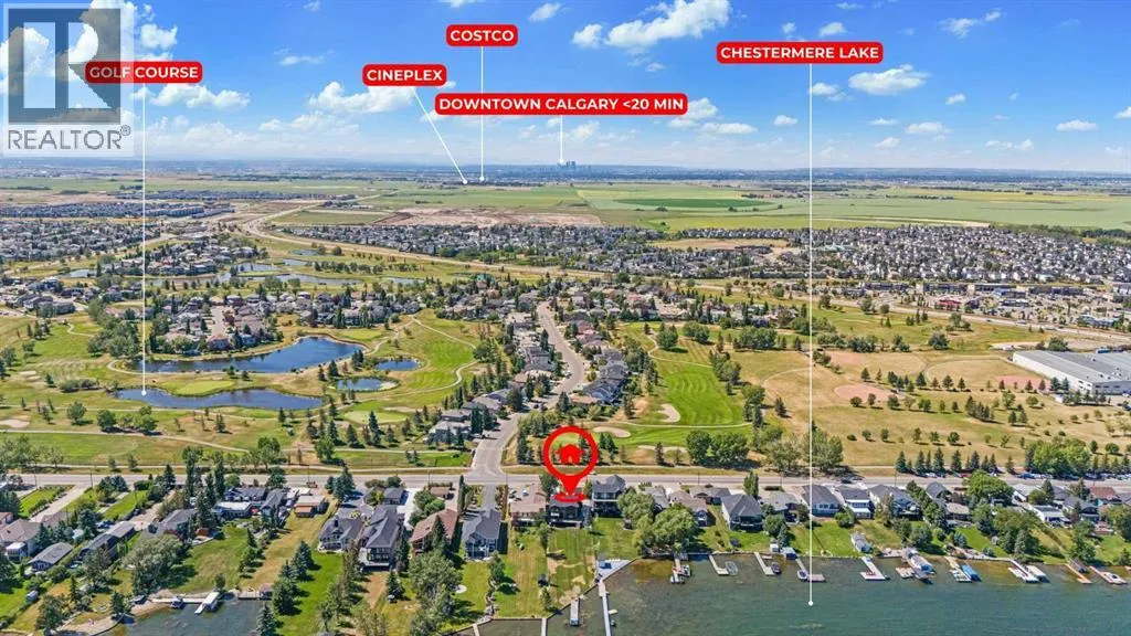 INSTANT EQUITY OF OVER 300K PLUS QUICK POSSESSION HOME !!! A CUSTOM DESIGNED LAKE FRONT MARVEL by SuiGeneris Homes! COMPLETELY RENOVATED DOWN TO THE STUDS WITH ALL NEW ELECTRICAL WIRING, PLUMBING, WINDOWS, SIDING, HUGE MAIN FLOOR DECK,MASTER SUITE PRIVATE LAKE FRONT DECK, Epoxy finish on garage floor. Oversized 2 car garage with epoxy floors, NEW FLOORING, NEW GARAGE DOOR, NEW HVAC, ALL NEW ROOFING, WINDOWS, DOORS, SPRAY FOAM INSULATION THROUGHOUT THE HOUSE AND MORE! COMPLETED WITH A NEW FLOOR PLAN AND ADDITION TO THE HOUSE. Sitting on a HUGE LOT THAT IS RIGHT ON THE LAKE with over 4,200 sq ft of living space. This well planned floor plan offers 5 Beds, 1 flex area, 5.5 baths & an attached OVERSIZED 2 car Garage. 3 ENSUITE BEDROOMS!!! ONLY 10 MINUTES TO/FROM CALGARY. The professionally designed interior is an elegant balance of light tan hardwood floors with white and grey walls and black finishing. The combination of Large windows and Vaulted ceilings in the living areas and bedrooms give lots of natural light to the living areas. In addition to the lake views, enjoy the views of the golf course from 2 bedrooms and a loft on the upper floor. Other features include Paved, drive through driveway, rich combination of Smooth Acrylic Stucco, stone & batten boards on exterior, Custom Cold Air Return Grills, Built in custom closet systems, ship lap feature walls, 2 fire places on main floor and one in master bedroom, Roughed-in Smart monitoring systems, Hardwood Flush Mount Vents in hardwood areas, open riser stairs, 5â Engineered Hard Wood on main floor, LVP basement floors and mudroom, premium carpet, Custom Shower Base with tile to ceilings in all showers, Premium Delta Plumbing package, 36â lower cabinets. All vanities have upgraded drawer style fronts, 8â Stone back splash, High efficiency Tankless Water Heater, Roughed-in Garburator, roughed-in Central Vacuum, High Efficiency Furnace & Smart Thermostat, BBQ Gas line and roughed in garage heater. The kitchen feat ures include a deluxe Kitchen Aid appliance package with waterline to the fridge. Offering Quick and easy access to highway 16, Downtown Calgary, lots of shopping at the nearby East Hills Mall, restaurants, nearby schools and other conveniences. Drive through drive way with fully completed landscaping. MOVE IN READY HOME. READY FOR QUICK POSSESSION (id:27476)