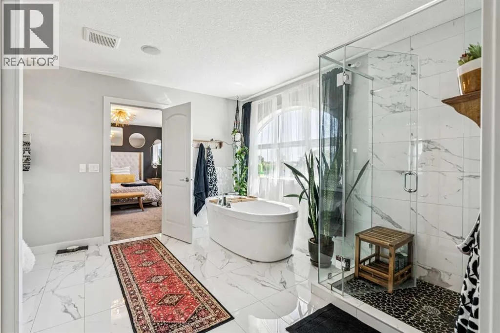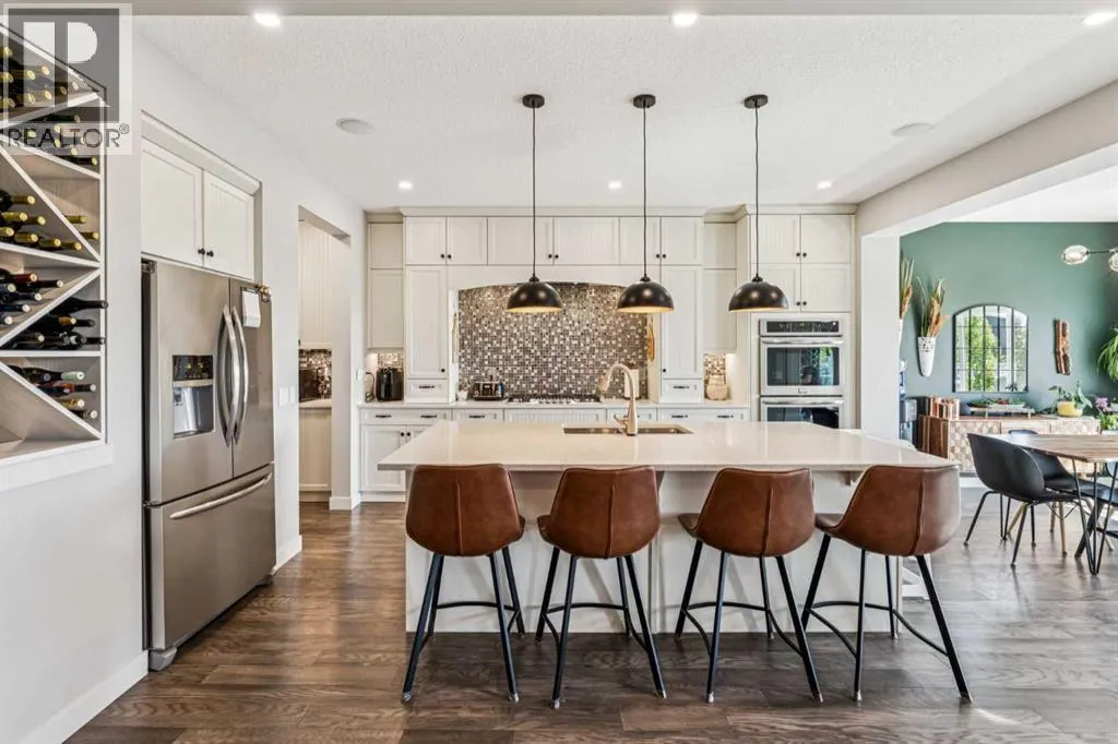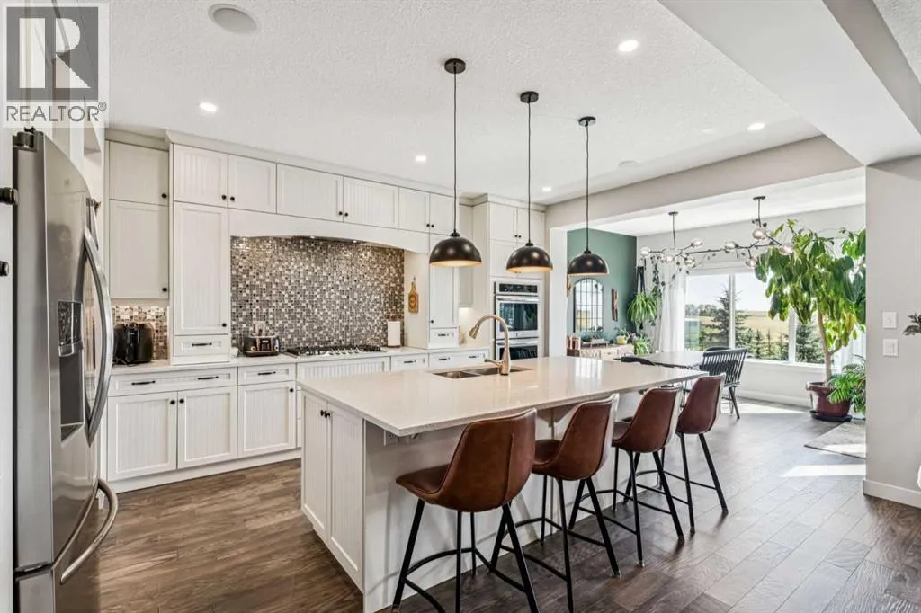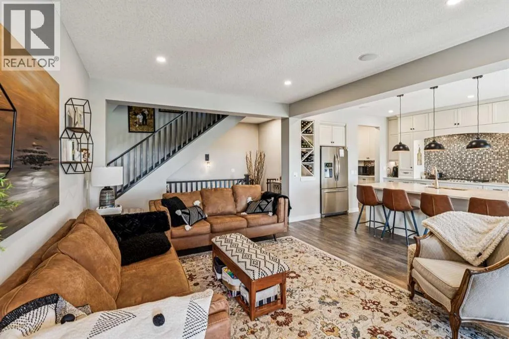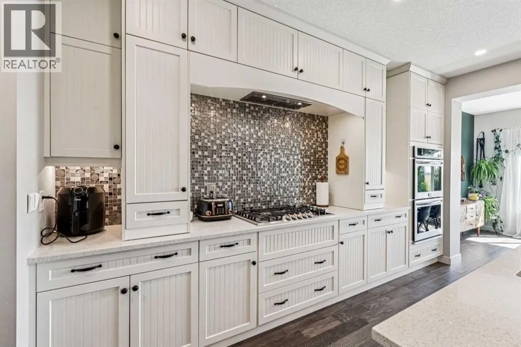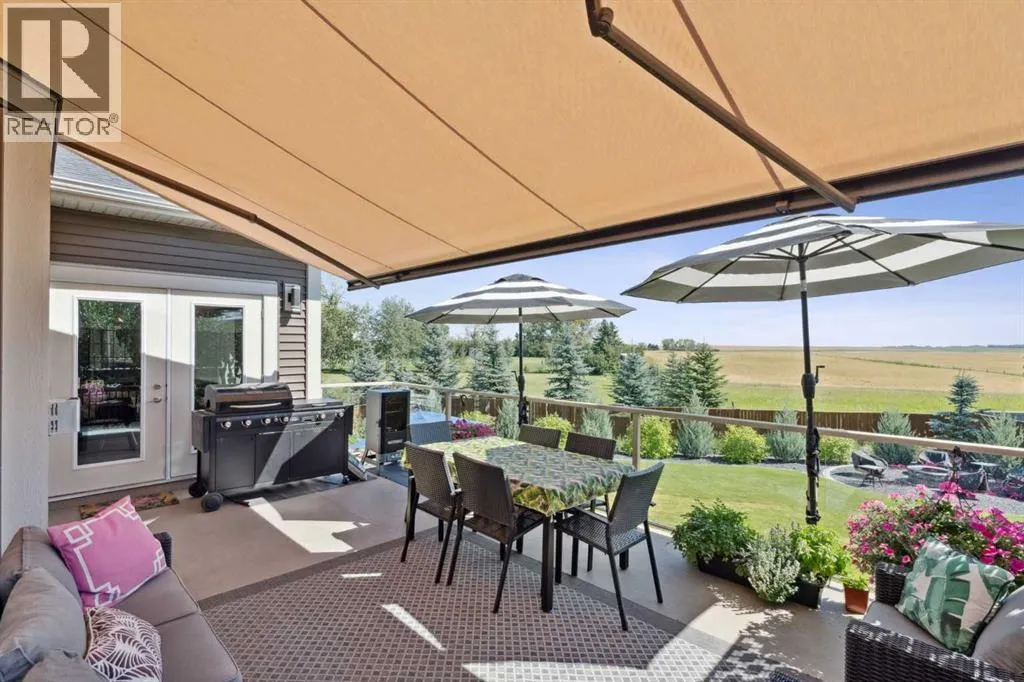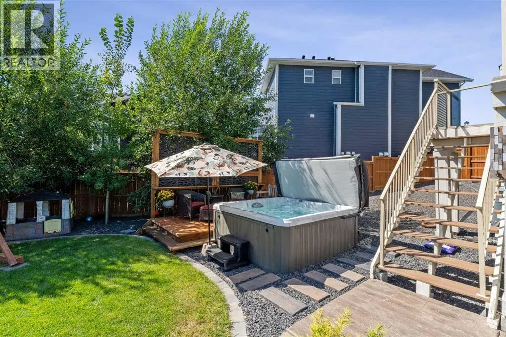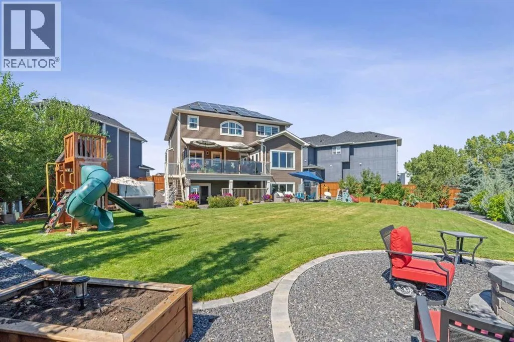 Step into this beautifully designed home through a bright and inviting foyer, featuring modern light fixtures and ample closet spaceâsetting the stage for the sophistication found throughout this SOLAR POWERED home.Just off the main entry, you'll find a well-appointed half bath and a versatile flex roomâideal as a home office, playroom, or guest suite.The open-concept main living area is designed for both entertaining and everyday comfort. The spacious family room flows seamlessly into the dining area and showstopping kitchen, all framed by large windows that capture stunning prairie views.The gourmet kitchen features dual ovens, a 5-burner gas cooktop, sleek countertops, elegant backsplash, and ample prep and storage space. A dedicated nook offers the perfect setup for a coffee bar or extra appliances. A gas line is ready for outdoor grilling on the upper deck, which includes a retractable awning for shade and comfort.Off the kitchen, a large mudroom with custom built-ins leads to a generous 3-car garageâkeeping life organized and efficient.Upstairs, youâll find four bright and spacious bedrooms. One includes a built-in Murphy bed for added flexibility. A vaulted-ceiling bonus room provides the perfect space for movie nights, gaming, or a quiet retreat.The luxurious primary suite overlooks uninterrupted prairie views with no rear neighbors. The spa-inspired ensuite features a soaking tub, dual vanities, a large glass shower, and tile finishes. A massive walk-through closet connects directly to the upstairs laundry room for maximum convenience.The finished lower level has been extensively renovated to add a fully legalized in-law suite that expands your living space with a cozy sitting area and fireplace, a second kitchenâideal for multi-generational living or guestsâa large bedroom, and a full bathroom with custom walk-in closet. A second laundry area with stacked washer and dryer adds extra practicality.In-ceiling speakers throughout the home and o utdoor areas create the perfect ambiance for entertaining. Step out onto the beautifully landscaped yard, complete with irrigation system and four raised garden beds. Five unique outdoor seating areas, including a fire pit space, make this backyard ideal for gatherings, relaxing, or play.A charming playhouse and hot tub (both negotiable) offer even more ways to enjoy this incredible outdoor retreat.This exceptional home combines thoughtful design, high-end finishes, and unmatched comfortâinside and out. Come experience the perfect blend of elegance, space, and functionality. (id:27476)