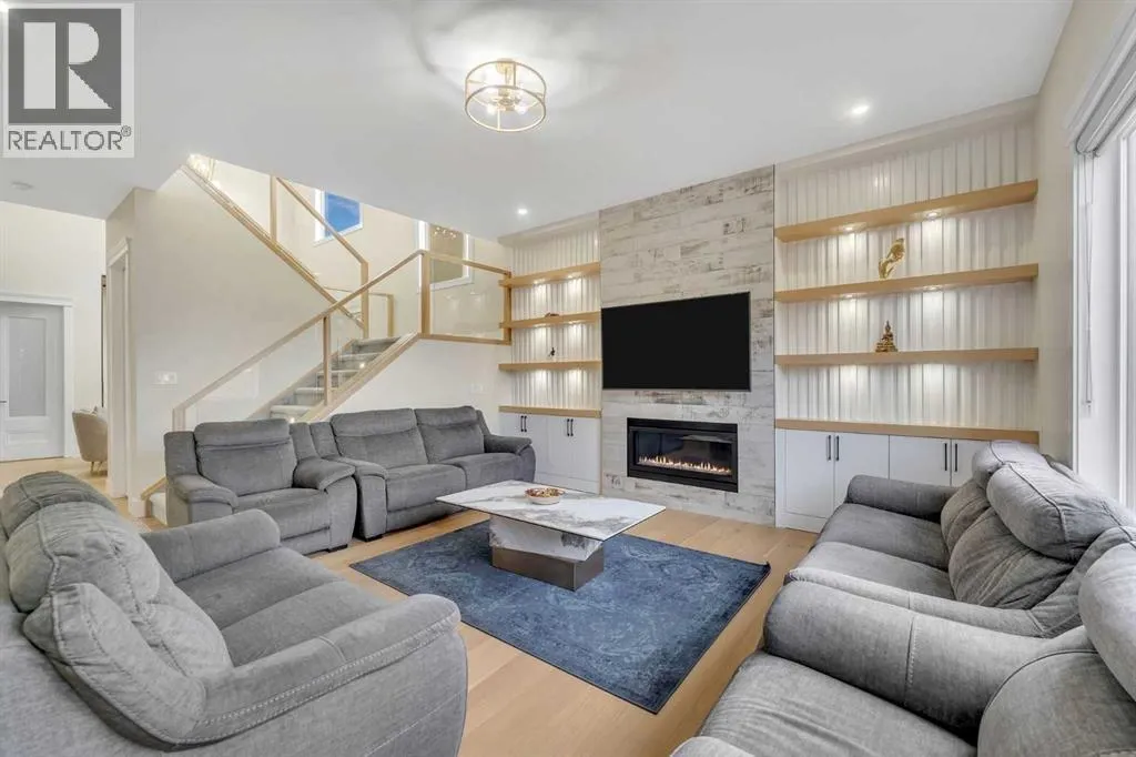 Waterford Estates â ChestermereHigh-End Upgrades | Triple Attached GarageLuxury 2-Storey Home7 Bedrooms | 5 Full Bathrooms3,356 SQ. FT. Above Grade~4,200 SQ. FT. Total Living Space (Including Basement)This stunning home in the prestigious Waterford Estates community offers an exceptional blend of luxury, space, and thoughtful design. With premium finishes throughout and a layout ideal for large or multi-generational families, this property delivers comfort and craftsmanship in every detail.Main Floor Featuresâ¢Impressive 10 ft ceilings with dramatic open-to-above designâ¢Spacious living room, family room, and formal dining areaâ¢Chef-inspired kitchen with upgraded appliances and a wet barâ¢Walkthrough spice kitchen with direct access to mudroom and triple attached garageâ¢Flex room ideal as a bedroom or home officeâ¢Full 3-piece bathroomUpper Levelâ¢4 spacious bedrooms, each with its own walk-in closetâ¢Two primary bedrooms, both featuring private ensuitesâ¢One primary showcases a stunning 4-way vaulted ceilingâ¢Bright bonus room with elegant tray ceilingâ¢Convenient laundry room with built-in cabinetry and sinkâ¢Open-to-below layout keeps the home bright and airyBasementâ¢Finished / under construction with high-end finishesâ¢All work completed according to City of Chestermere guidelinesâ¢All required permits appliedâ¢Brings total living space to approximately 4,200 SQ. FT.Upgrades & Extrasâ¢Fully fenced yardâ¢Exterior lighting packageâ¢Built-in speakersâ¢Custom blinds throughoutâ¢Water filtration systemâ¢Water softenerLot & Locationâ¢Large 52 ft à 110 ft lotâ¢Located in the desirable Waterford Estates communityâ¢Close to schools, parks, pathways, shopping, and all of Chestermereâs amenities (id:27476)