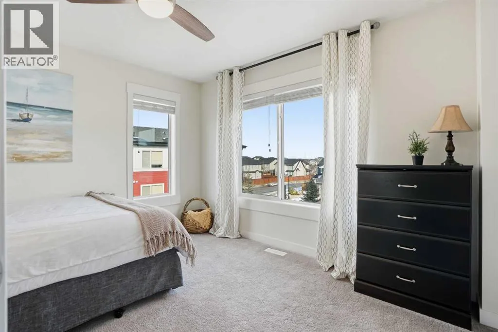 Welcome to this beautifully maintained 2-bedroom end-unit townhome located in the highly desirable community of Rainbow Falls in Chestermere.The private front patio is the perfect place to enjoy your morning coffee or unwind in the evening. Upon entry, youâll find a versatile bonus room ideal for a third bedroom, home office, or fitness spaceâflexible living designed to suit your lifestyle. This level also offers direct access to the double attached heated garage, providing year-round convenience, along with a discreet utility room for added functionality. Air conditioning ensures comfort during the warmer summer months.The open-concept main level is bright and inviting, featuring a modern galley kitchen with quartz countertops, full-height cabinetry, stainless steel appliances, and a generous islandâperfect for entertaining or everyday living. The spacious living room easily accommodates a large sectional, while large windows on both sides flood the space with natural light, creating a warm and airy atmosphere.Step outside through double sliding doors to a private upper deck overlooking green space and a playground. A gas hookup makes outdoor dining and summer BBQs effortless.Upstairs, youâll find two spacious bedroom suites, each complete with a four-piece ensuite and walk-in closet. Large windows bring in an abundance of natural light, and a conveniently located laundry area between the bedrooms adds to the homeâs thoughtful design.Ideally located just minutes from Chestermere Lake, this home is steps from scenic walking paths and within walking distance to the lake and grocery store. Enjoy easy access to parks, schools, and all the amenities that make Rainbow Falls one of Chestermereâs most sought-after neighborhoods.With its functional layout, modern finishes, and prime location, this exceptional townhome is ready to welcome you home. Book your private showing today! (id:27476)