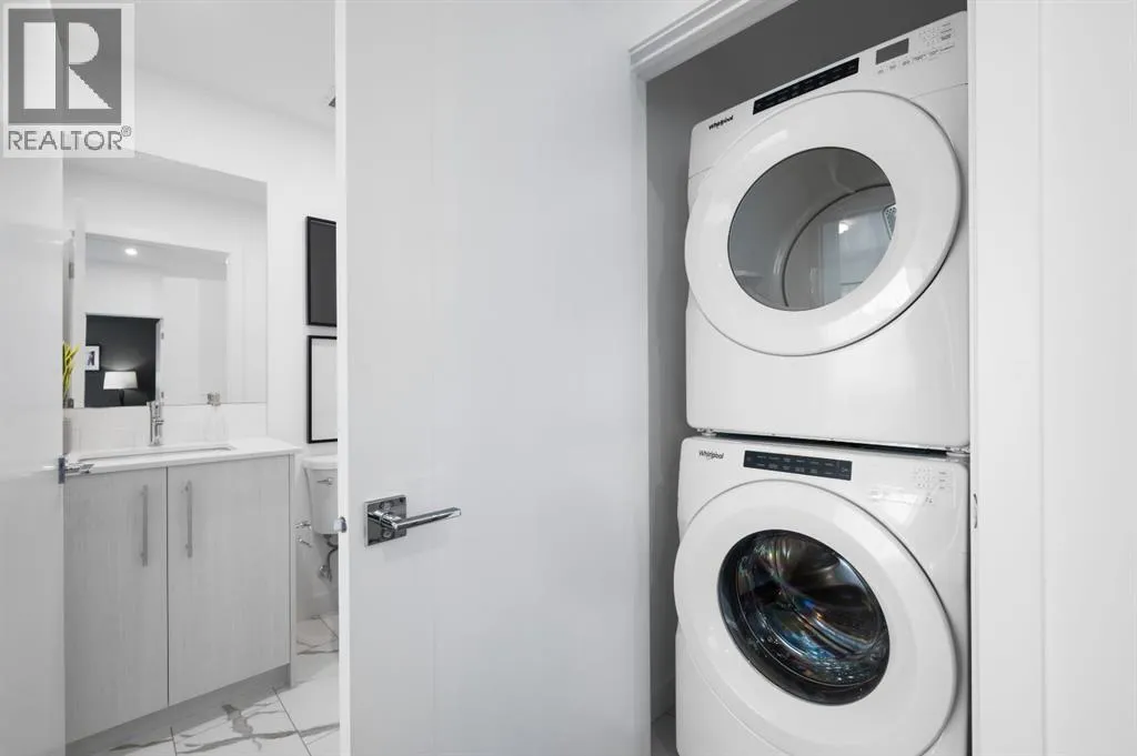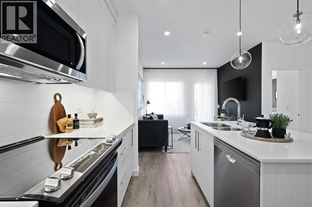 TRUMAN-built 1-Bedroom, 1-Bathroom condo in the highly desirable community of Chelsea, Chestermere. Perfectly combining style, comfort, and value, this Lockwood home offers everything you need in a low-maintenance lifestyleâplus quick access to parks, pathways, and Chestermere Lake for year-round recreation.Inside, youâll find a bright and airy open-concept layout designed for modern living. The kitchen stands out with full-height cabinetry, soft-close doors and drawers, quartz countertops, and a sleek stainless steel appliance package. The living area opens to your private balcony, giving you the perfect space to unwind at the end of the day.The Bedroom and 4-piece bathroom provide a comfortable retreat, while in-suite laundry and a titled parking stall add convenience and peace of mind.*Photos gallery of similar unit, stay tuned for a new gallery. (id:27476)