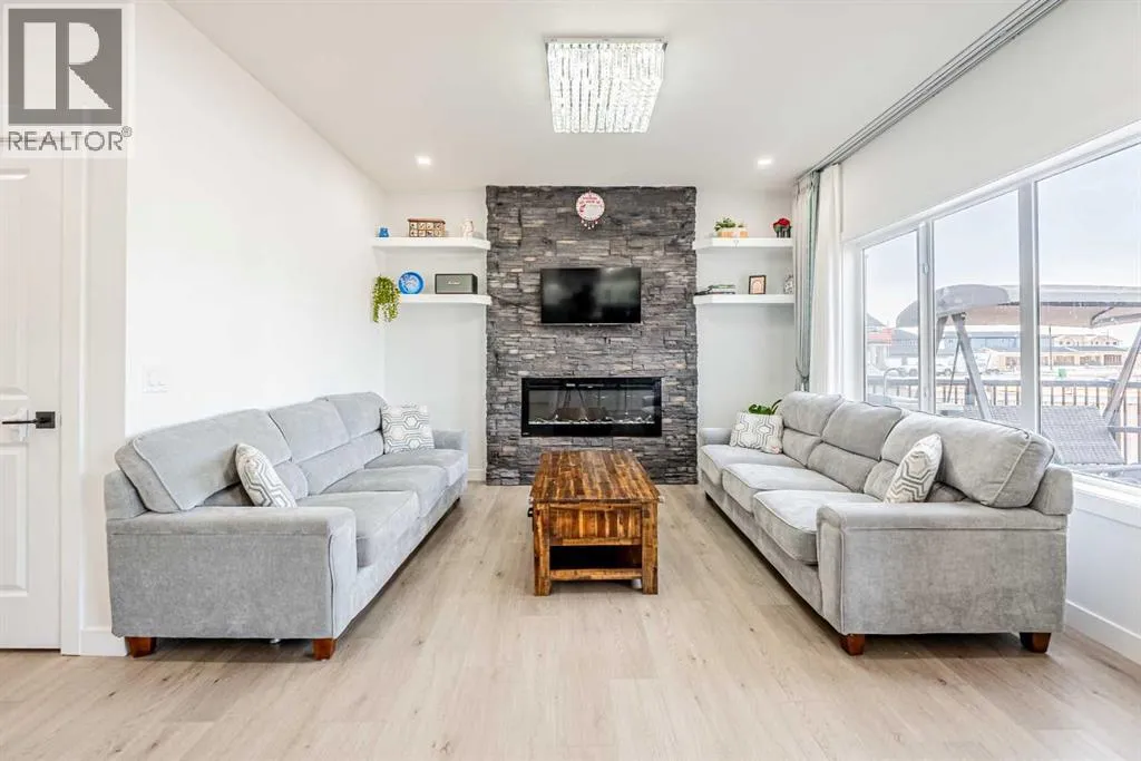 Welcome to the brand-new community of Waterford. This stunning semi-detached front garage duplex offers exceptional value at a fantastic price. The home features 3 bedrooms, a den and 2.5 bathrooms, and approximately 1,740 sq. ft. of well-designed living space. The main level showcases a modern kitchen with a built-in appliance tower, large island, and walk-through pantry, flowing into a bright open-concept family room. The fireplace wall is beautifully upgraded with stone, adding warmth and elegance to the living area. Step outside to enjoy a nice rear deck, perfect for relaxing or entertaining. The upper level includes a spacious primary bedroom with a walk-in closet, 2 additional bedrooms, a convenient laundry room, and a large bonus room. The basement is partially finished, features a separate entrance, and is ready for your future development. Located in a growing community close to schools and major amenities. Call today to book your private showing! (id:27476)