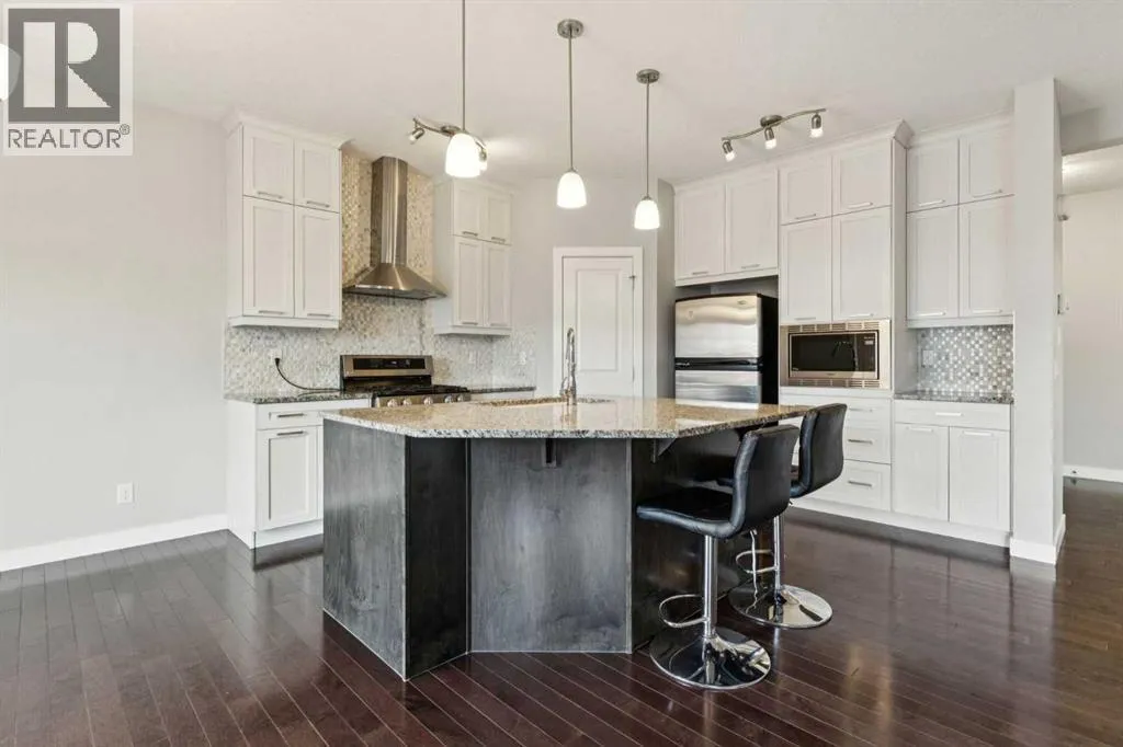 Welcome to your new home. Located in the desirable community of Kinniburgh in the city of Chestermere. Over 2,400 SF of developed space on all 3 levels. Whether you are looking for a first time home, or starter home, or upgrading to suit your growing family, this home has it all for you. Enter on the main floor through the spacious foyer and you are greeted with the open concept design, many windows, plenty of sunlight, hardwood flooring throughout and smart design. Features include fireplace in the primary living room, gas range stove and range hood in the kitchen, 2 pc guest washroom, and access to the double attached garage. The upper level includes 3 bedrooms, 2 full bathrooms, a bonus room and laundry room. A Great size for all the bedrooms. The fully finished and professionally developed basement has a sound treated theatre room, featuring sound dampening insulation speaker wiring and electrical for ceiling mounted projector. You will definitely enjoy movie night or watching and hosting the big games here. Basement ceilings are insulated throughout with full wall and ceiling insulation in the bathroom. Extra added touch: (plumbing clean out access is conveniently located via 3 visible access hatches). A large bedroom, 3 piece bathroom complete the basement. Other upgrades include a newly installed humidifier, and recently serviced furnace as well. But wait, thereâs more; the backyard features a non-permanent deck extension supported on concrete blocks and fully framed. The deck has been updated with new boards and stained. The fence was completed and stained approx 1 year ago. A large storage shed is conveniently included along with a childrenâs treehouse with built in sandbox, a properly installed legal fire pit with a concrete base and a well established garden area with nutrient rich soil enhanced annually with compost. This home has too many features to list them all, you must come and see for yourself and make this your next dream home. Call your favouri te realtor today. (id:27476)