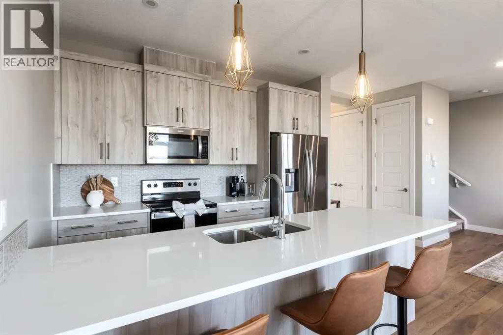 *OPEN HOUSE FRIDAY FEB 13 5:00-7:00PM & SATURDAY FEB 14 12:00-3:00PM* Look no further - This immaculate home has everything you want, for the price you need! Plenty of room for the whole family, featuring 3 beds, 3.5 baths and 1,950 SQ FT OF DEVELOPED LIVING SPACE and NO CONDO FEES! Lovely curb appeal with a sun drenched, limestone patio and a private front entrance (that is not shared with any neighbours). Impressive main floor with airy 9 FT CEILINGS, ENGINEERED HARDWOOD, EXTRA-TALL DOORS and a bright OPEN CONCEPT layout. Cooking and entertaining is a breeze in the functional kitchen, boasting QUARTZ COUNTERTOPS, SOFT CLOSE DRAWERS and ample cabinet space. There is also a 2-pc guest washroom, that is discretely tucked off to the side. Upstairs you will find 3 spacious bedrooms and convenient laundry room. Primary bedroom has a large walk-in closet and ensuite with walk-in shower. FULLY FINISHED BASEMENT is a great place to hang out, work or play. Beautiful new 3-pc washroom and storage space completes the lower level. NO NEIGHBOURS BEHIND YOU and ZERO MAINTENANCE LANDSCAPING in the backyard. Firepit is included. Other notable features include: ATTACHED GARAGE, large driveway, CENTRAL AC, TRIPLE PANE WINDOWS and ZEBRA BLINDS! This is an impeccably maintained property in the well established community of Westmere. Quick and easy access to Chestermere Lake, the dog park, schools, shopping and major roadways. You will love living here! Furniture is negotiable. Book a showing before it's too late and check out our 3D TOUR. (id:27476)