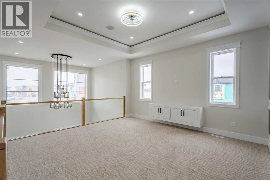 Welcome to 312 Watercrest Place, an exceptional pre-construction opportunity by Twenty First Century Homes, projected to be move-in ready by Q3 2026. Situated on a generous 56' x 110' lot, this 3,185 sq.ft. luxury home (plus 1,526 sq.ft. undeveloped basement) is designed for modern multi-generational living and offers buyers the rare ability to customize materials beyond the builderâs standard offeringsâa level of personalization seldom available in todayâs market.The main floor features a bright open-concept layout with a spacious family room, dining area, and a beautifully appointed kitchen complemented by a full Spice Kitchen. A main floor bedroom with its own full bath provides ideal flexibility for guests or extended family. Large windows and purposeful design make this level warm, inviting, and perfect for both daily living and entertaining.Upstairs, youâll find 5 additional bedrooms, including a luxurious Primary Suite with a spa-inspired ensuite and walk-in closet. A central loft, upper-floor laundry, and well-planned bathrooms provide maximum convenience for busy families.The 1,526 sq.ft. undeveloped basement offers unlimited potentialâfuture legal suite, home theatre, gym, or additional living space, depending on your needs.Exterior elevations showcase a refined mix of stucco, stone, and Hardie board detailing, paired with a spacious rear deck ideal for outdoor enjoyment. A triple garage and functional mudroom complete the home.Located in the highly sought-after Waterford Estates, Chestermere, this home delivers a rare combination of luxury, flexibility, lot size, and customization potentialâperfect for buyers seeking a personalized, high-quality new build in a premier neighbourhood. (id:27476)