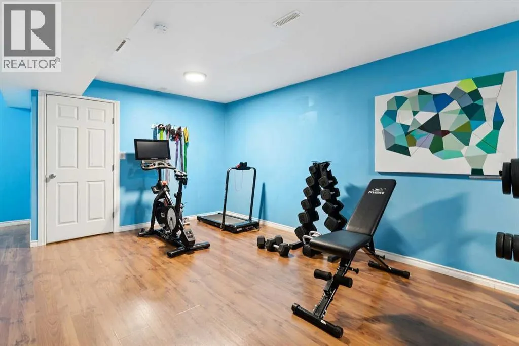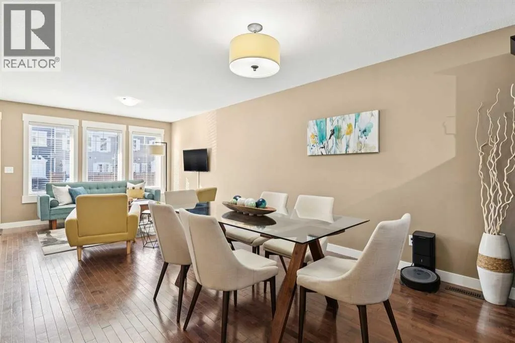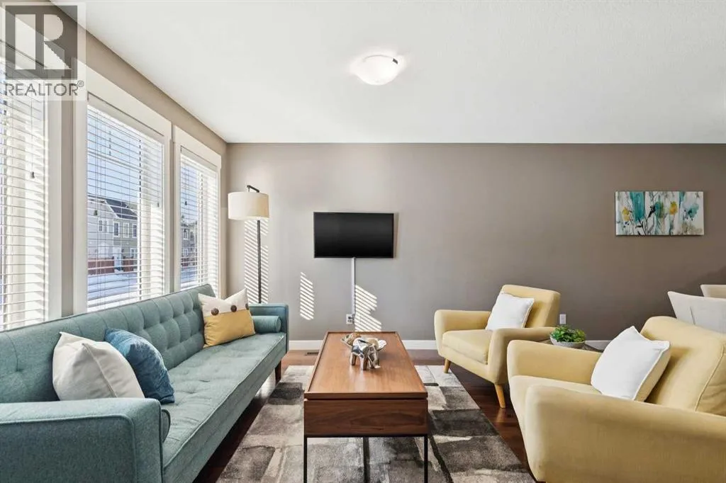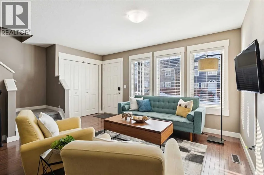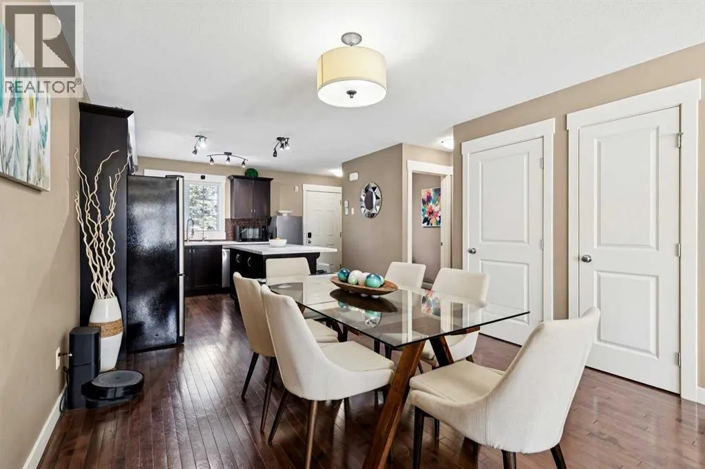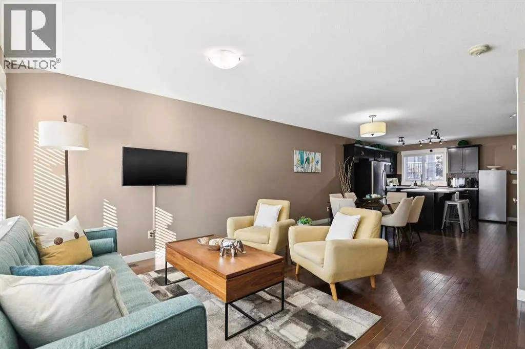 END-UNIT | 3 BEDROOMS | FINISHED BASEMENT | 2 PARKING SPOTS | Welcome to this BRIGHT 3 bedroom end-unit townhome in the established community of RAINBOW FALLS. The main floor offers an OPEN CONCEPT layout designed for everyday living. Large windows bring in NATURAL LIGHT, and the spacious living and dining areas flow seamlessly into the kitchen â creating a layout that works beautifully for both quiet evenings and entertaining. The kitchen features STAINLESS STEEL APPLIANCES, a CENTRAL ISLAND with seating, PANTRY storage, and plenty of cabinetry to keep everything organized. Upstairs, the PRIMARY BEDROOM is a generous size and offers a WALK-IN CLOSET. Two additional bedrooms and a FULL 4-PIECE BATH provide flexibility for family, guests, or a home office. The FINISHED BASEMENT adds valuable living space with a LARGE REC ROOM â ideal for movie nights, a playroom, home gymâ¦whatever you need. Laundry and storage are neatly tucked away with rough-in there if you want to add a future bathroom. UPDATES: Kitchen Countertop (2026), Carpet Basement Stairs (2026), Washer, Stove and Dishwasher (2023), Dryer and Hot Water Tank (2022). Step outside where you can enjoy morning coffee or summer BBQs. Two ASSIGNED PARKING STALLS are located directly out front, with ample VISITOR PARKING nearby. Set within walking distance to schools, playgrounds, pathways, shopping, and the OFF-LEASH DOG PARK â and just minutes to CHESTERMERE LAKE â this home offers the lifestyle buyers are looking for. Whether youâre a FIRST-TIME BUYER, young family, or investor, this MOVE-IN READY townhome checks the boxes. (id:27476)
