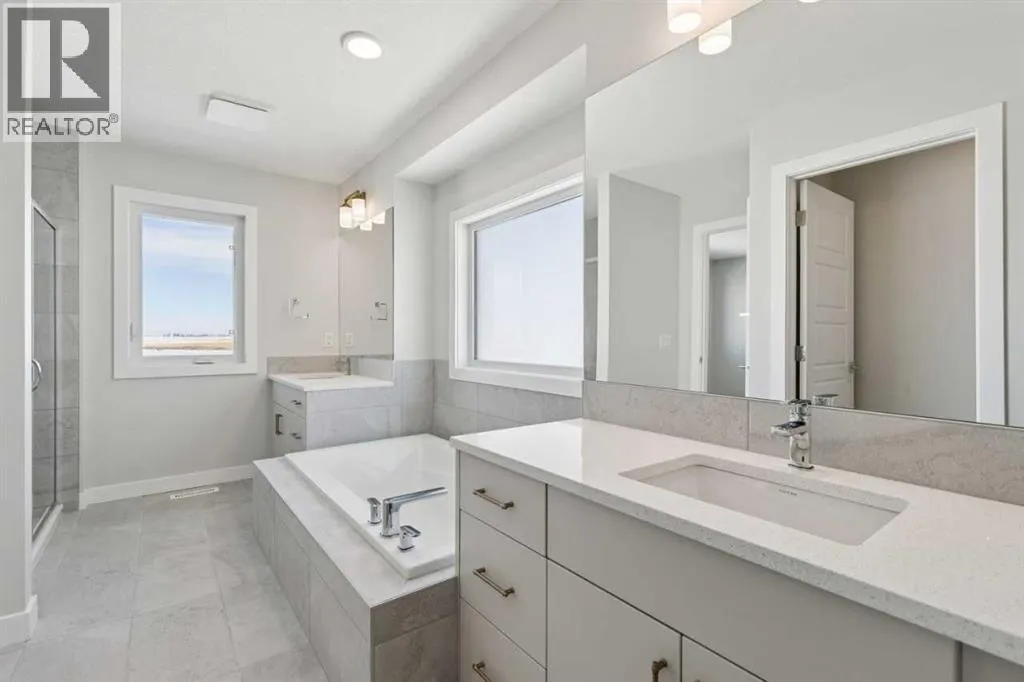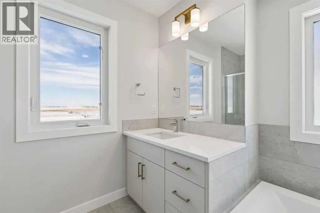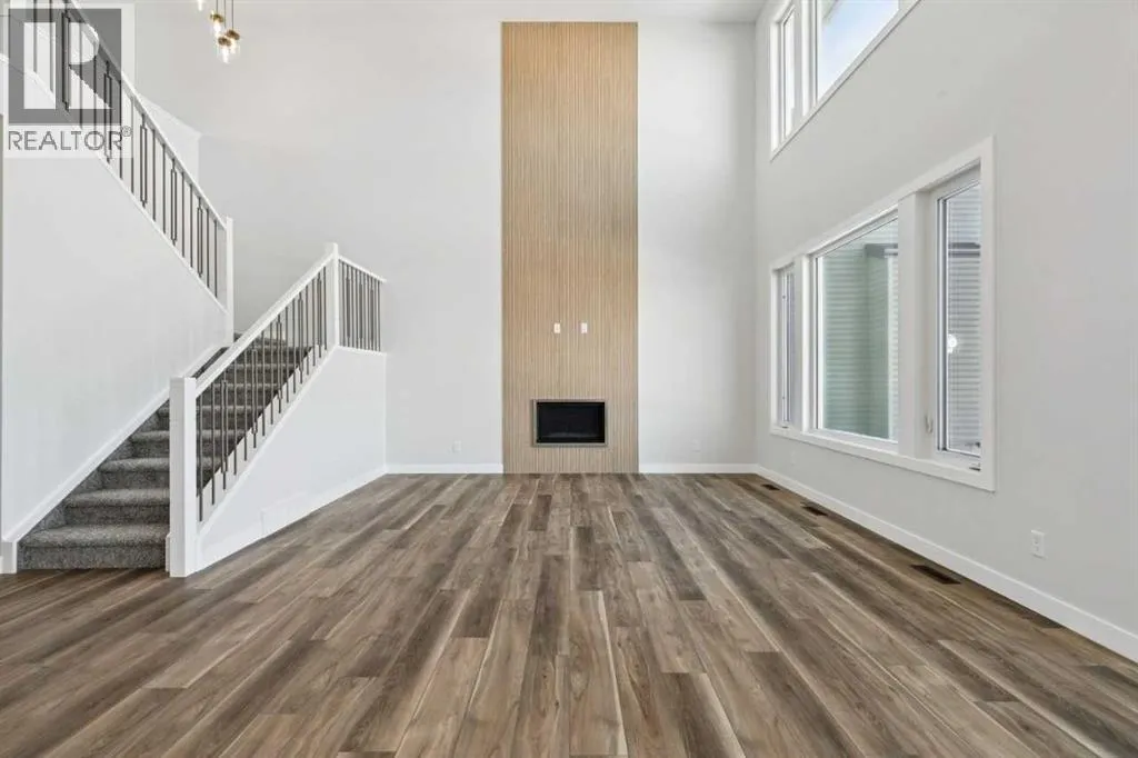 Located at 420 Bridgeport Glen in the Bridgeport community, this Crestview model by NuVista Homes offers 2,323 sq ft of thoughtfully designed living space. Featuring 4 bedrooms and 3 bathrooms, this home showcases a Craftsman elevation and 9â foundation and main floor ceiling heights. The open-concept main level includes luxury vinyl plank flooring and a natural gas fireplace with full tile surround to the ceiling. The kitchen is well appointed with quartz countertops, taller upper cabinets, and an upgraded Samsung gourmet appliance package. A side entrance provides excellent potential for future basement development. Upstairs, the primary bedroom includes a five-piece ensuite and a large walk-in closet with convenient laundry access. A triple car garage adds exceptional storage and everyday functionality. Designed for comfort and flexibility, this home delivers space and quality in a growing Bridgeport community. (id:27476)