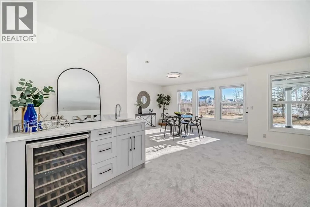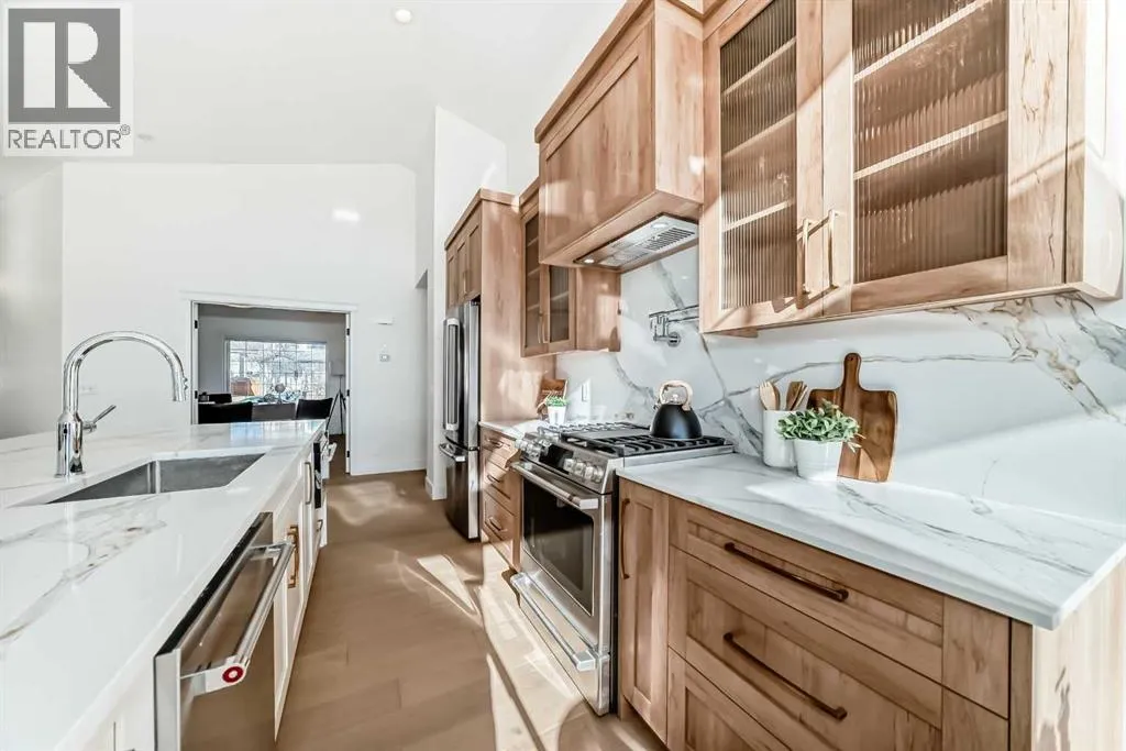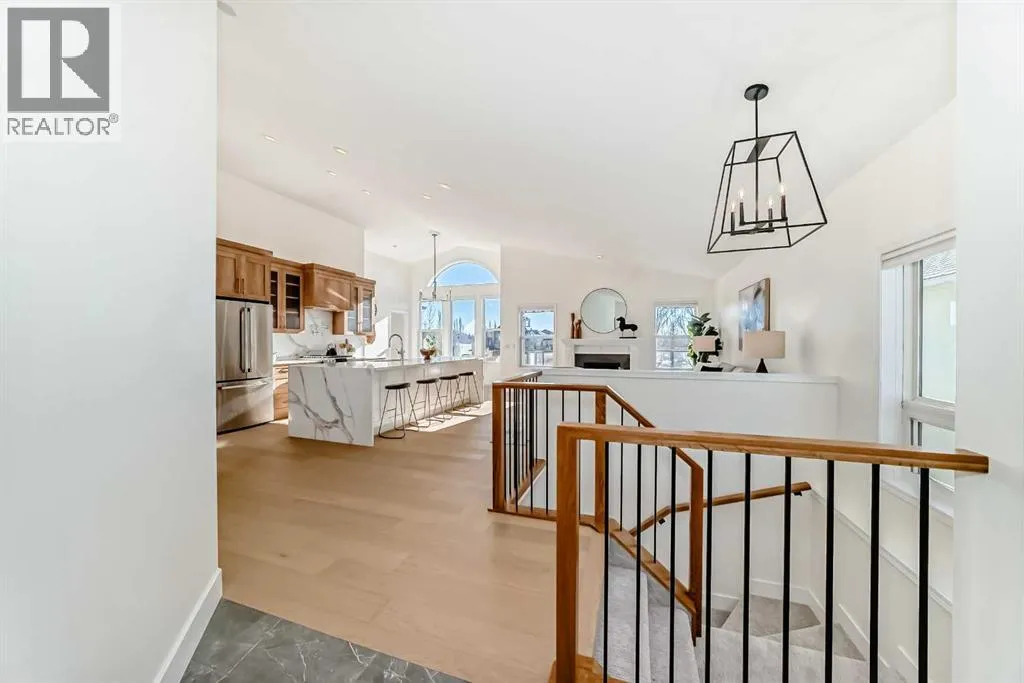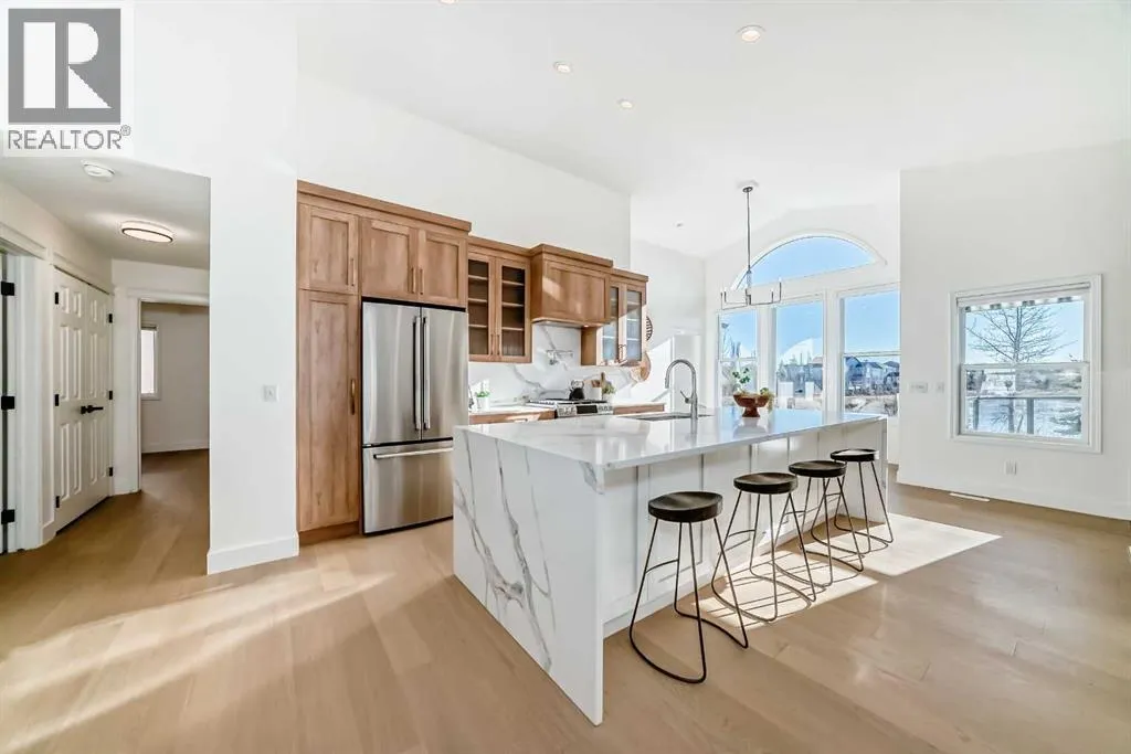 LUXURY LIVING ON THE POND. Gorgeous, fully renovated luxury walkout bungalow backing onto West Creek Pond, with stunning views, turnkey and ready for its next owner! This is truly what dreams are made of, as you enjoy daily sunrises/sunsets and walks around the pond, accessible from your large, sunny, south-facing backyardâopen-concept main floor with 13-foot vaulted ceilings, abundant natural light throughout, and unobstructed views.This 3-bed, 3-bath, plus office/den bungalow features brand-new, beautiful custom cabinetry, luxury appliances, a waterfall-edge quartz countertop/ backsplash, custom pot filler âtruly a chefâs dream! Curb-less tiled ensuite shower with custom glass, quartz counters throughout, a wet bar on the lower level, and a brand-new upper patio deck, gorgeous custom-engineered white oak hardwood, with custom tile and carpet. Custom-designed throughout, fully developed walkout basement with walkway and pond access. Laundry is conveniently located on the main floor. The underground sprinkler system keeps the landscaped yard well-nourished throughout the summer. Perfect for those seeking a nature-inspired lifestyle, moments away from walking pathways, a golf course, a beach, a lake, shopping, schools, playgrounds, restaurants, roadways, and other major amenities. MUST VIEW! Book your private viewing today!*3D VIRTUAL TOUR AVAILABLE* (id:27476)