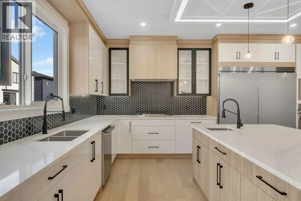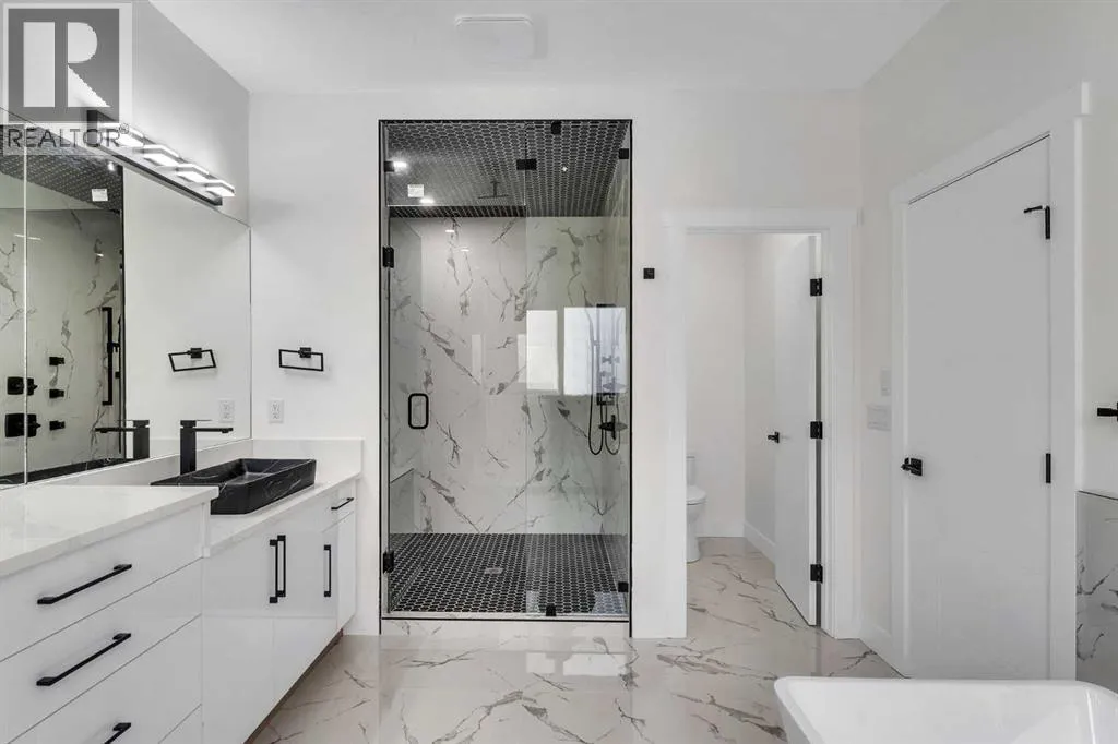 NEWLY BUILT!! 2-BED LEGAL BASEMENT SUITE!! SEPARATE ENTRANCE!! SEPARATE LAUNDRY!! OVER 4550 SQFT OF LIVING SPACE!! 7 BEDROOMS + 5 FULL BATHS!! TRIPLE ATTACHED GARAGE!! MAIN FLOOR BEDROOM & FULL BATH!! Step into this stunning new home offering luxury, space, and functionality in every corner. The main floor welcomes you with a spacious living area featuring a cozy fireplace, a beautiful kitchen with a large island, built-in appliances, and an additional spice kitchen for extra convenience. Abundant cabinetry and access to the backyard deck make it perfect for everyday living and entertaining. A main floor bedroom with a 3-piece bath adds flexibility as it can be used as office as well. Upstairs features 4 BEDROOMS and 3 FULL BATHS, including a PRIMARY BEDROOM with a 5PC ENSUITE BATH and walk-in closet. Two bedrooms share a stylish Jack & Jill 5PC BATH, while the fourth bedroom enjoys 4PC BATH. A bonus family room and open-to-below layout complete the upper level, along with laundry on the same floor for convenience. The LEGAL SUITE BASEMENT offers a SEPARATE ENTRANCE, 2 bedrooms, a 4-piece bath, a full kitchen, and a spacious rec room with ample storage, Laundry as well. Located close to Chestermere Lake, the Canal, schools, and shopping, this home combines comfort, style, and practicality in one incredible package. DONâT MISS THIS OPPORTUNITY TO OWN A HOME WITH LUXURY, SPACE, AND INCOME POTENTIAL! (id:27476)