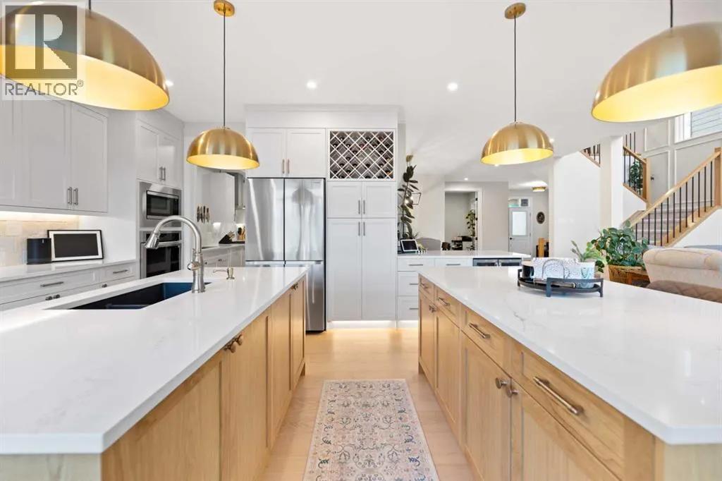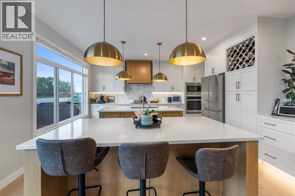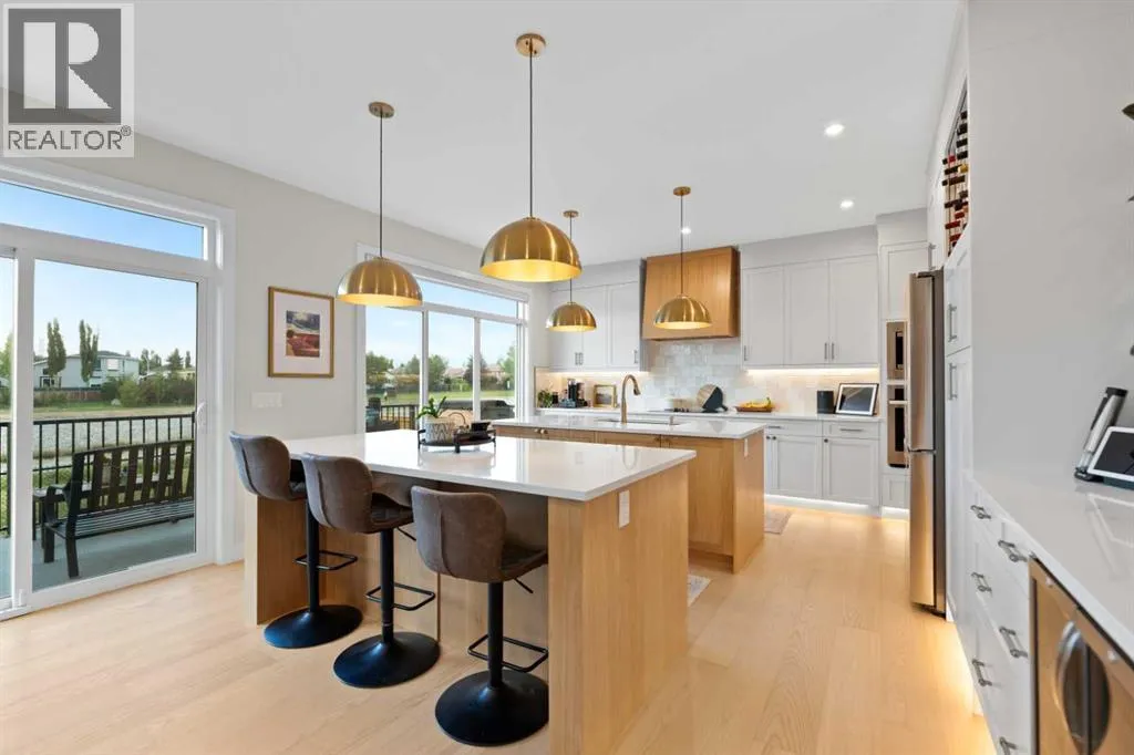 ***Backing onto the Canal****Welcome to this absolutely Stunning 7 Bedroom 5 Bathroom Home with over 4400 square feet of developed living space with a Triple car garage! This home is an absolute must see with lots of upgrades! The Main Floor features a Main Floor Bedroom that can be used as a perfect work from home office as well, a Full Bathroom with a Walk-in Shower, a large mudroom with built-in shelves perfect for kids, a walk-through pantry with ample storage and a Spice Kitchen with Gas Range, Hoodfan and extra Dishwasher and Sink! This Chic Kitchen has Built-in Microwave and Oven and a Double Island. The Family room is Open to above and has a Gas fireplace and opens to the a sprawling deck that spans then entire back of the house and overlooks the Canal. The Upper floor as 4 Bedrooms including 2 Master Bedrooms perfect for large Families. The main Master bedroom overlooks the Canal and has a beautifully large 5-piece Ensuite with a Steam Shower and Walk-in Closet with its own island. The other 2 Bedrooms are both connected to the 3rd full Bathroom upstairs and are next to the Large Bonus room and Laundry room that has built-in shelves and sink. The Fully Developed basement has a Separate Entry, a full Bathroom, Rec Room and 2 more bedrooms with one that is perfect for a gym. This home also has Landscaping already done, Air Conditioning, Garage Heater, Fencing already complete, separate temperature on each floor, under cabinet lighting on main floor bathroom, kitchen, spice kitchen and main ensuite. This house is a must see as there are too many upgrades to list here. Call to book your private showing today! (id:27476)