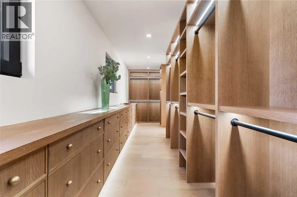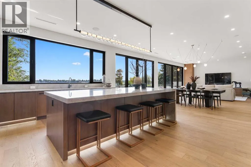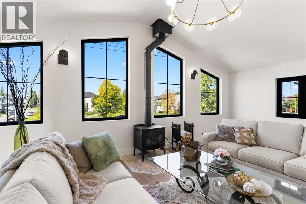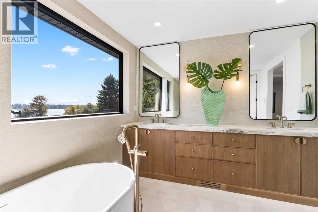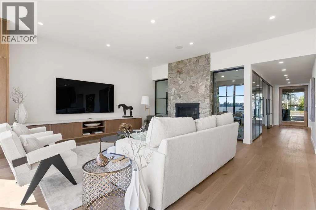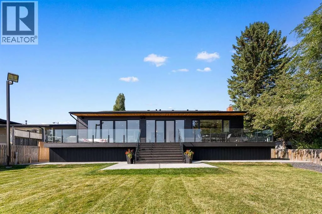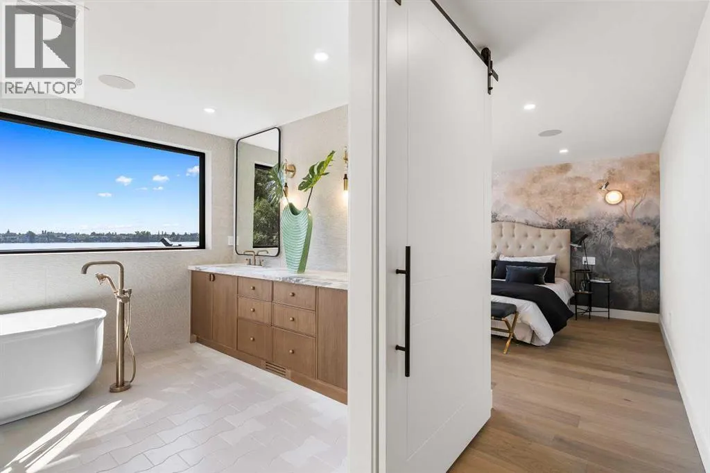 *Welcome to Lakeside Luxury on Chestermere Lake* With 4,482 sq. ft. of fully reimagined living space, this lakefront estate blends architectural sophistication with modern comfort on one of Chestermere Lakeâs most exclusive stretches of shoreline. This complete renovation and design is an intricate remodel + extension, showcasing soaring 10â ceilings, bespoke finishes, and walls of glass that capture sweeping water views. The foyer, framed by a 4 ft. Lux custom glass door, makes a bold first impression with a glass~encased home office and a see~through fireplace leading into the stunning living room. Floor~to~ceiling windows and European sliding doors create seamless flow to the outdoors, where a massive backyard, fire pit, and private dock invite year~round entertaining. At the heart of the home, the chefâs kitchen is a masterpiece ~ anchored by a Taj Mahal natural quartzite island, complemented by JennAir appliances, a butlerâs pantry, and a limewashed plaster custom hood fan that compliments the natural stone backsplash. Brizo plumbing fixtures in champagne bronze + matte black, Lo & Co + Emtek hardware; and custom~designed lighting elevate every detail, while white oak cabinets and hardwood floors add warmth and texture throughout the home. A spacious mudroom that rivals the aesthetic of any competing luxury home, leads to the 4~car garage with a tucked~away workshop. The garage floor was transformed with a stunning, heated, metallic epoxy finish, providing both beauty and durability. LED sensors throughout the home create an unrivalled nighttime ambiance, and an exposed epoxy rear deck extends the entertaining space. Upstairs, a vaulted bonus room with the homeâs original fireplace nods to its heritage, while a dual~desk workstation in the hallway adds functional elegance. Two secondary bedrooms and two larger master waterfront retreats capture lakeside serenity perfectly. The primary suite is pure indulgence, featuring a spa inspired ensuite with a steam showe r, heated bench and floors, which flows seamlessly to a massive walk in closet with micro~shaker drawers and velvet encasements. Even the laundry room makes a statement, with classic black and white checkered flooring adding a charming and whimsical touch to this architectural marvel. This is more than a home ~ itâs a statement in design, craftsmanship, and lakefront living. (id:27476)