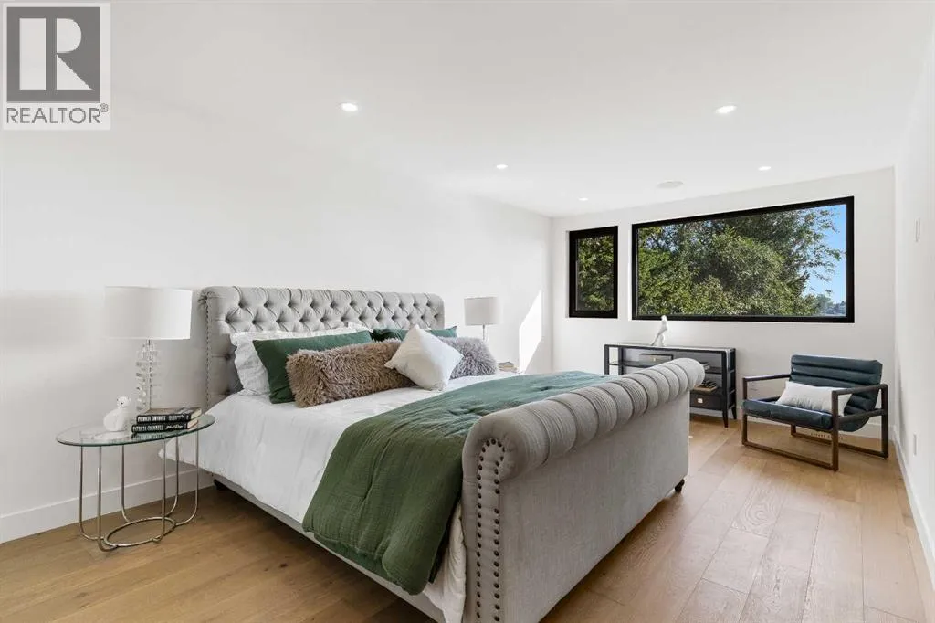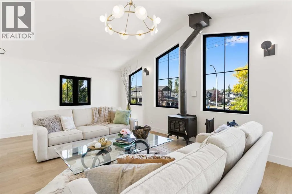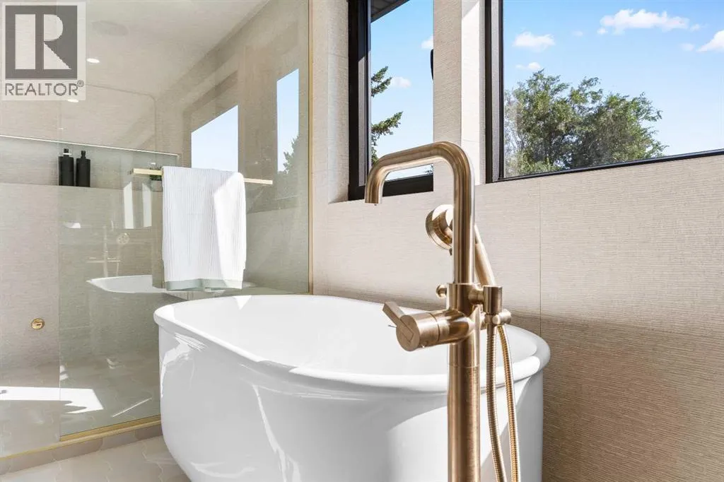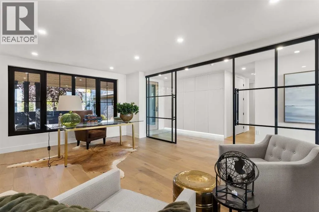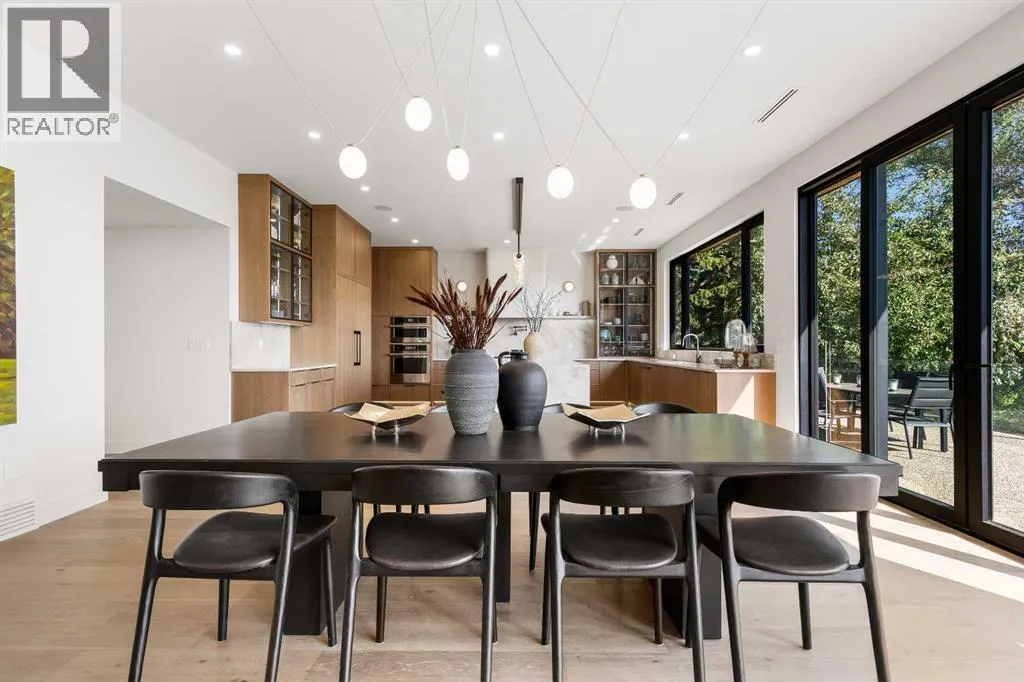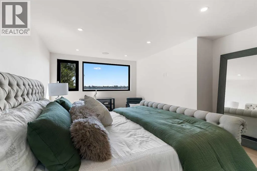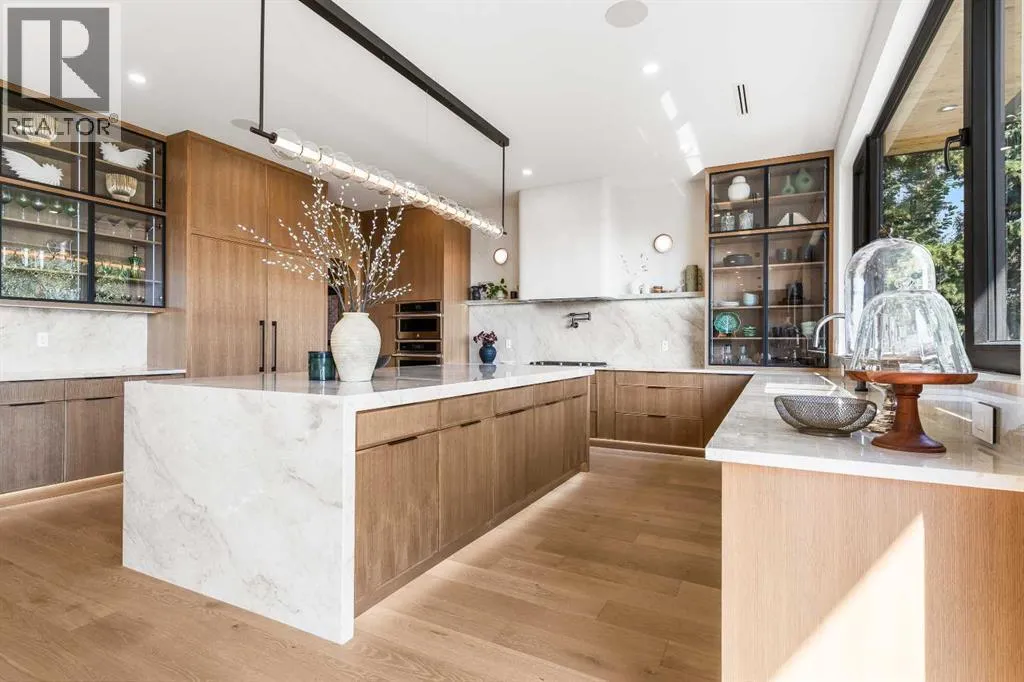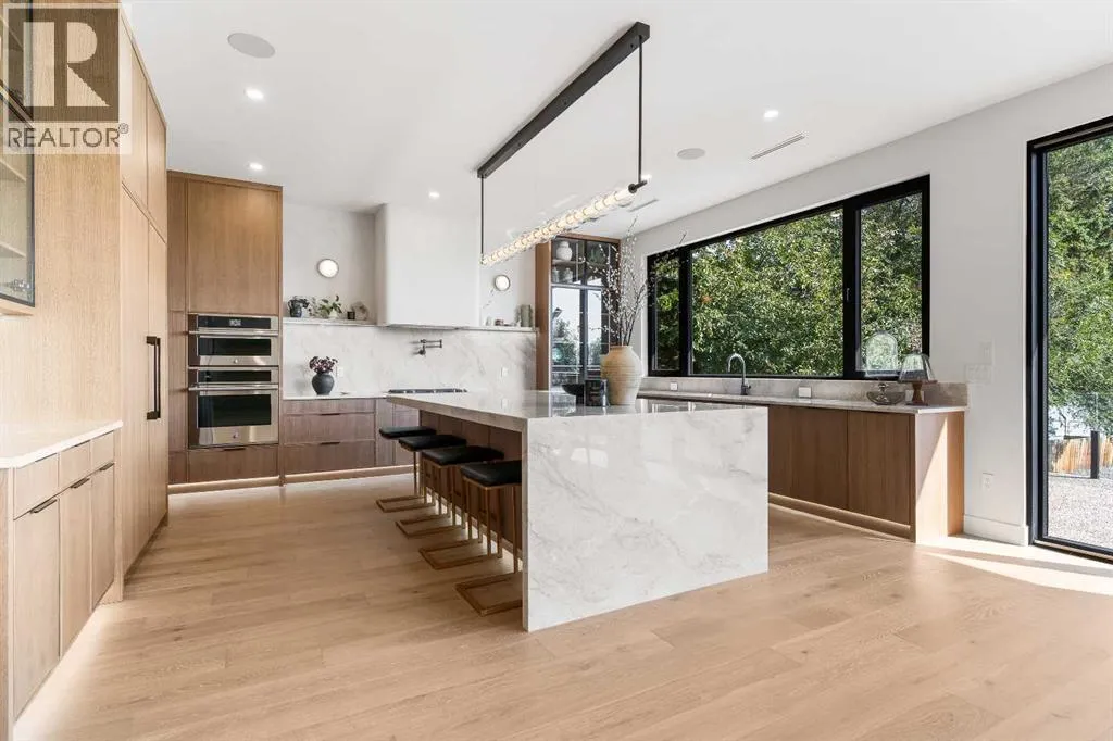 *Welcome to Lakeside Luxury on Chestermere Lake* With 4,482 sq. ft. of fully reimagined living space, this lakefront estate blends architectural sophistication with modern comfort on one of Chestermere Lakeâs most exclusive stretches of shoreline. This complete renovation and design is an intricate remodel + extension, showcasing soaring 10â ceilings, bespoke finishes, and walls of glass that capture sweeping water views. The foyer, framed by a 4 ft. Lux custom glass door, makes a bold first impression with a glass~encased home office and a see~through fireplace leading into the stunning living room. Floor~to~ceiling windows and European sliding doors create seamless flow to the outdoors, where a massive backyard, fire pit, and private dock invite year~round entertaining. At the heart of the home, the chefâs kitchen is a masterpiece ~ anchored by a Taj Mahal natural quartzite island, complemented by JennAir appliances, a butlerâs pantry, and a limewashed plaster custom hood fan that compliments the natural stone backsplash. Brizo plumbing fixtures in champagne bronze + matte black, Lo & Co + Emtek hardware; and custom~designed lighting elevate every detail, while white oak cabinets and hardwood floors add warmth and texture throughout the home. A spacious mudroom that rivals the aesthetic of any competing luxury home, leads to the 4~car garage with a tucked~away workshop. The garage floor was transformed with a stunning, heated, metallic epoxy finish, providing both beauty and durability. LED sensors throughout the home create an unrivalled nighttime ambiance, and an exposed epoxy rear deck extends the entertaining space. Upstairs, a vaulted bonus room with the homeâs original fireplace nods to its heritage, while a dual~desk workstation in the hallway adds functional elegance. Two secondary bedrooms and two larger master waterfront retreats capture lakeside serenity perfectly. The primary suite is pure indulgence, featuring a spa inspired ensuite with a steam showe r, heated bench and floors, which flows seamlessly to a massive walk in closet with micro~shaker drawers and velvet encasements. Even the laundry room makes a statement, with classic black and white checkered flooring adding a charming and whimsical touch to this architectural marvel. This is more than a home ~ itâs a statement in design, craftsmanship, and lakefront living. (id:27476)